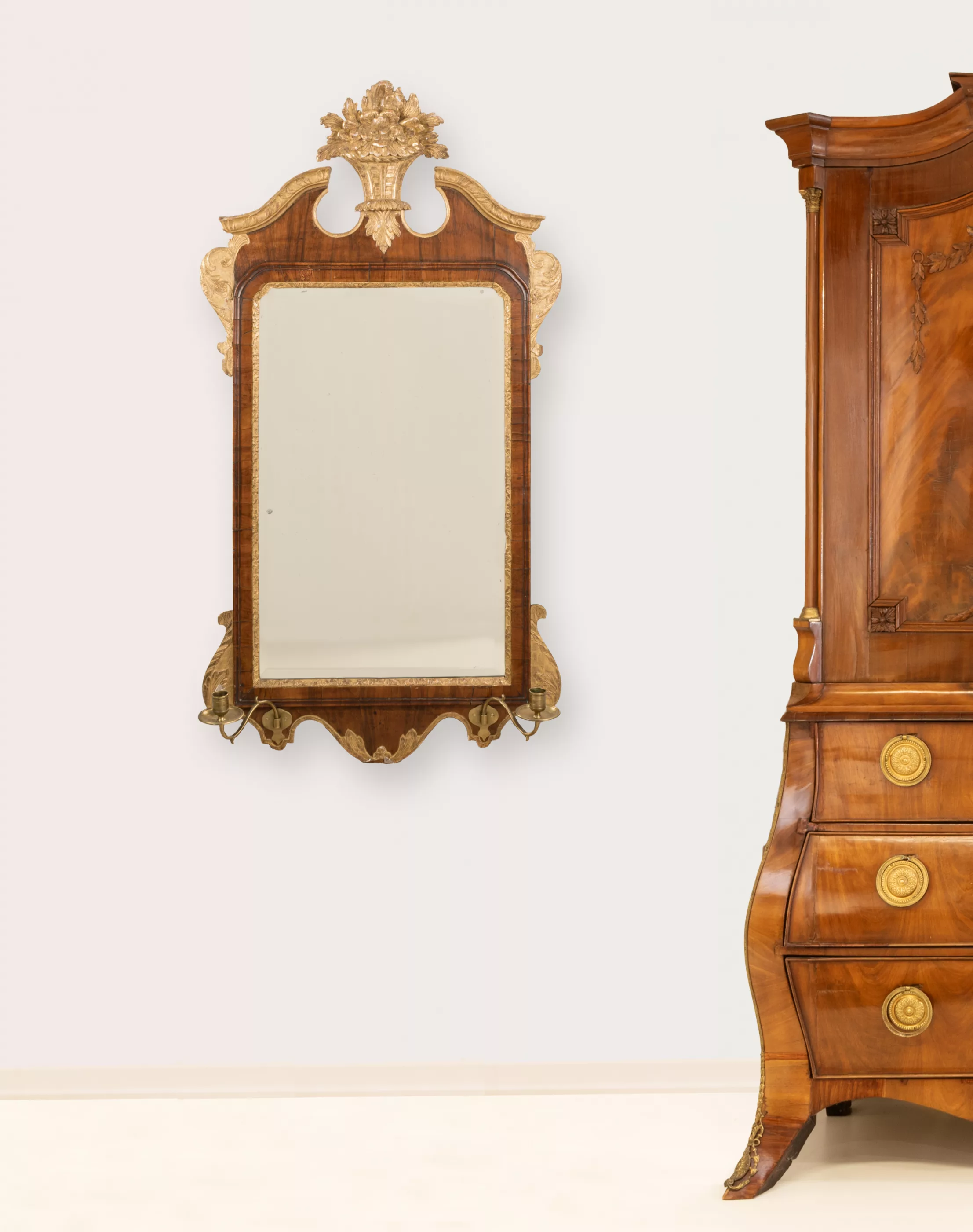 Empire-Spiegel mit Bekrönung und Messingleuchtern