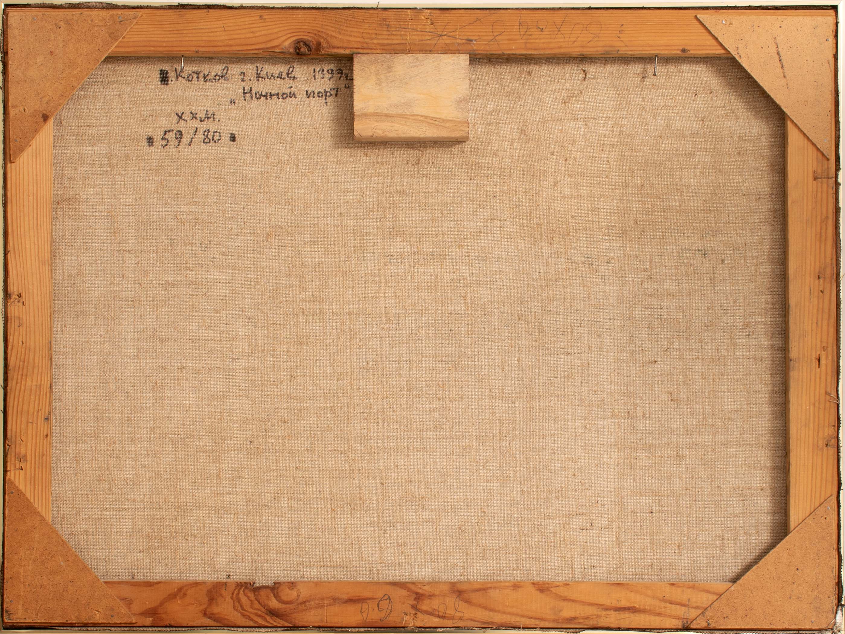 'Nachthafen', Öl auf Leinwand, 59 cm x 80 cm Leinwandmaß, signiert, 1999 datiert, verso ebenfalls signiert, 2. Kuel 1999 datiert und betitelt, partiell craqueliert