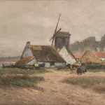 Flandrian farmstead with mill, oil on canvas mounted on panel, 74 cm x 109.5 cm, signed, partially craquelured, minor flaking of paint, restored, partially retouched