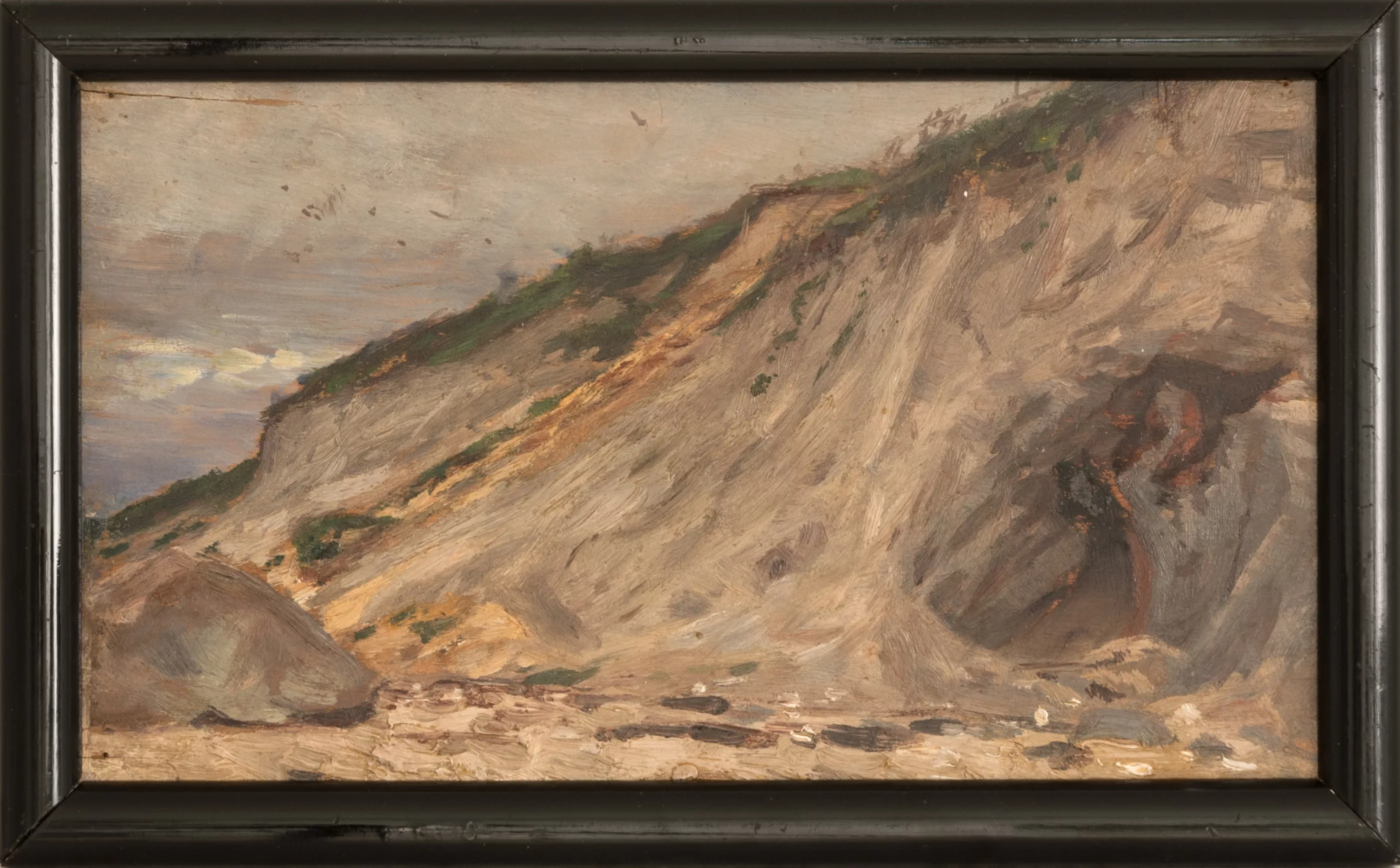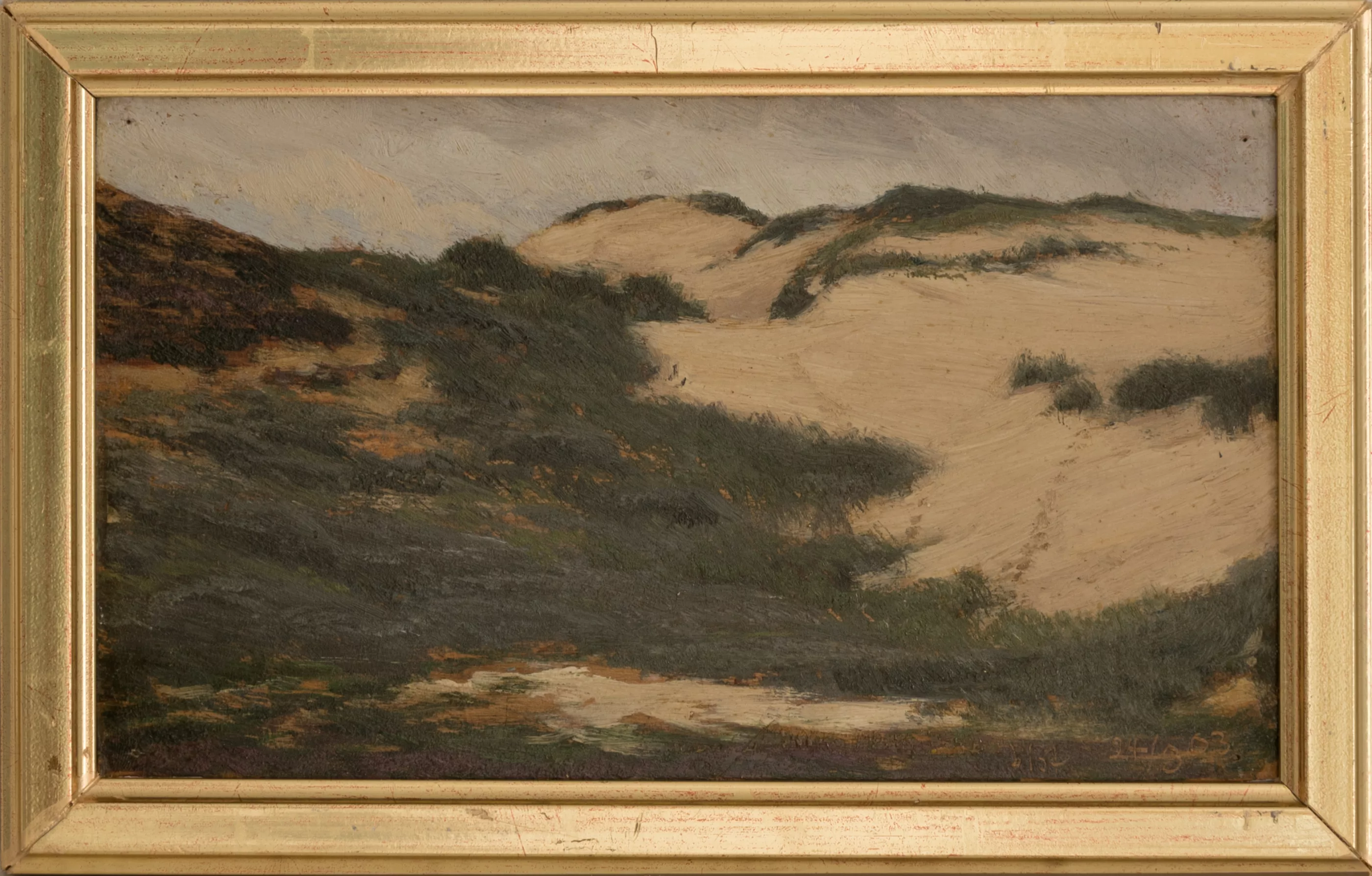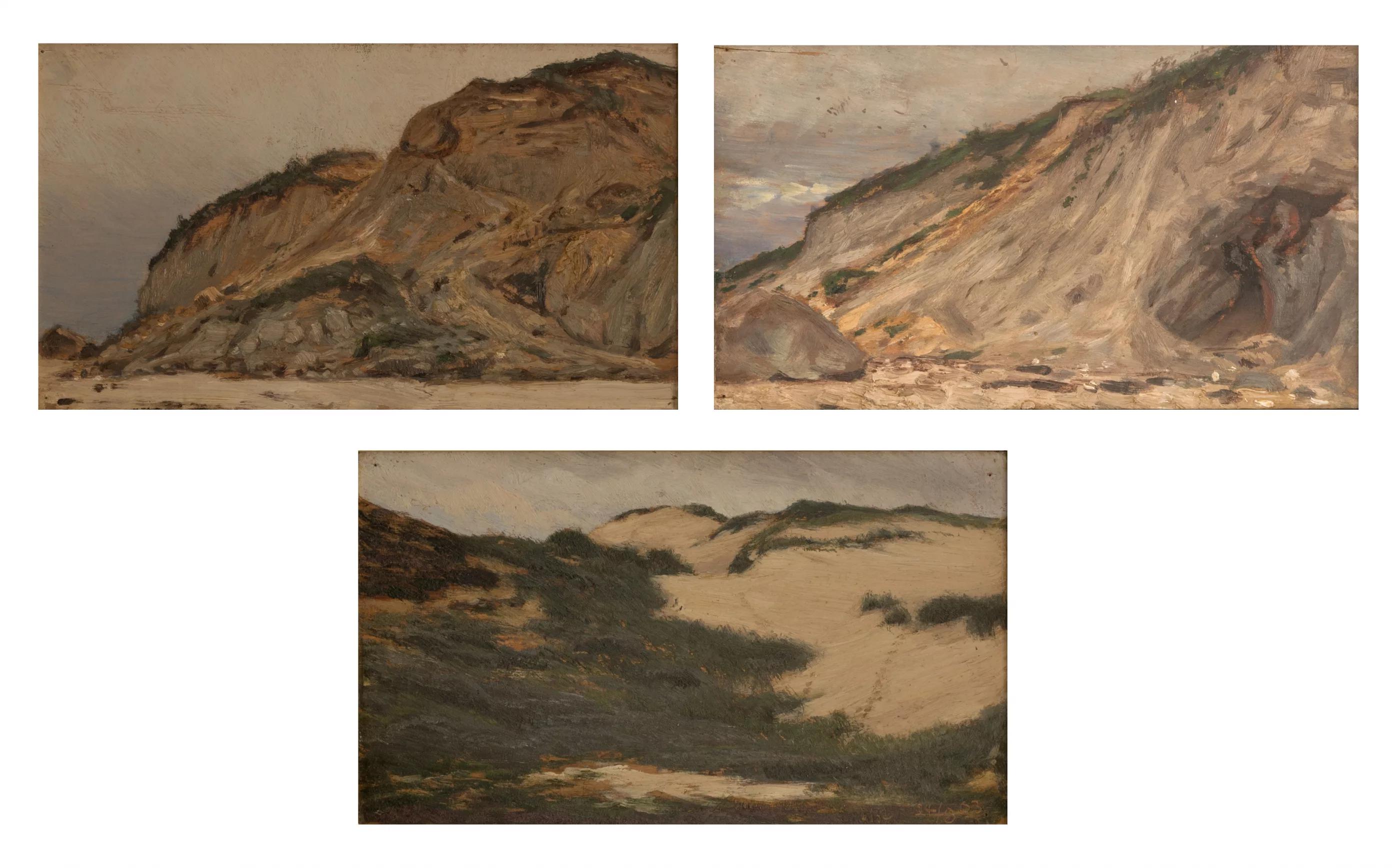 Baltic and North Sea dunes, three studies, each oil on wood, approx. 14 cm x 24.5 cm, each with signature stamp and 'F. Hoffmann-Fallersleben Nachlaß' stamp, one recto List inscribed and dated 24/8 03, tiny nail holes in the corners, two panels have a tear at the nail hole