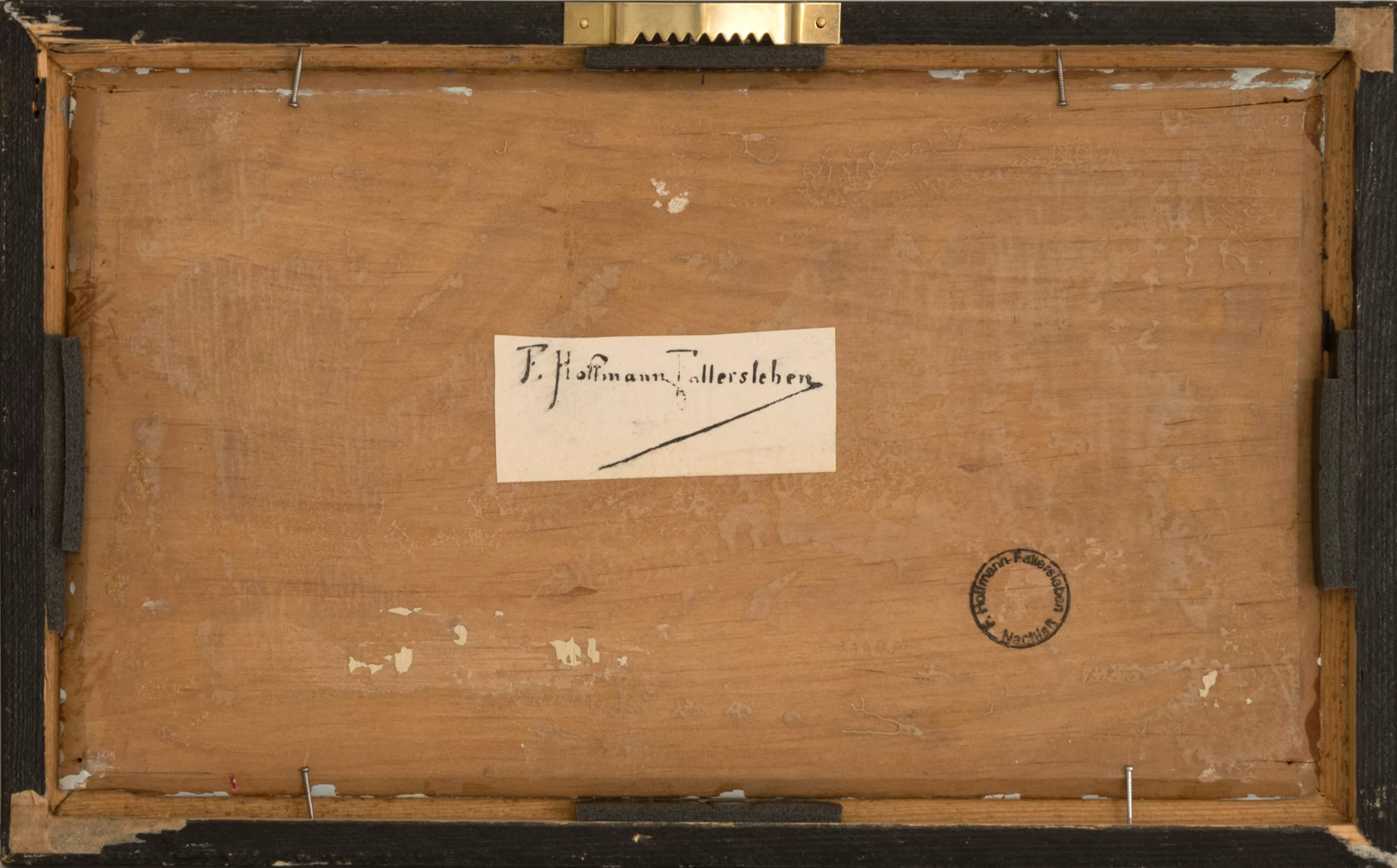 Ost- und Nordseedünen, drei Studien, jeweils Öl auf Holz, ca. 14 cm x 24,5 cm Werkmaße, verso jeweils Signaturstempel sowie 'F. Hoffmann-Fallersleben Nachlaß'-Stempel, eines recto List bezeichnet und 24/8 03 datiert, winzige Nagellöcher in den Ecken, bei zwei Platten Riss am Nagelloch