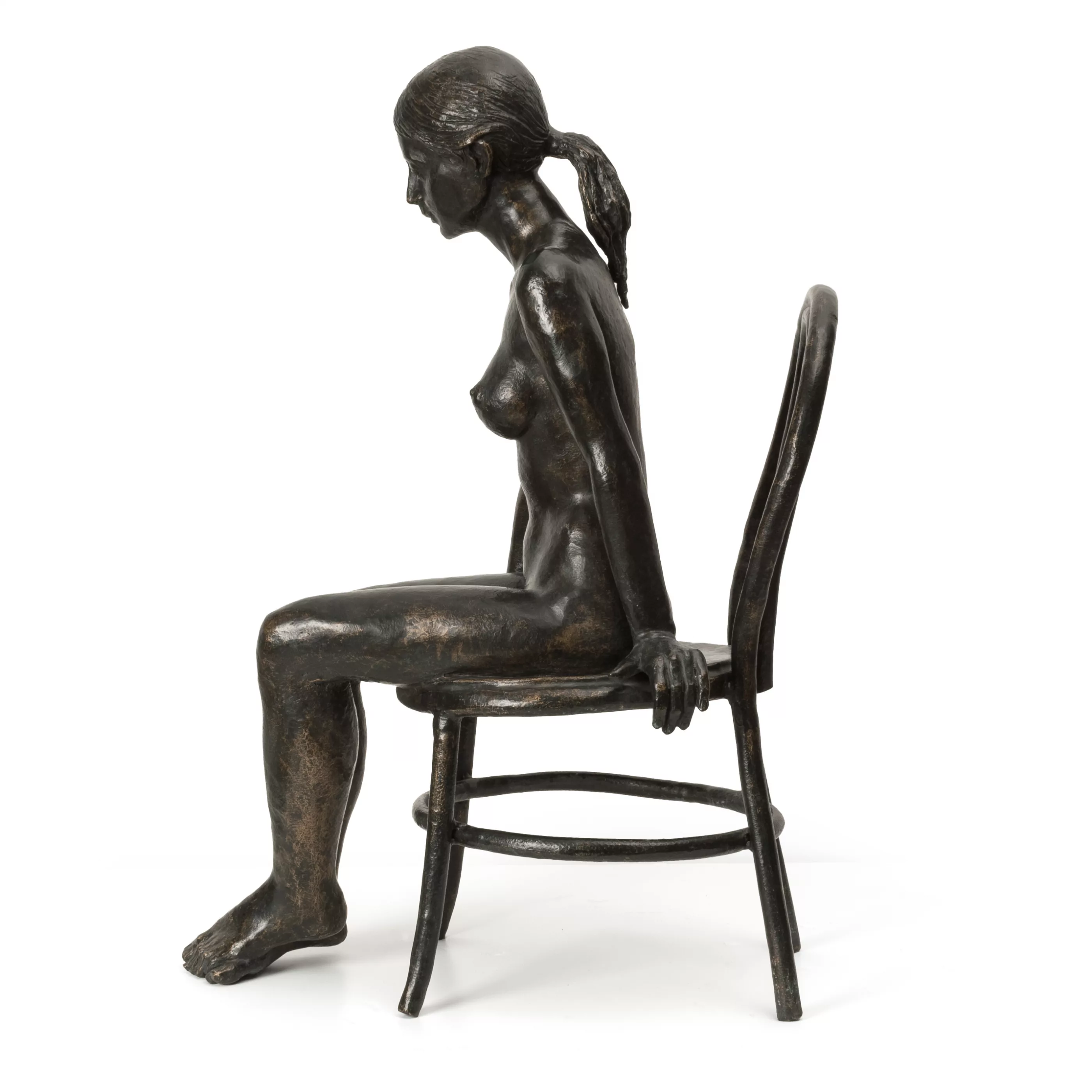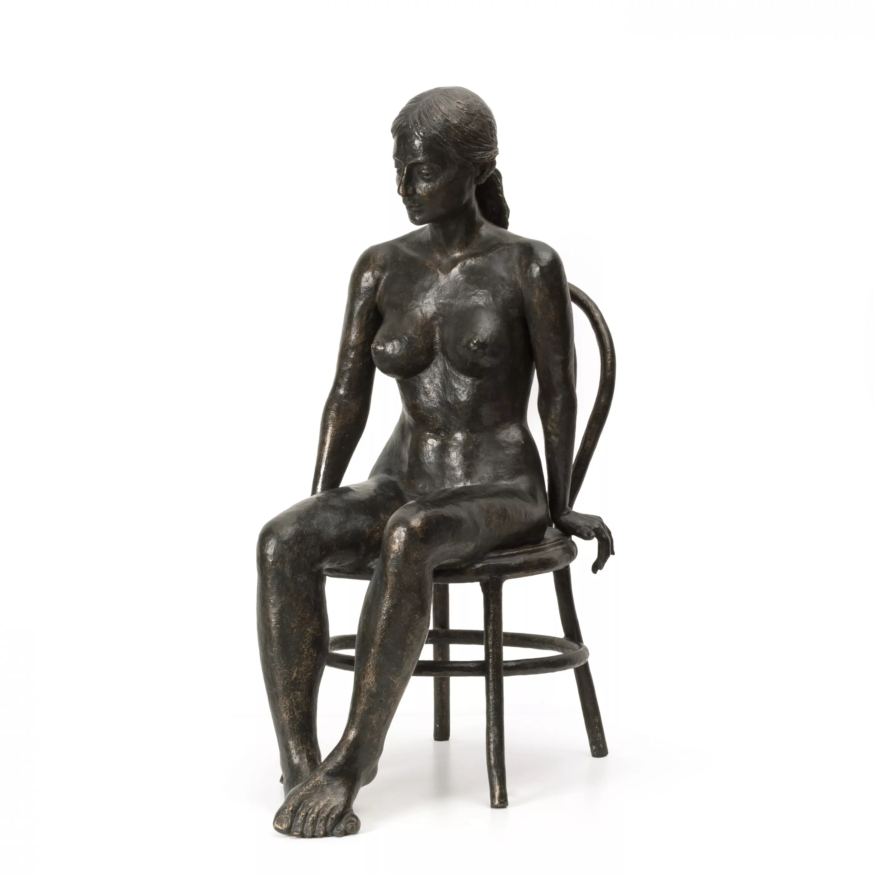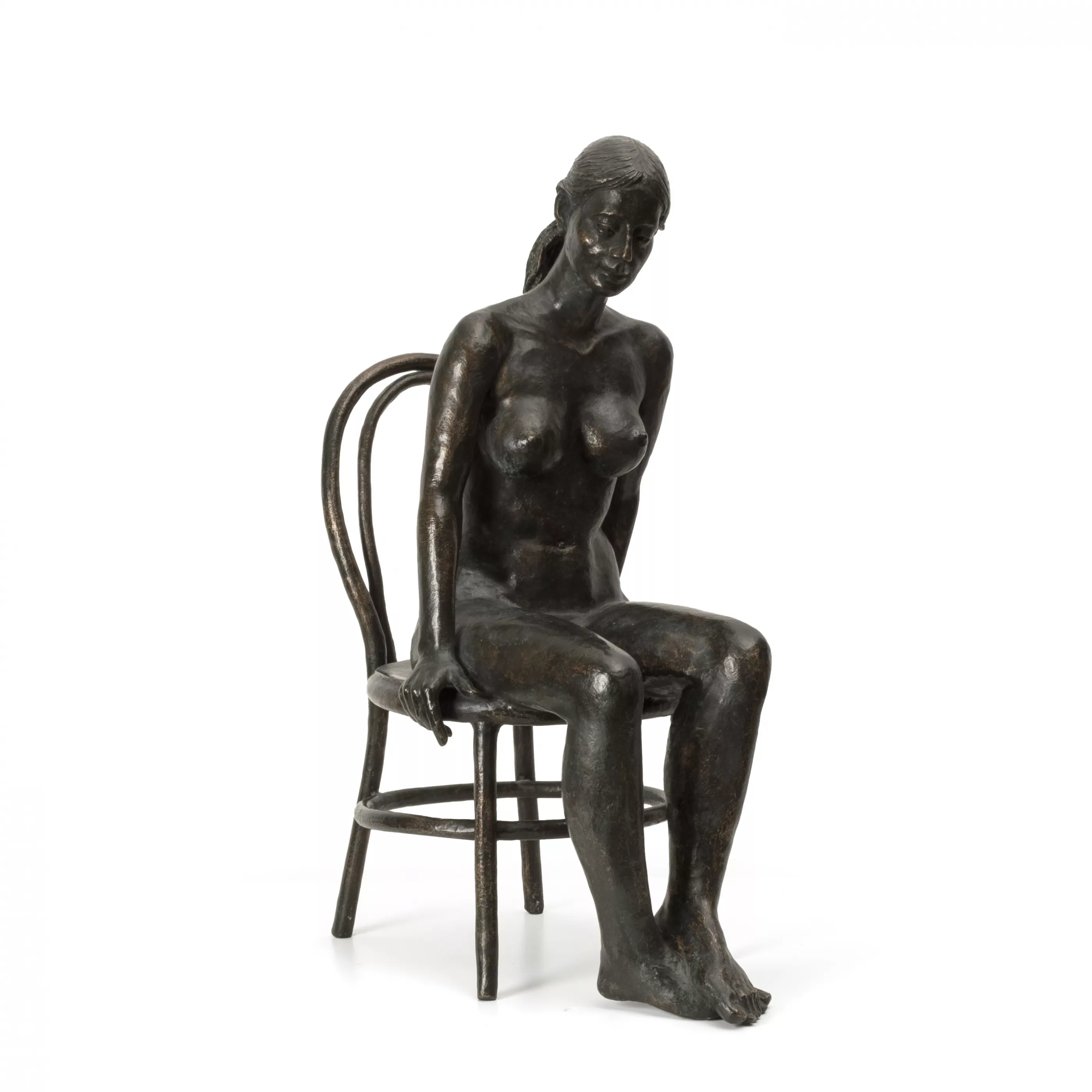 Sitting nude on a chair, bronze, dark patina, height 77 cm, signed in the cast, numbered 1/8, slight traces of corrosion in places