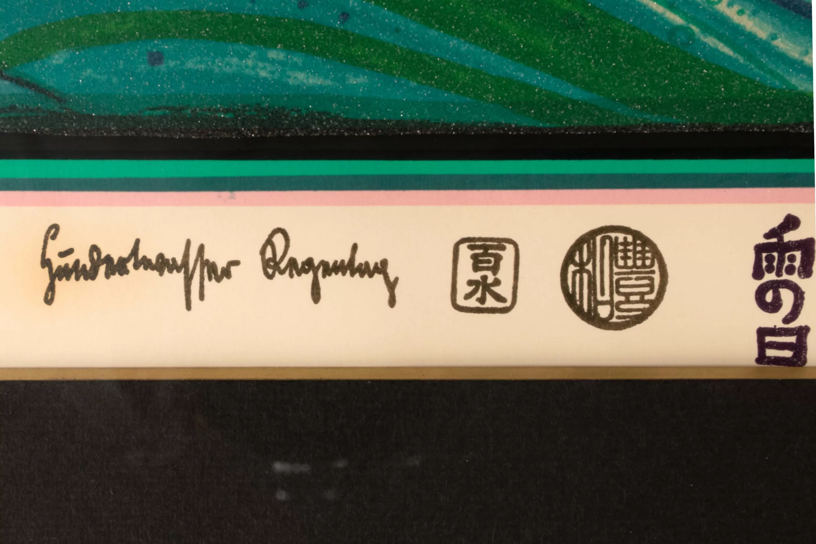 'Regentag auf Liebe Wellen', colour silkscreen with metal embossing and reflective glass dust overlay on light cardboard, 44 cm x 65.5 cm inside frame dimensions, signed in print, dated 1971, numbered 871/3000, inscribed, Ars Viva, Zurich (ed.), mounted, minimally darkened, literature: cat. rais. Fürst/Koschatzky 51 (697A)