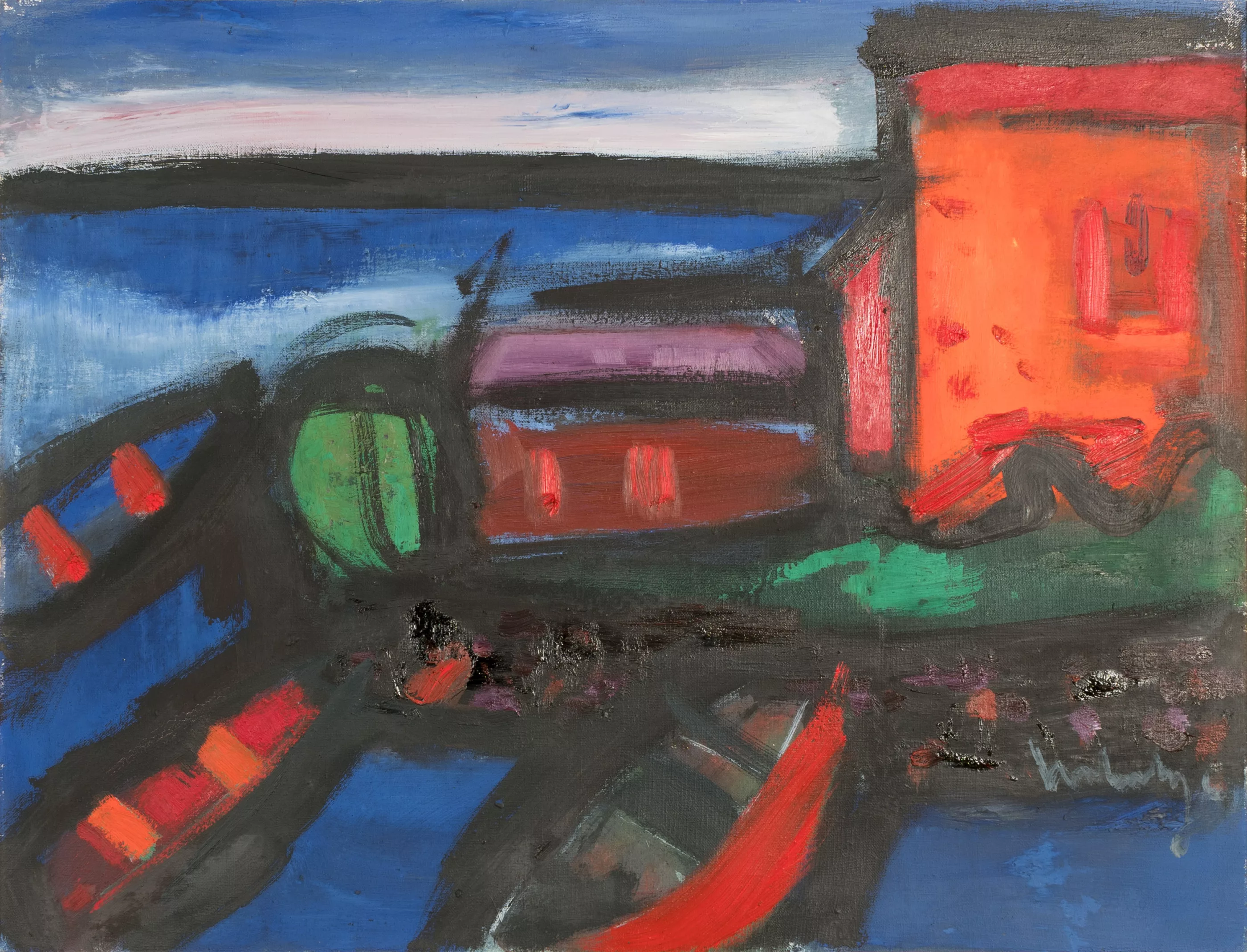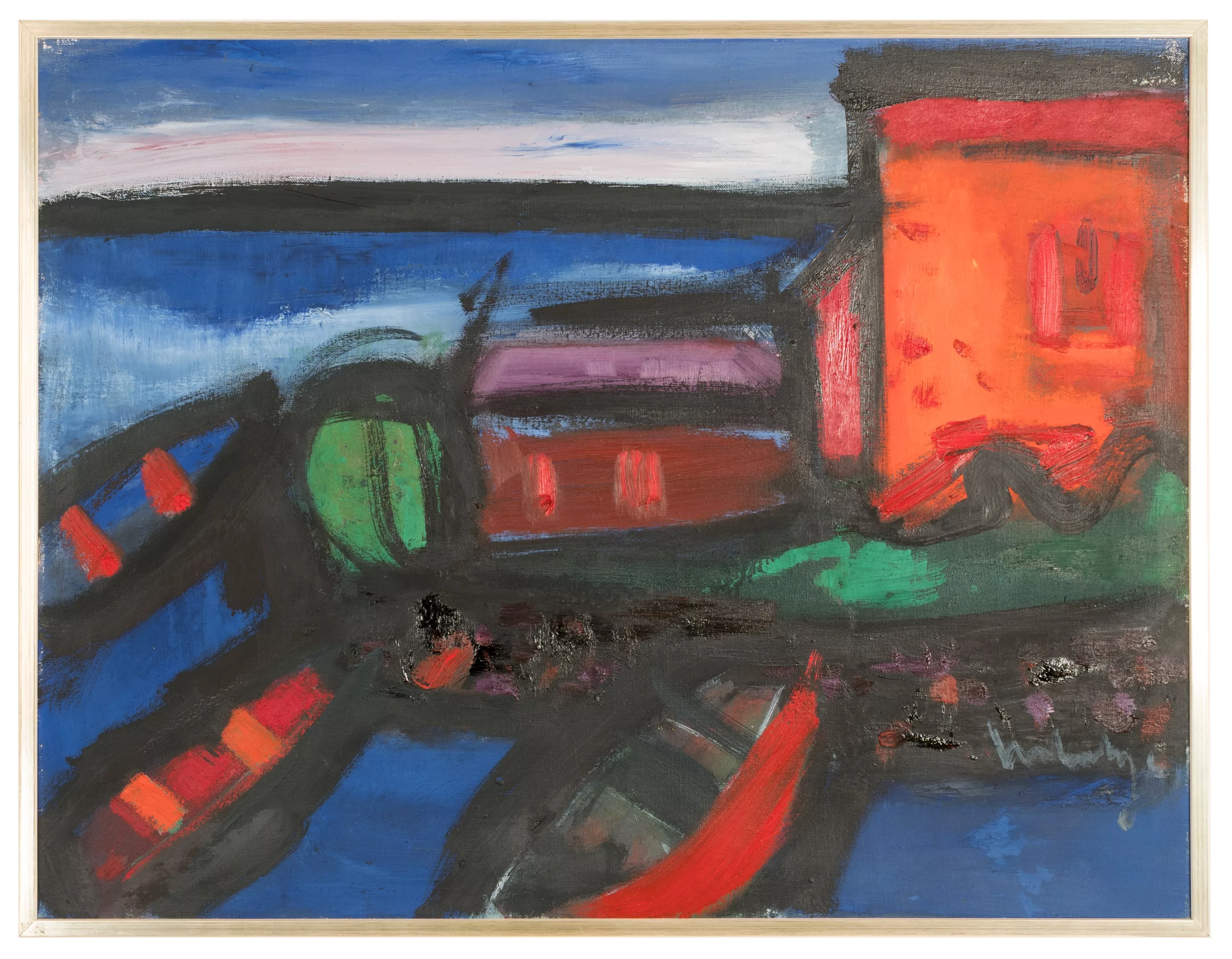 Evening at the Mediterranean, oil on canvas, 66.5 cm x 85.5 cm canvas dimensions, signed, on the gallery label 1969 dated and titled, partially minimally craquelured, Provenance: Galerie Theo Hill, Cologne (verso gallery label)