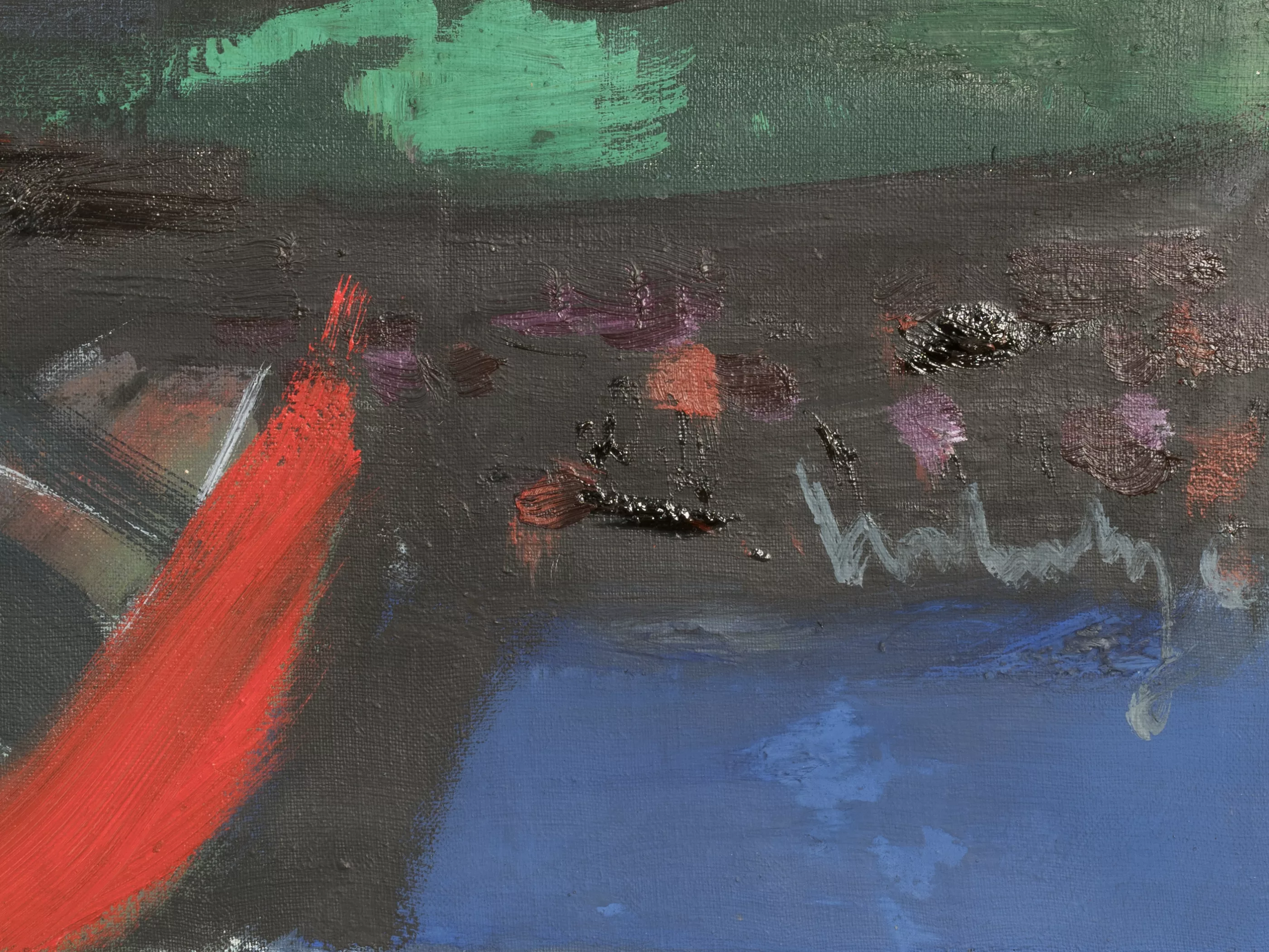 Abend am Mittelmeer, Öl auf Leinwand, 66,5 cm x 85,5 cm Leinwandmaß, signiert, auf dem Galerieetikett 1969 datiert und betitelt, partiell minimal craqueliert, Provenienz: Galerie Theo Hill, Köln (verso Galerieetikett)