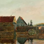 Fluss- und Dorflandschaft, Öl auf Holz, 30,5 cm x 60 cm Werkmaß, signiert, 1920 datiert, partiell retuschiert