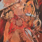 'Dance of the Volcano or the Hope of Fire', mixed media on canvas, 100 cm x 135 cm canvas dimensions, signed, titled, dated 1984 on verso, partially rubbed