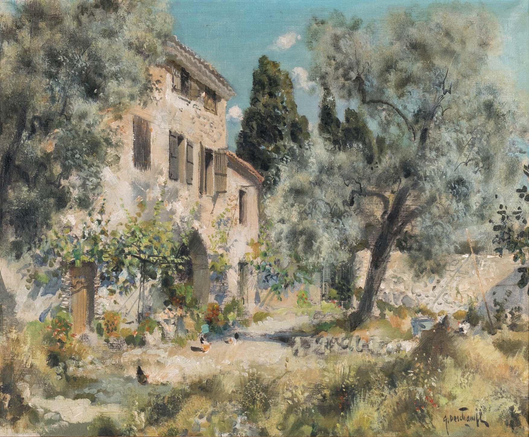 'Plaine de Grasse', oil on canvas, 47 cm x 55 cm canvas dimensions, signed, titled on verso, partially minimally craquelled