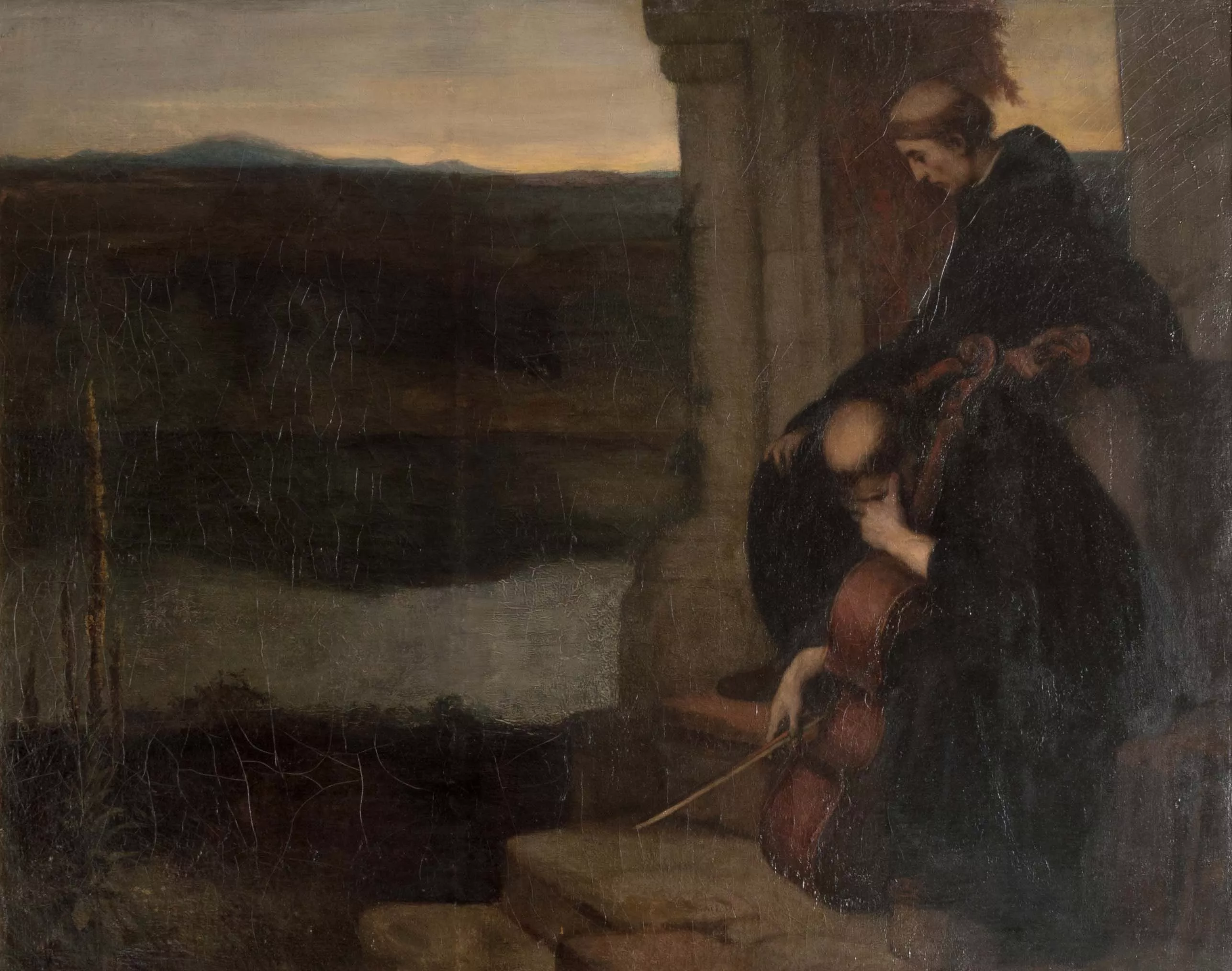 The Lamentation, oil on canvas, 75 cm x 94 cm canvas dimensions, signed, craquelure, in need of cleaning