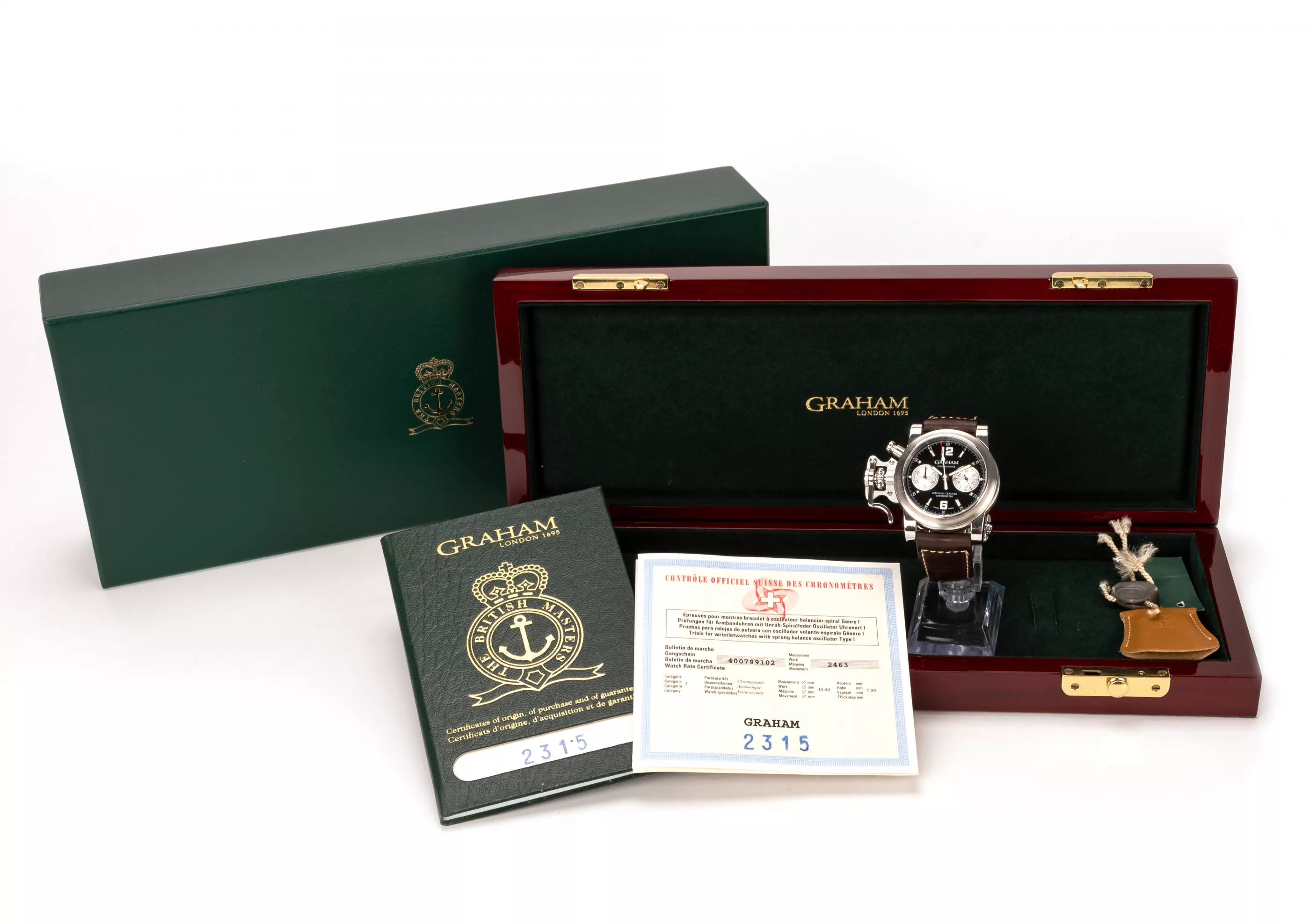 Full-Set, Automatik, Chronograph, Werk-Nr. 2463 | Cal. 2315, Gehäuse Stahl, Durchmesser 44 mm, Original-Armband, Leder, Original-Faltschließe, Stahl, Länge 16 cm, Gesamtgewicht ca. 148,6 g, Funktion gangbar, geprüft, Chronographenfunktion defekt, Zustand gut, Zustand und Funktionalität durch unseren Uhrmachermeister geprüft, mit Original-Box, -Umverpackung und -Papieren, Gangschein, Bleisiegel anbei, Anmerkung: Das Aufgeld beträgt 14,28% inkl. MwSt. Für die Nutzung der Online-Bietkonsolen fällt eine zusätzliche Gebühr in Höhe von 3% zzgl. MwSt. (3,57%) an.