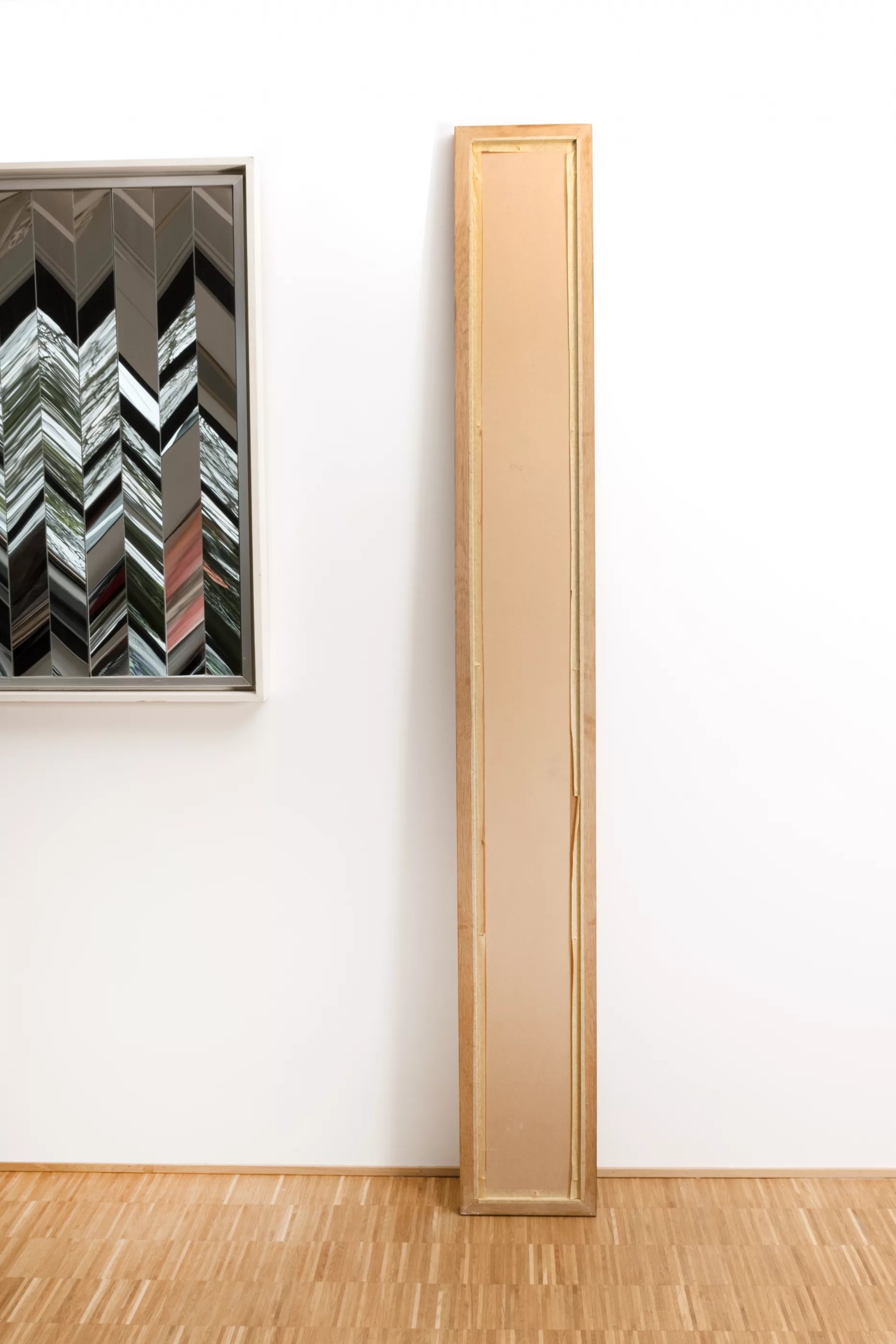 'After', Glas und Eichenholz, 1992, 209 cm x 21 cm Objektmaß, verso 3/12 nummeriert, Literatur: der Kunstverein: Jahresgaben 92. Editionen. Kataloge. Plakate, Düsseldorf 1992, Nr. 9, mit Abb.