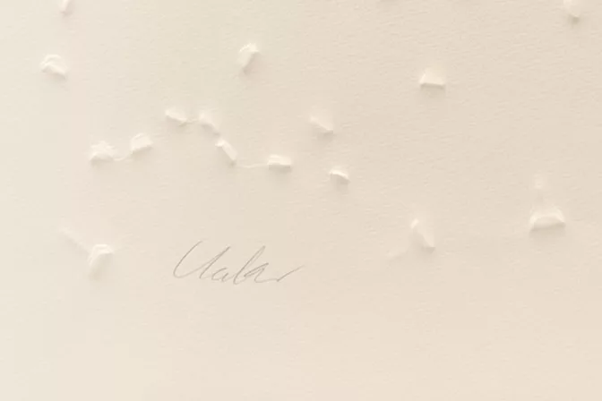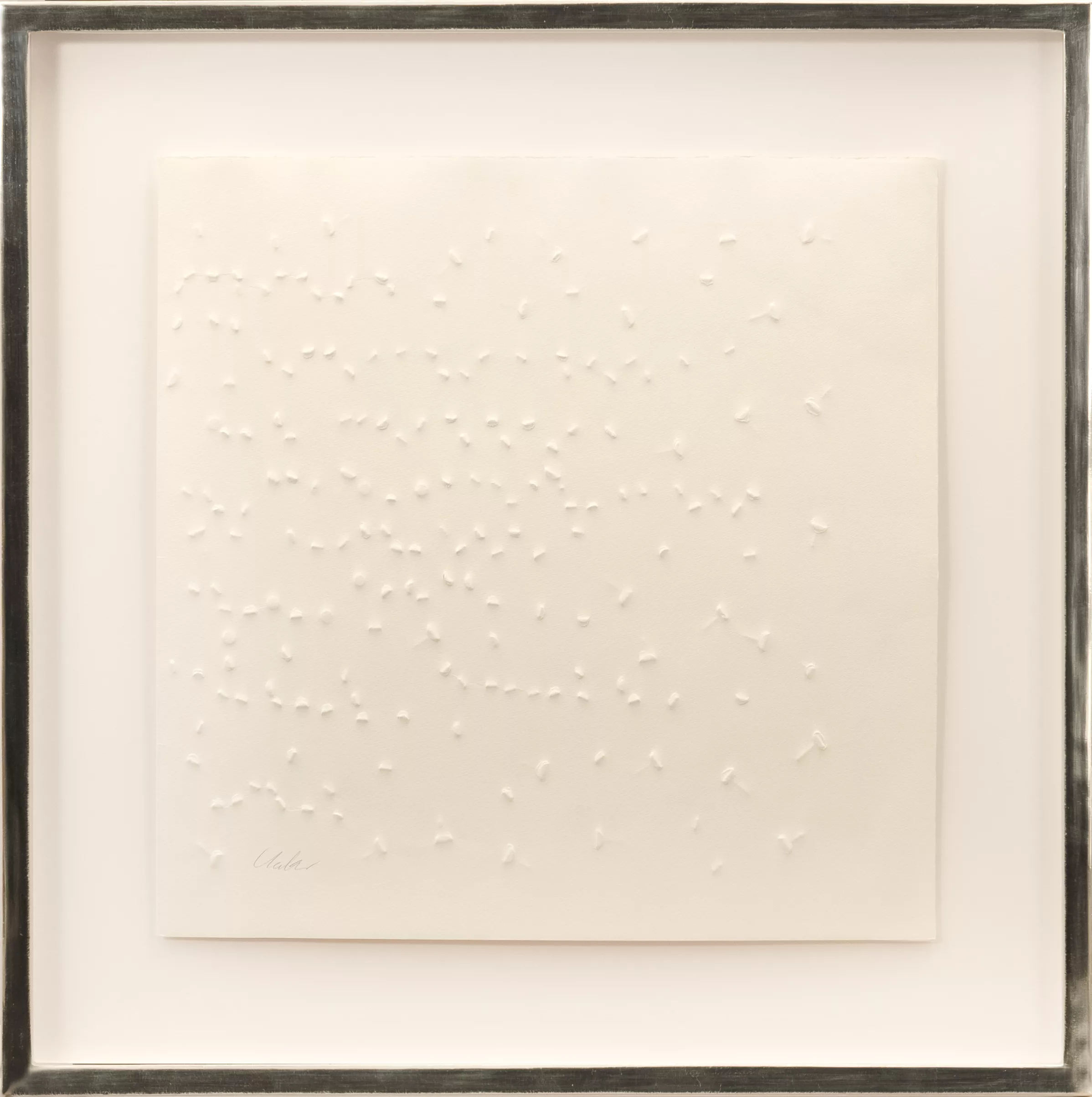 Ohne Titel, aus: 'Vom Licht', Prägedruck (mit Text auf gefalteten Doppelblättern) auf Velin, 51 cm x 51 cm Blattmaß, signiert, h.c. nummeriert, montiert, Literatur: Wvz. van der Koelen 7401
