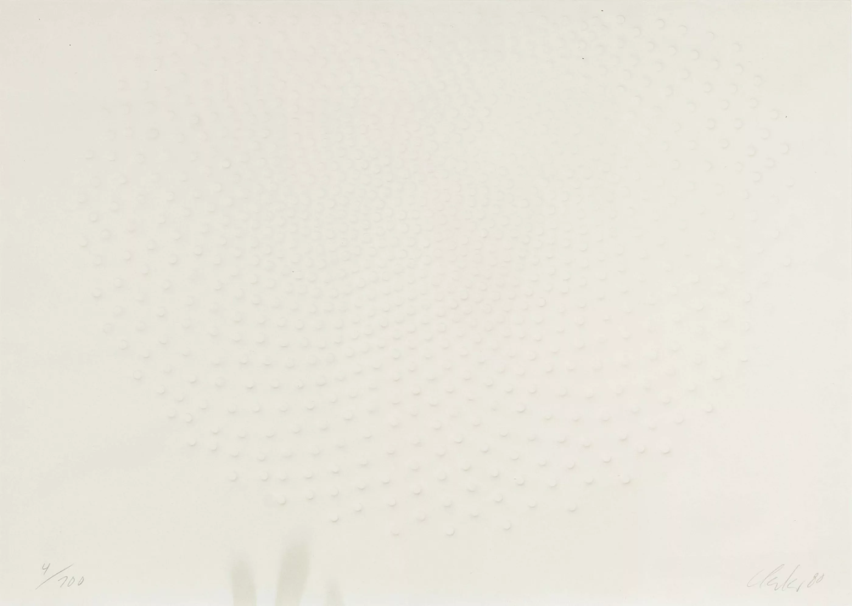 'Phantom', embossed print on laid paper, 50 cm x 70 cm sheet dimensions, signed, dated 80, numbered 4/100, mounted on the upper edges, discolouration in the lower area, slightly wavy