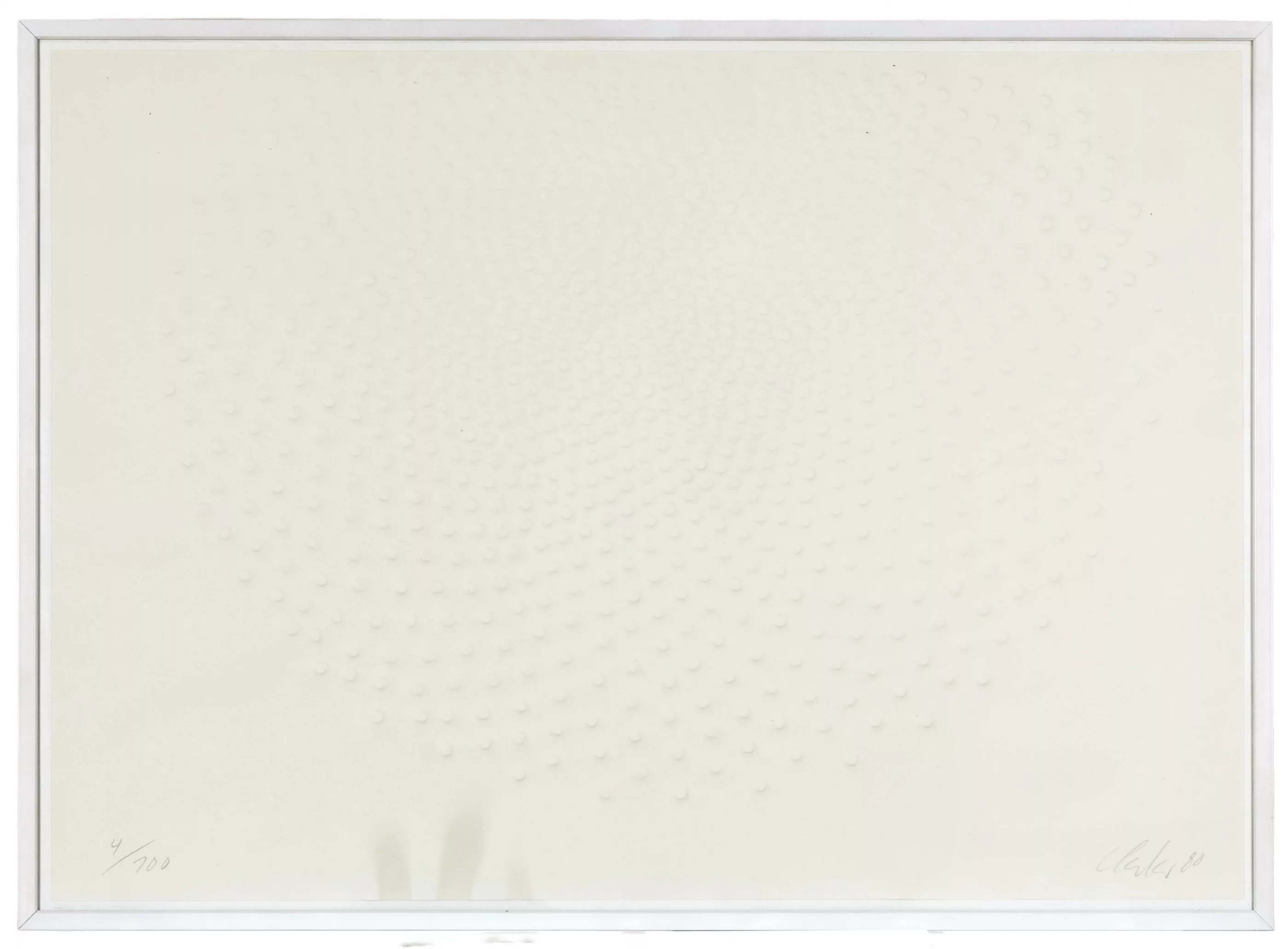 'Phantom', Prägedruck auf Bütten, 50 cm x 70 cm Blattmaß, signiert, 80 datiert, 4/100 nummeriert, an den Oberkanten montiert, Verfärbungen im unteren Bereich, leicht gewellt