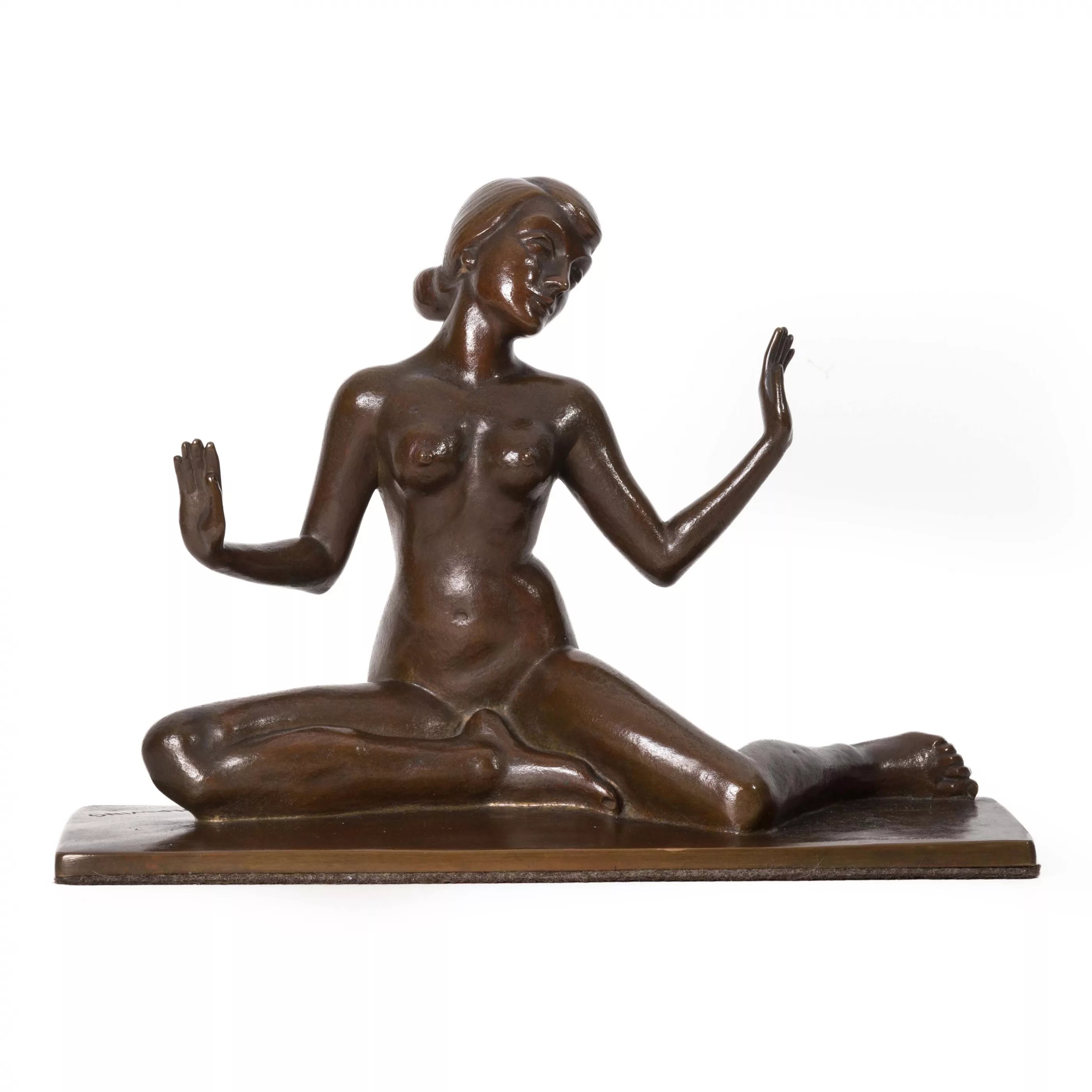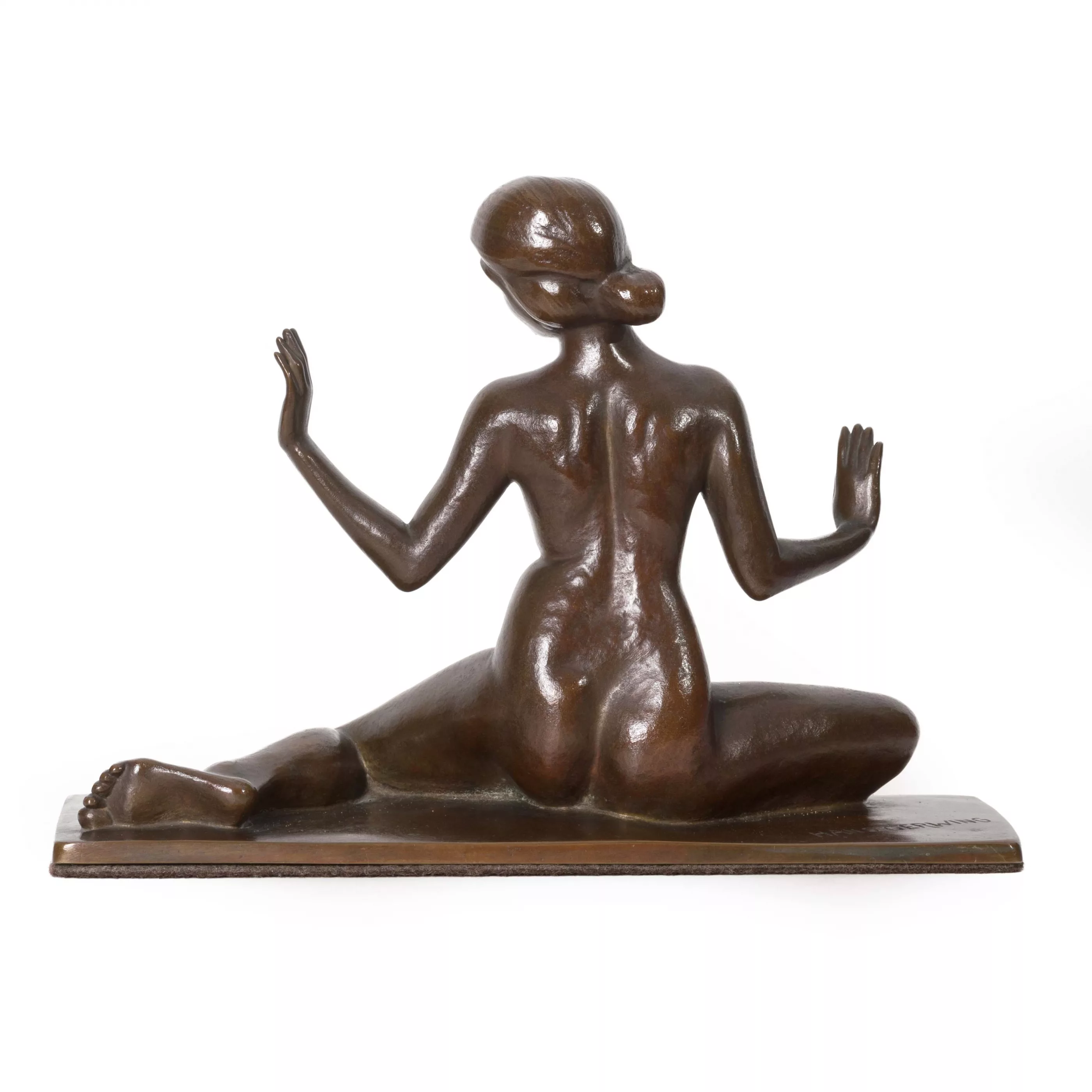 Weiblicher Akt, Bronze, braun patiniert, 33 cm x 13 cm x 24 cm Objektmaß, im Guss signiert