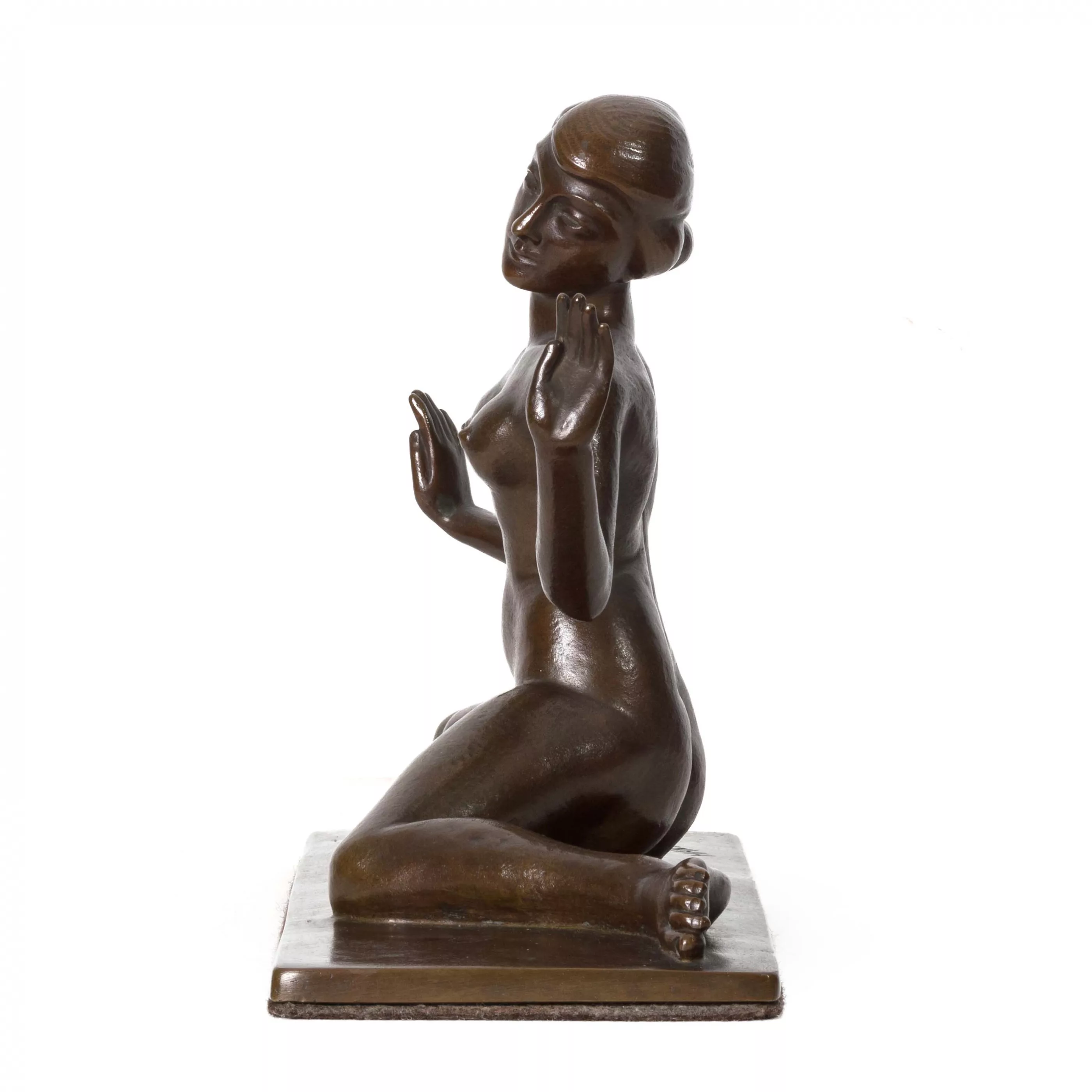 Female nude, bronze, brown patina, 33 cm x 13 cm x 24 cm object dimensions, signed in the cast
