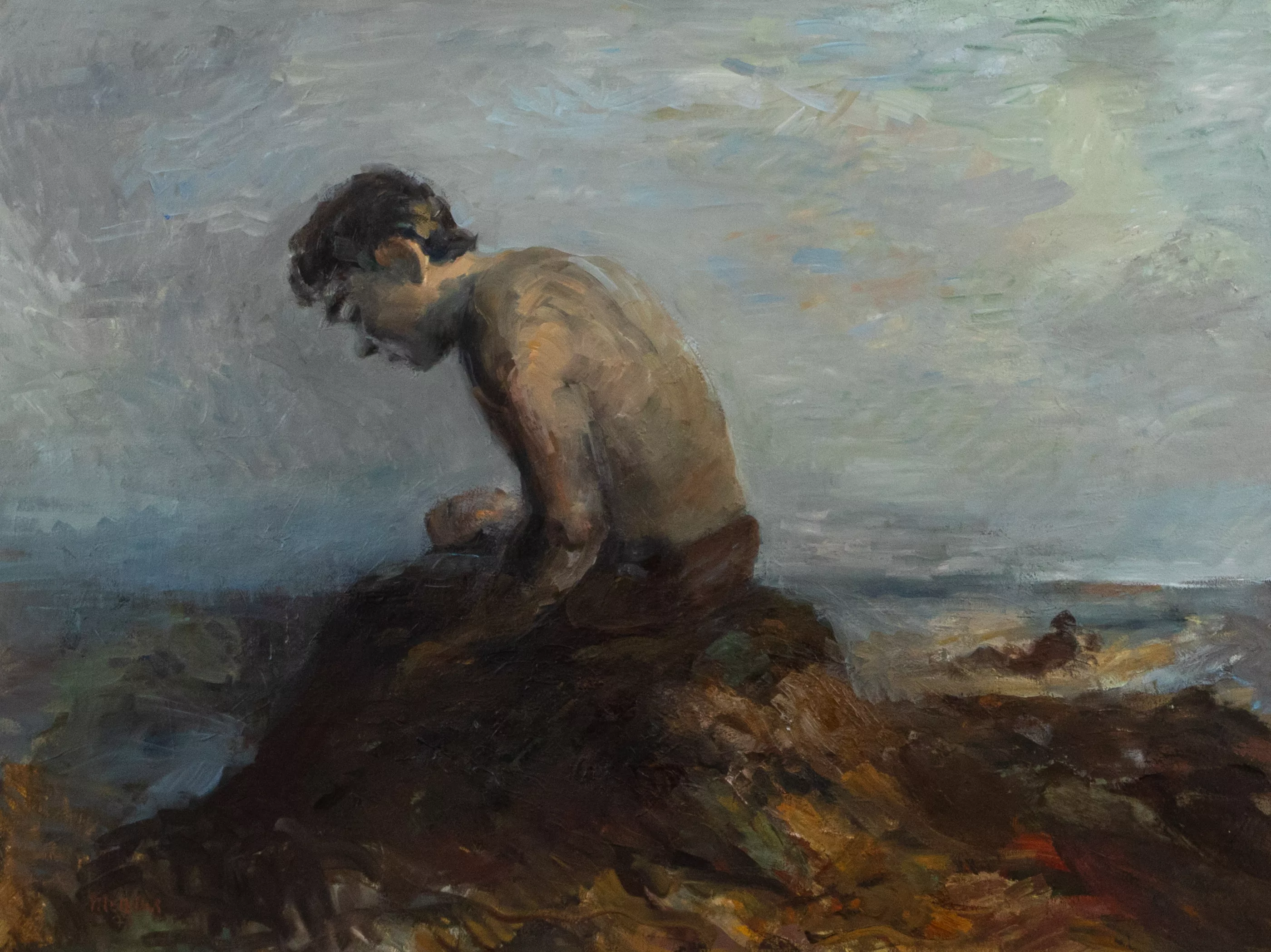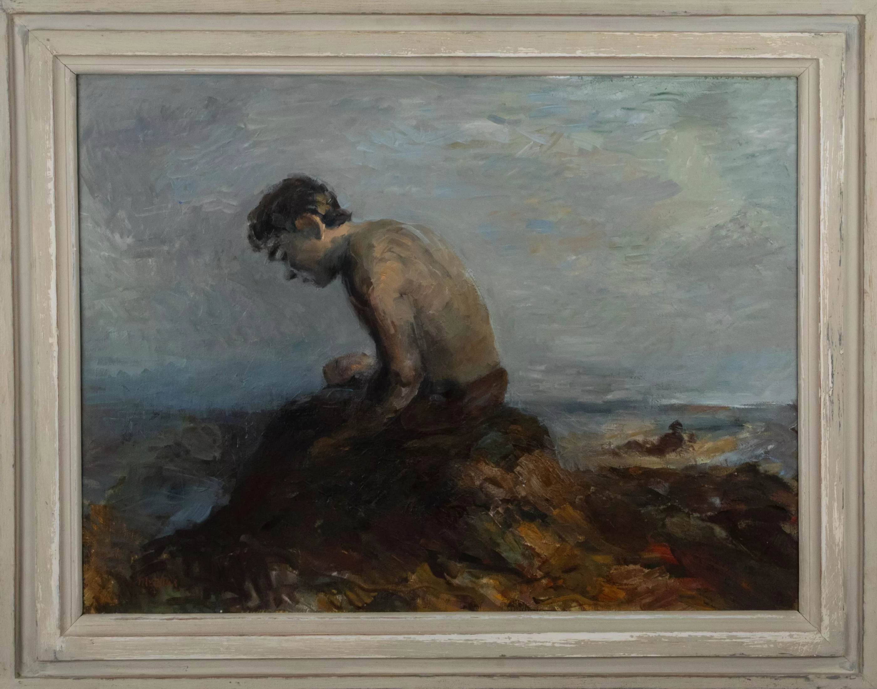 Sinnender am Meer, Öl auf Leinwand, 59 x 78 cm, signiert, 77 datiert
