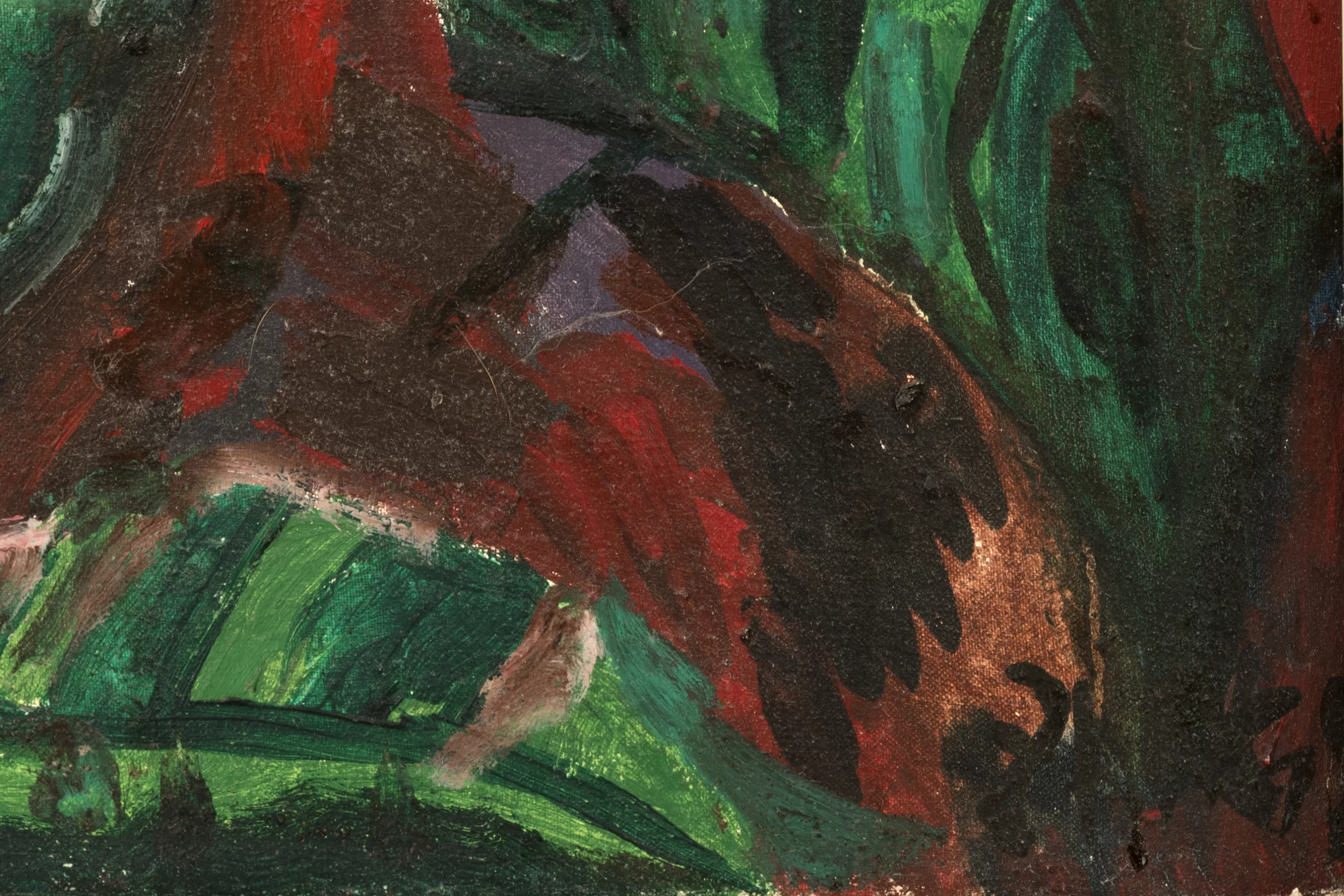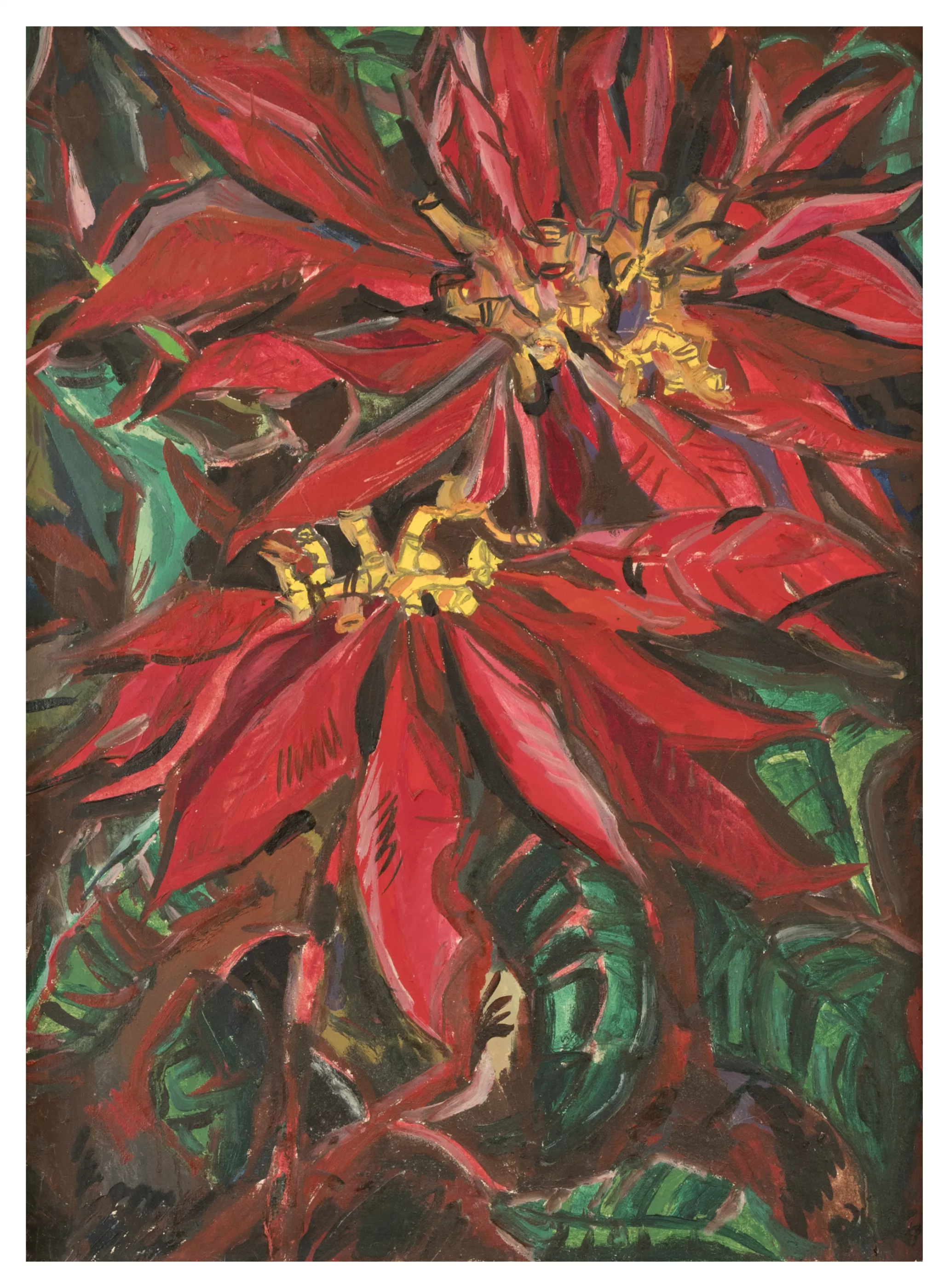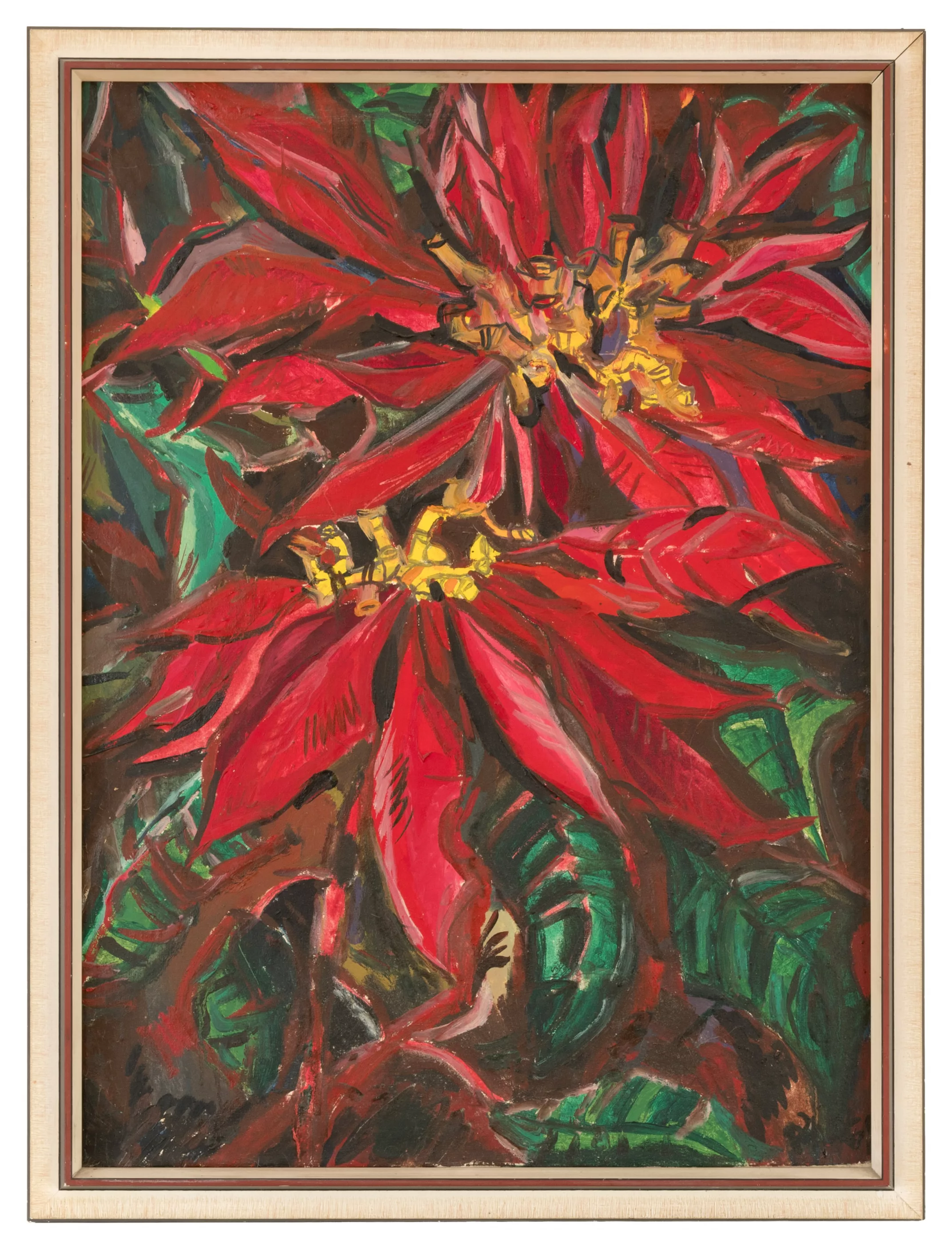 Two poinsettias, oil on canvas, 80 cm x 59 cm canvas dimensions, signed, signed on verso, minimally craquelured, canvas slightly dented in places