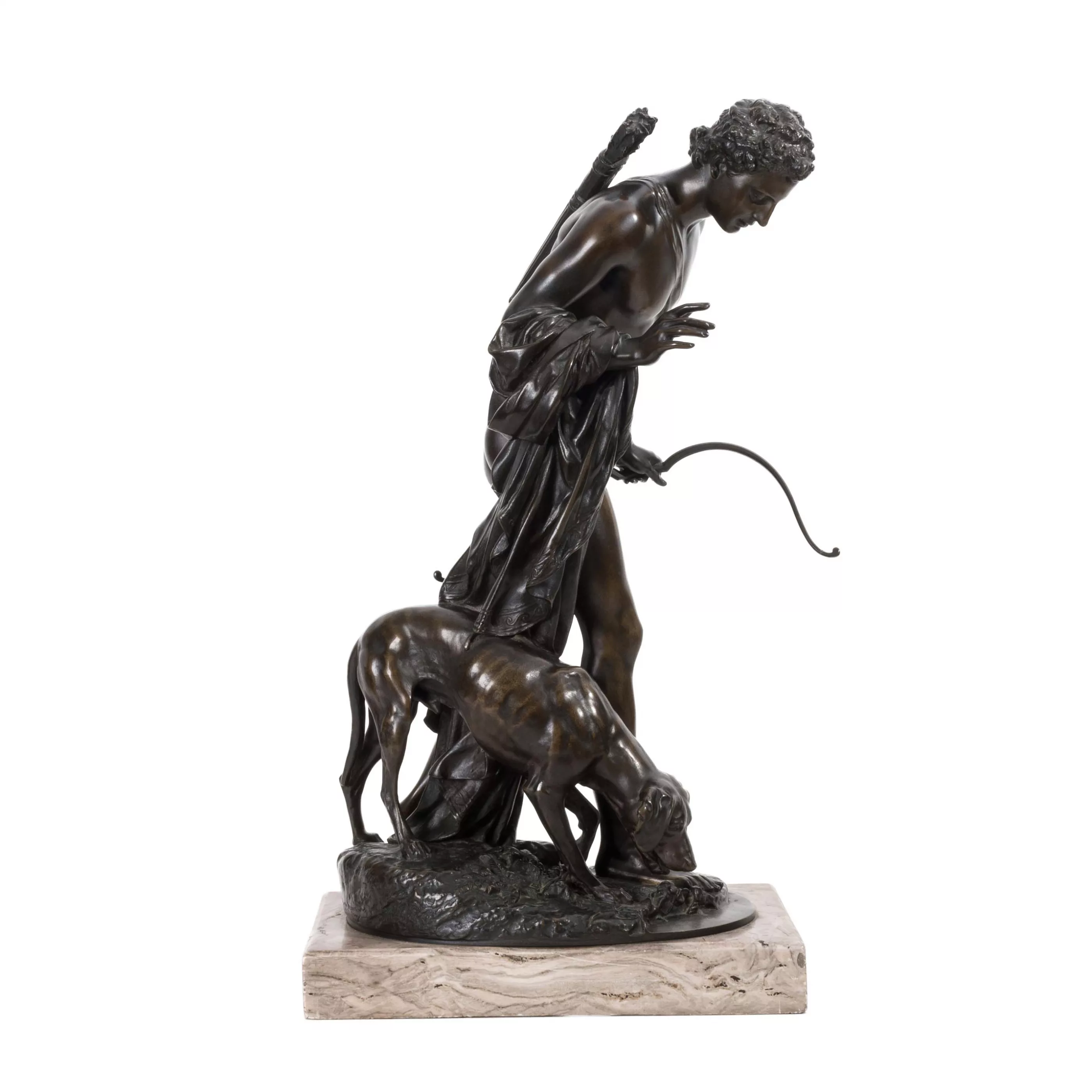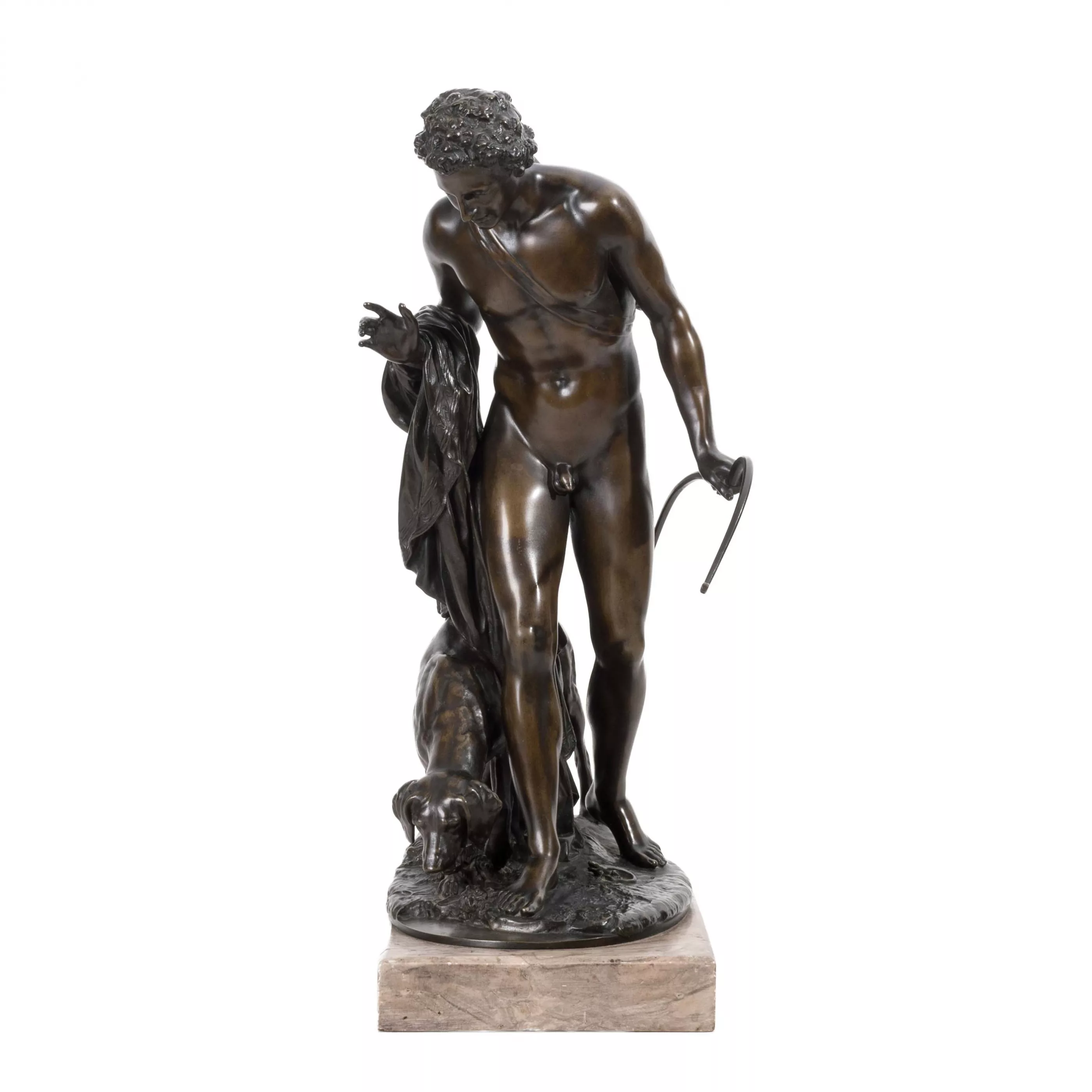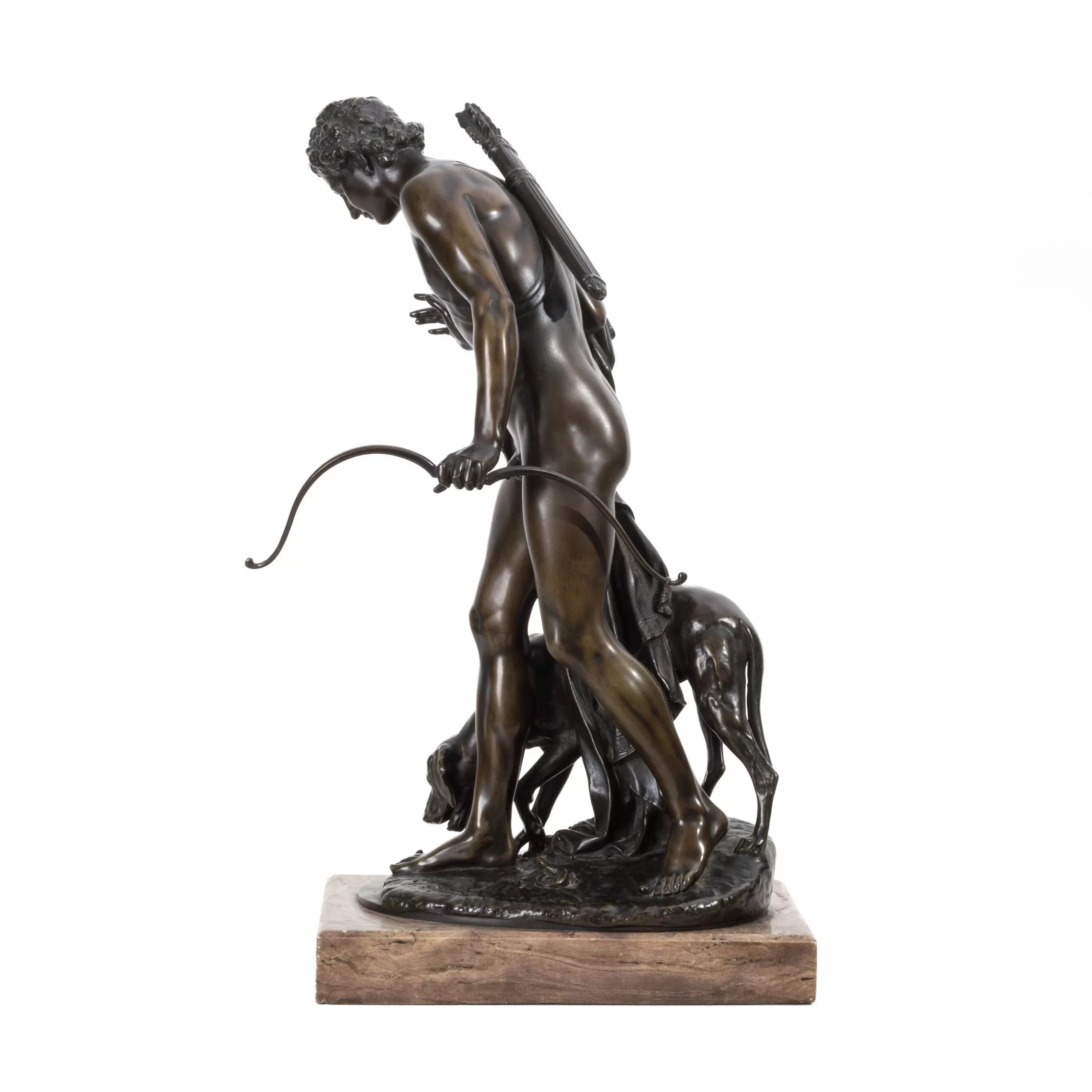 Apollo als Jäger, Bronze, braun patiniert auf Sockel, nach einem antiken Vorbild, 19. Jh., Höhe (mit Sockel) 43 cm, Gießerstempel 'Akt....