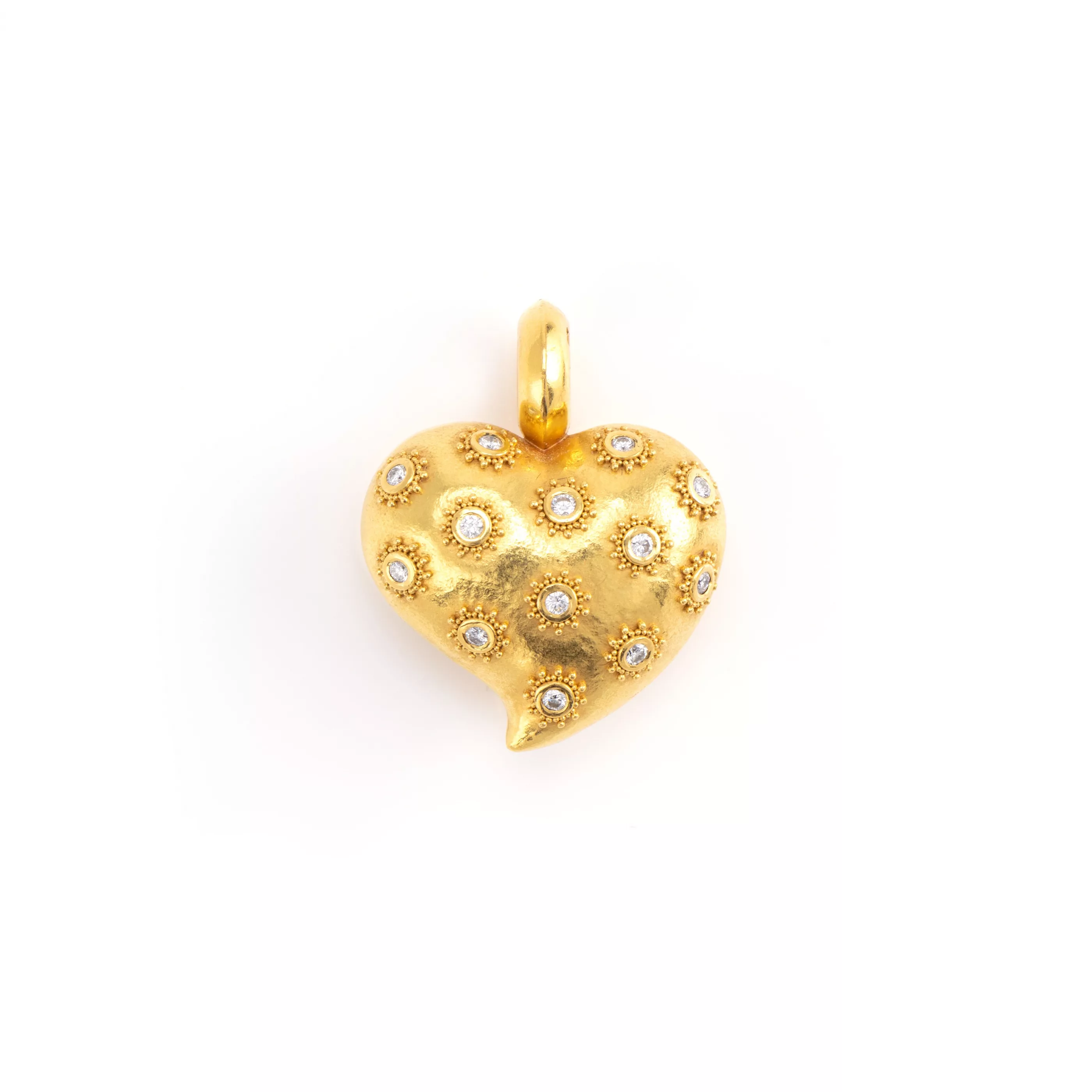Herzanhänger900 Gelbgold, punziert, schwer leserliche Kontrollpunze, 13 Diamanten im Brillantschliff, gesamt ca. 0,30 ct, G, vvs-vs, Länge...