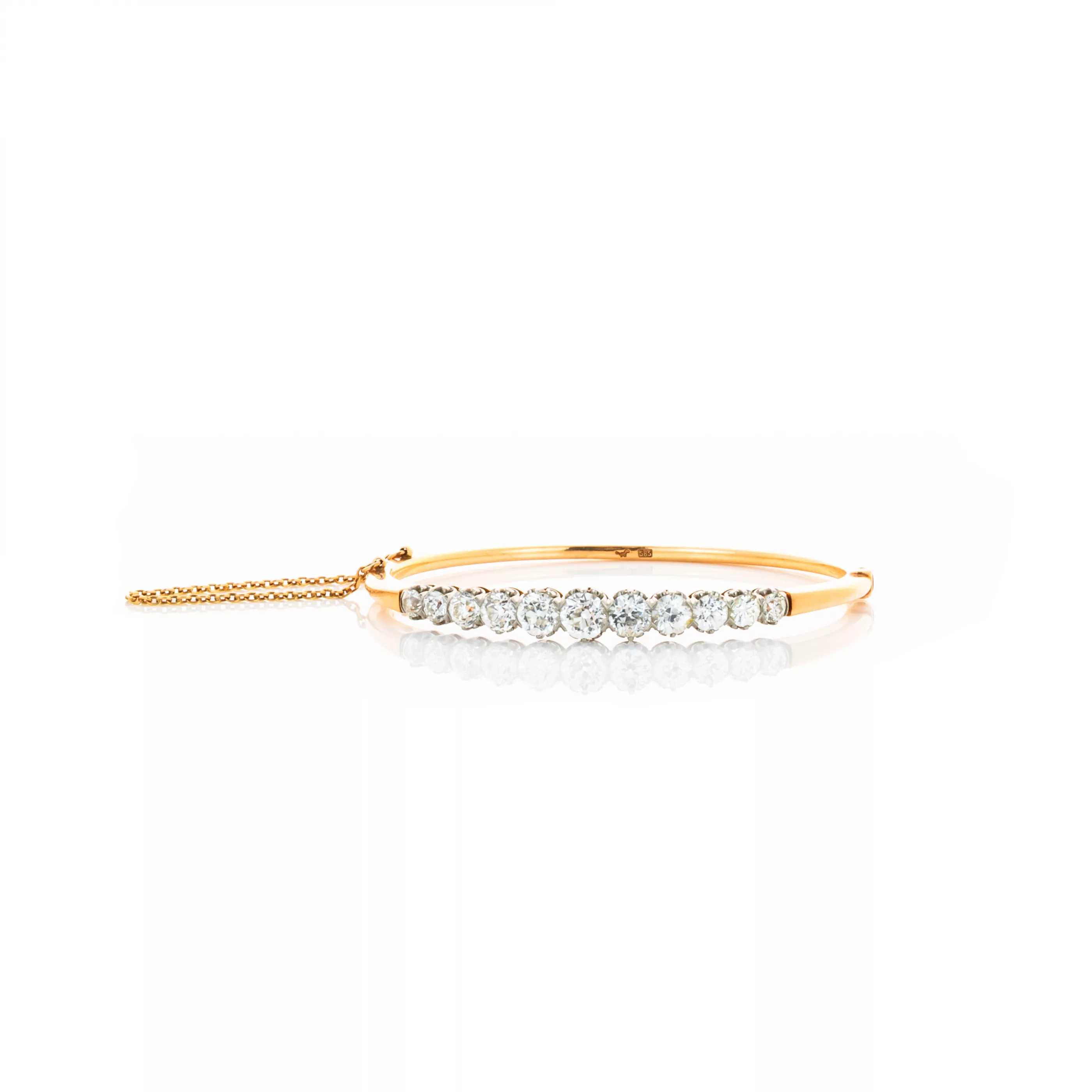 585 rose gold, hallmarked and confirmed by an eagle hallmark (1888-1914), old-cut diamonds, total approx. 3.45 ct, H-I, VSI, length approx. 17 cm, total weight 21.2 g, clasp with safety chain