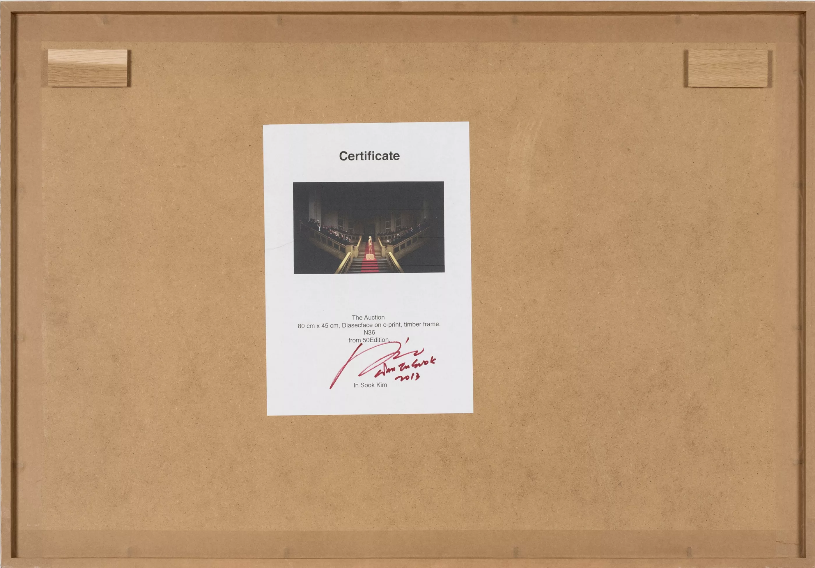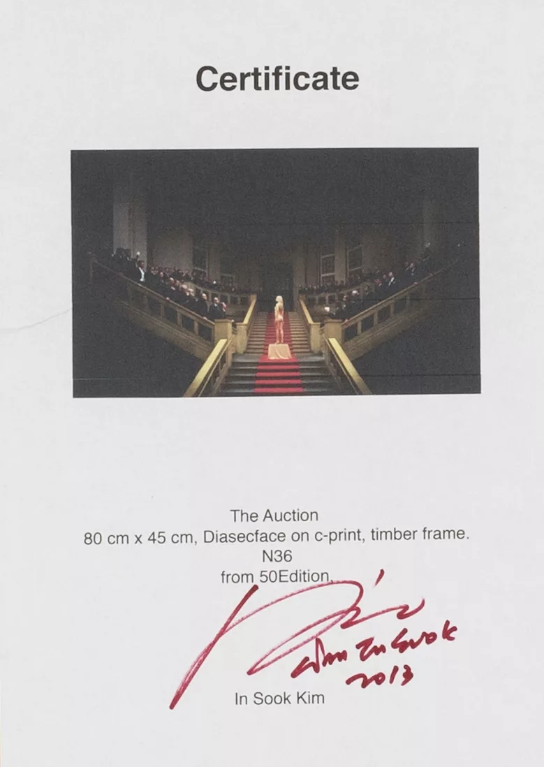 'The Auction', C print on paper, 54 cm x 79 cm inside frame dimensions, signed on verso of a certificate, dated 2013, titled, from an edition of 50 prints.