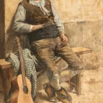 Guitarrista dormido (Sleeping guitar player), oil on canvas, 42 cm x 22 cm canvas dimensions, signed, slightly in need of cleaning