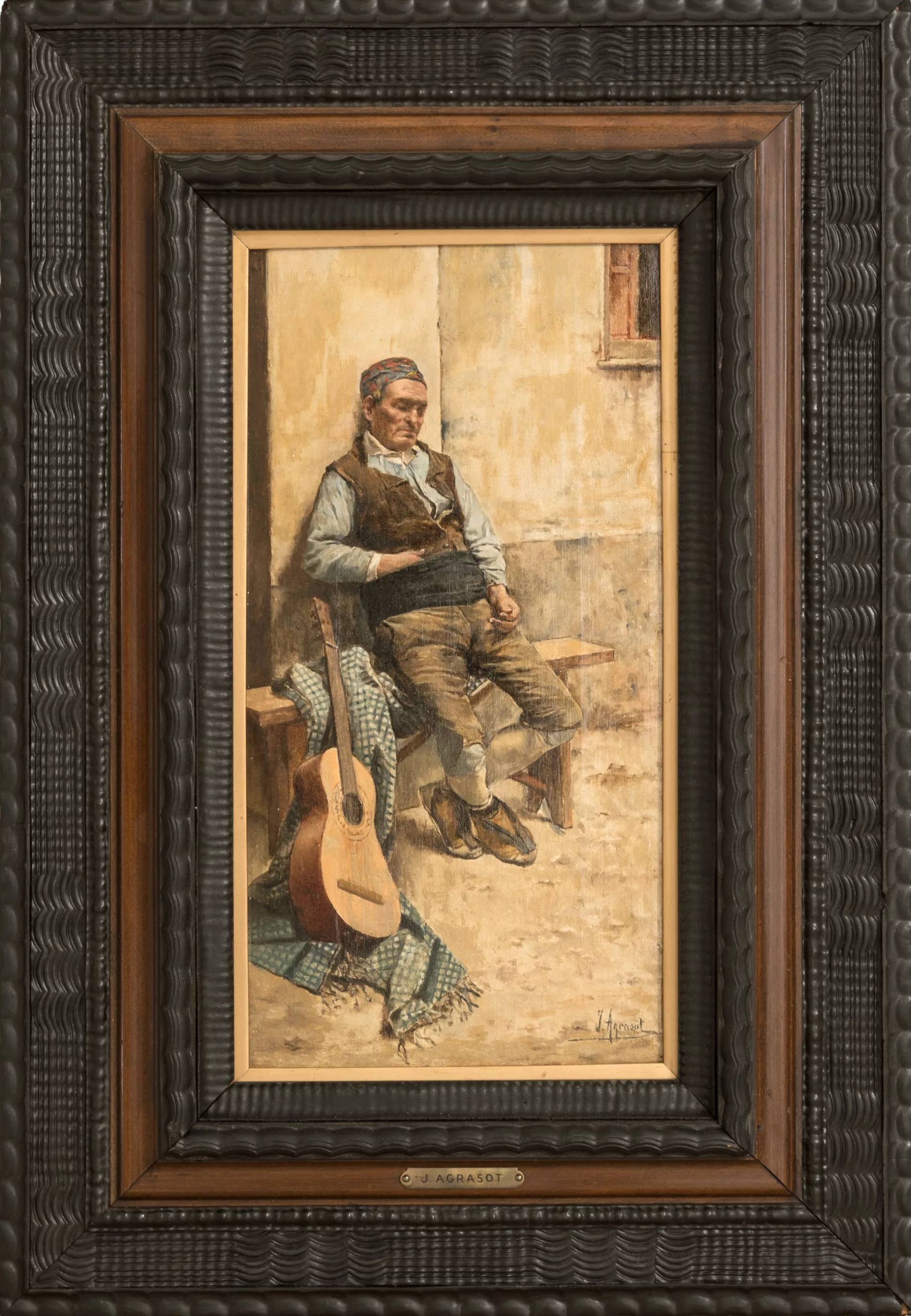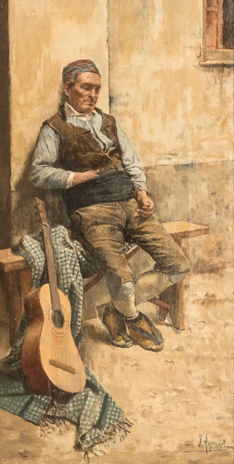 Guitarrista dormido (Sleeping guitar player), oil on canvas, 42 cm x 22 cm canvas dimensions, signed, slightly in need of cleaning