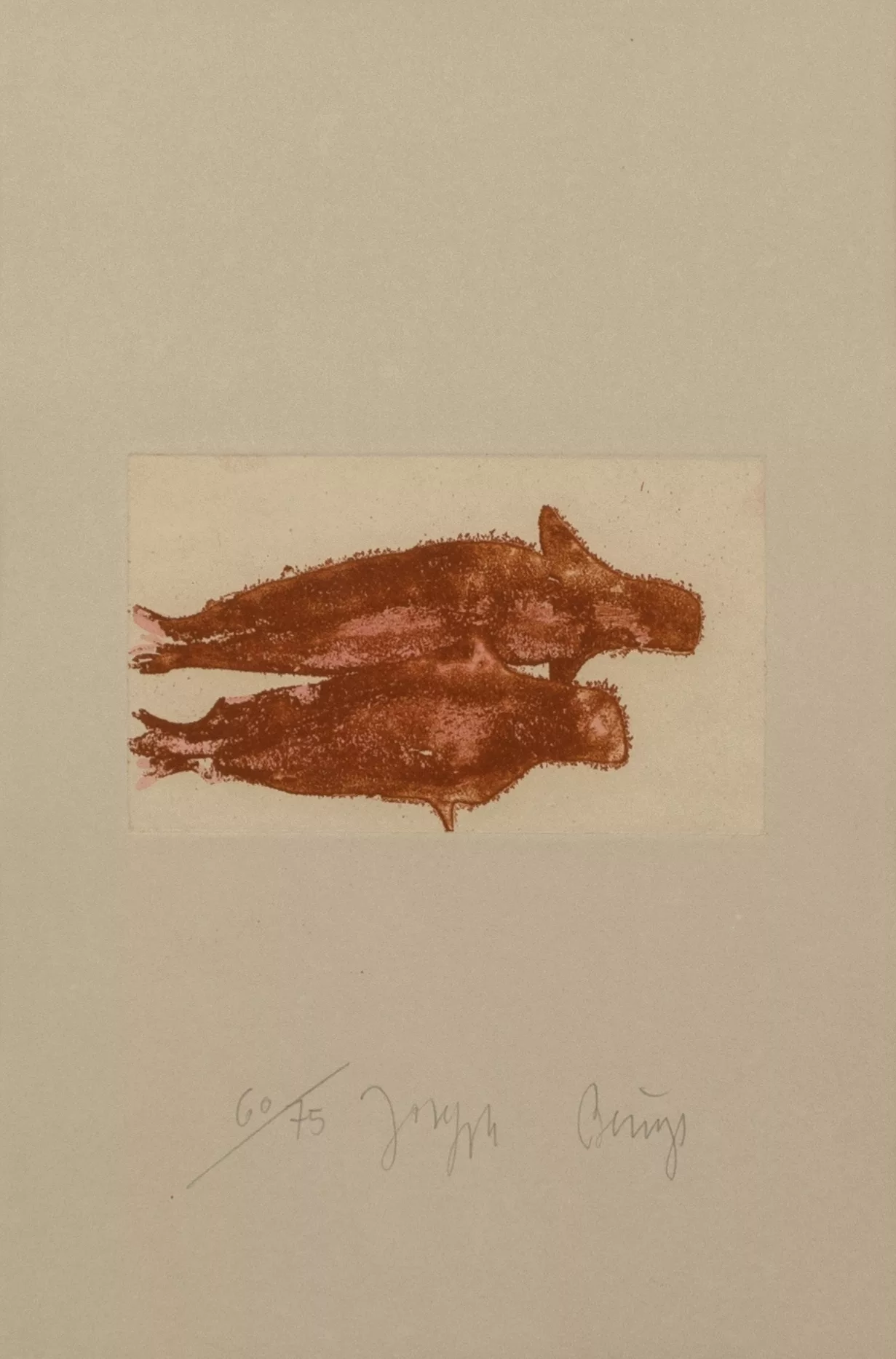 'Meerengel zwei Robben', Farbaquatinta auf Velin d'Arches, 1982, 30 cm x 20 cm Sichtmaß, signiert, 60/75 nummeriert, Literatur: Wvz. Schellmann 429, Blatt 12 der Folge 'Suite Zirkulationszeit' aus dem Jahr 1982, die insgesamt 21 Radierungen, Aquatinten und Lithografien umfasst, hrsg. Grafos-Verlag, Vaduz