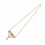 Circa 1900, 585 yellow gold, tested, 5 round faceted amethysts and 1 teardrop cut amethyst, natural pearls, length necklace 38 cm, weight ca. 6,7 g