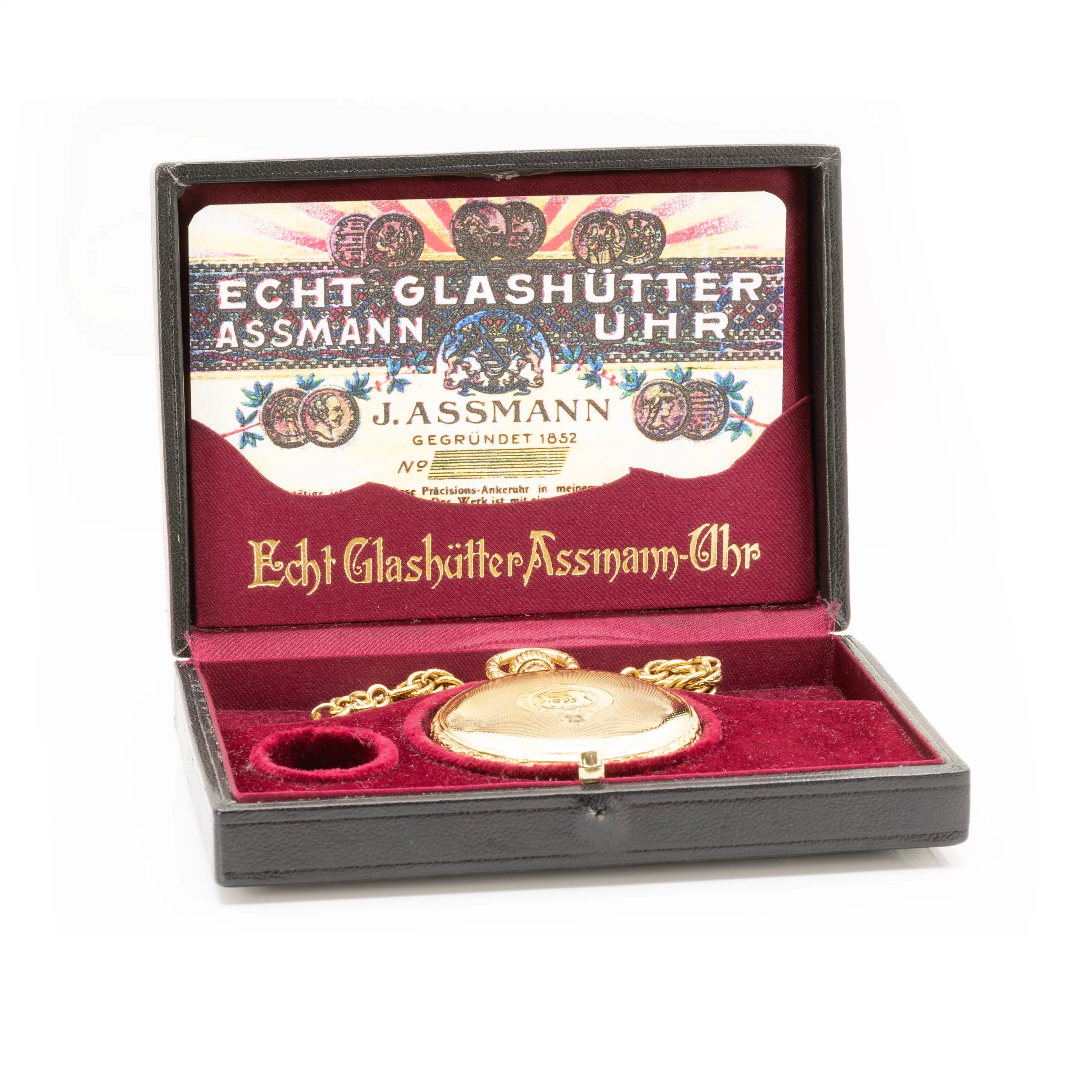 Julius Assmann Glashütte Savonette im Prunkgehäuse mit Uhrenkette