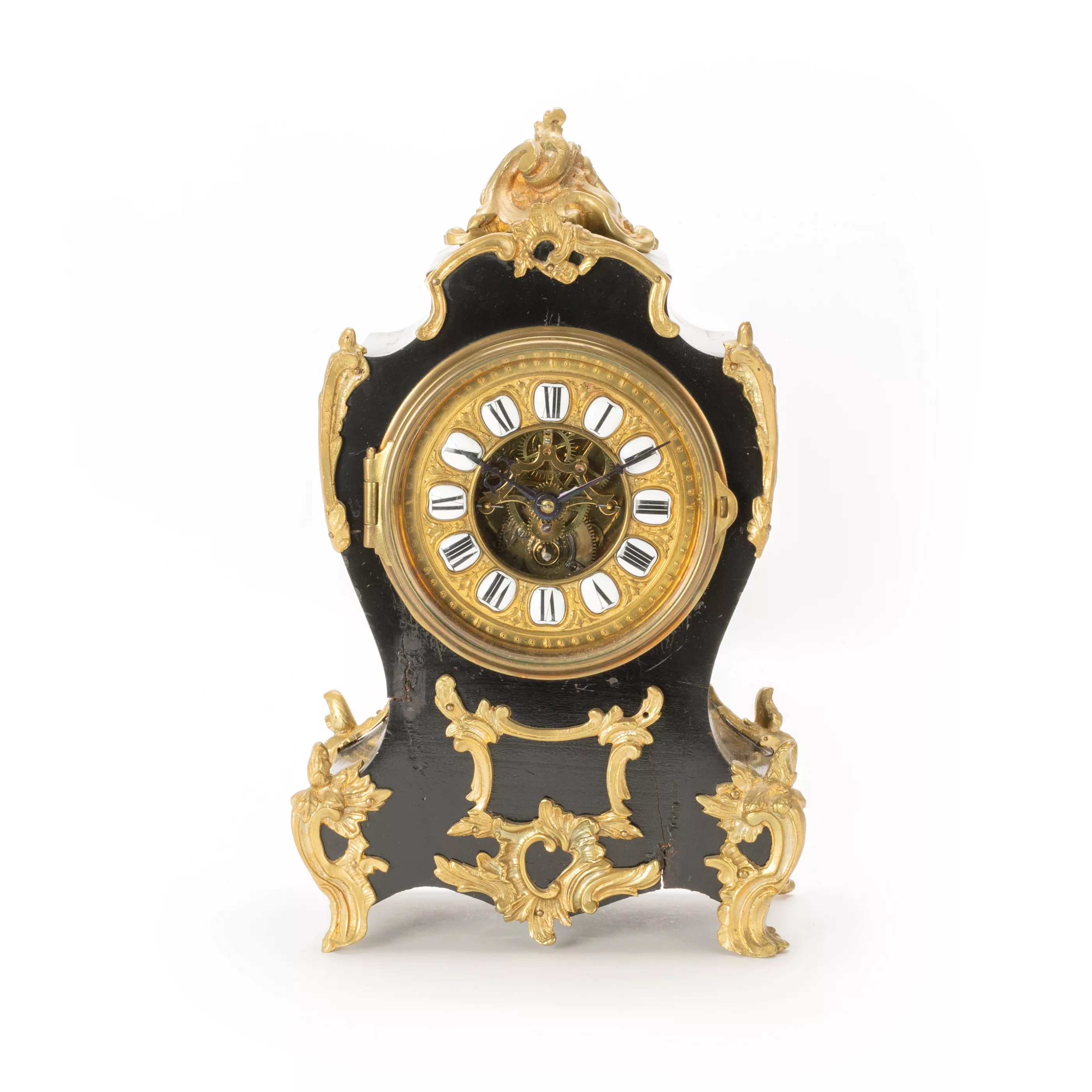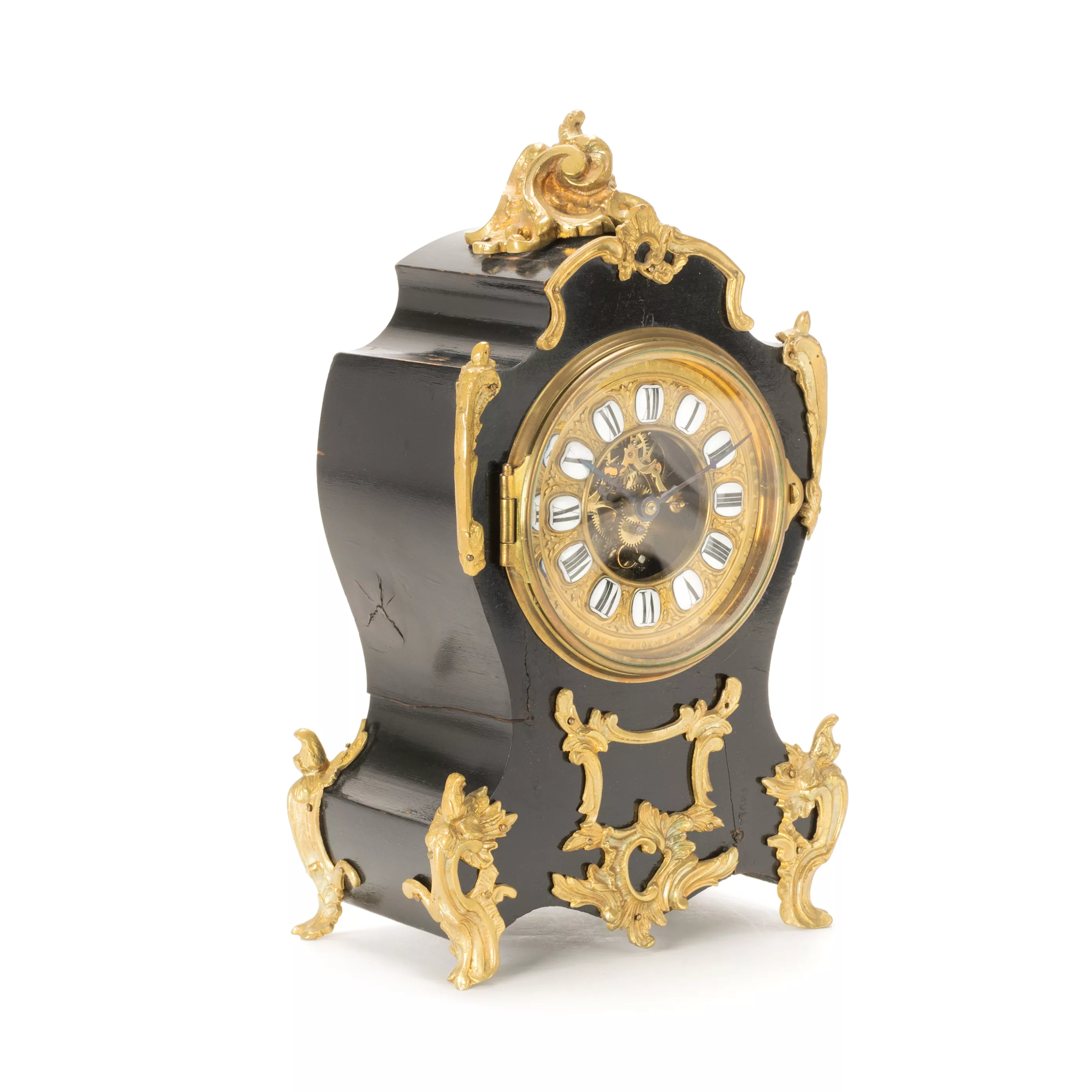 Farcot e. Paris, Frankreich, um 1860, dunkel lackiertes Holzgehäuse, feuervergoldete Bronzebeschläge in Rocailleformen, Messingzifferblatt...