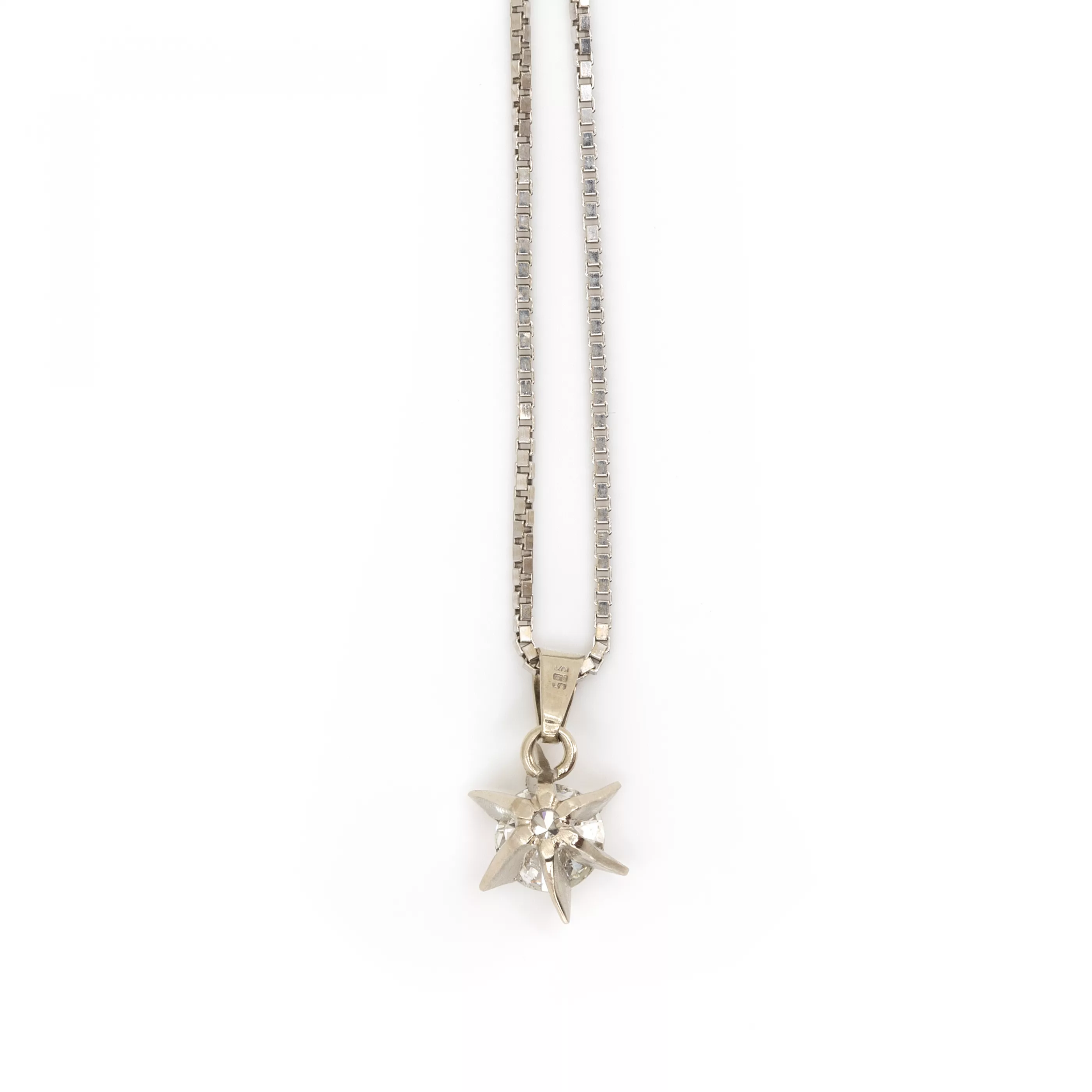 Kette und Anhänger 585 Weißgold, punziert, Diamant im Brillantschliff, ca. 1,23 ct, H, si2, Länge Kette 39 cm, Länge Anhänger 1,7 cm, Gewicht ca. 5,6 g
