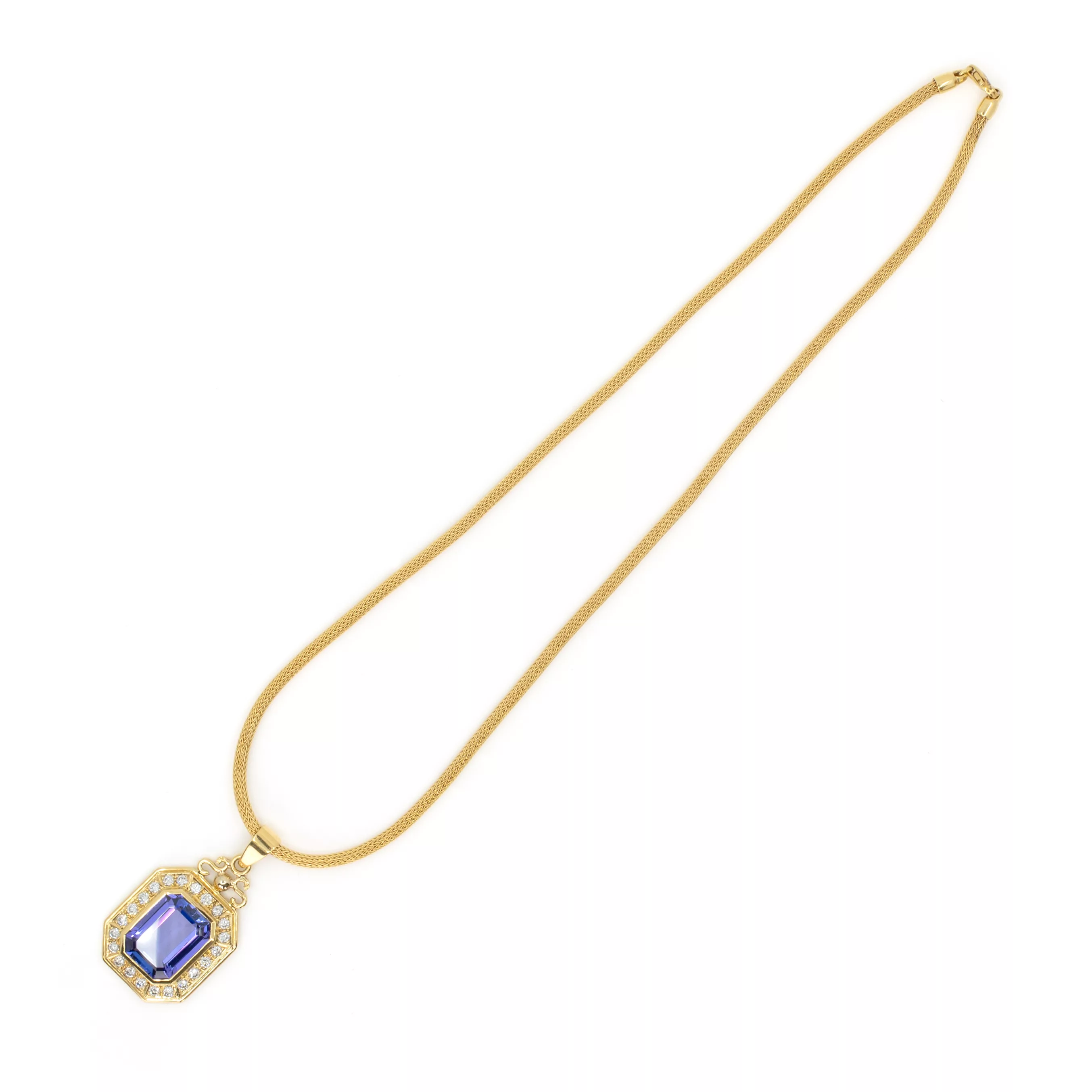 Tubular necklace 585 yellow gold, hallmarked, pendant 750 yellow gold, hallmarked, 22 brilliant-cut diamonds, total approx. 0.88 ct, G-H, vs-si, emerald-cut tanzanite, approx. 10.0 ct, 15 mm x 12 mm, chain length 43.5 cm, pendant length 4 cm, total weight approx. 19.9 g