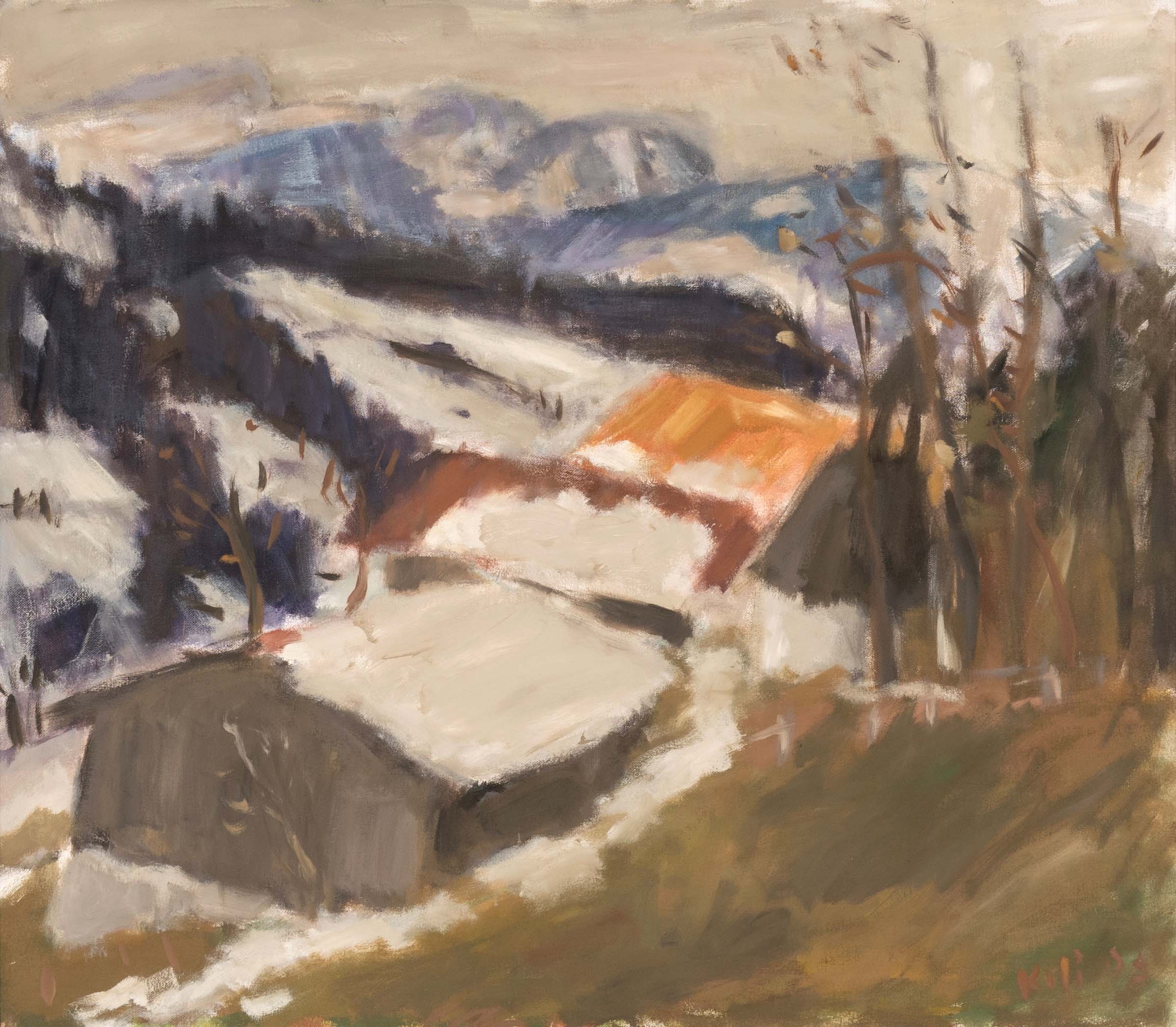 'Winter am G', oil on canvas, 70 cm x 80 cm canvas dimensions, signed, dated 03, signed on verso, dated 18.1.03, titled