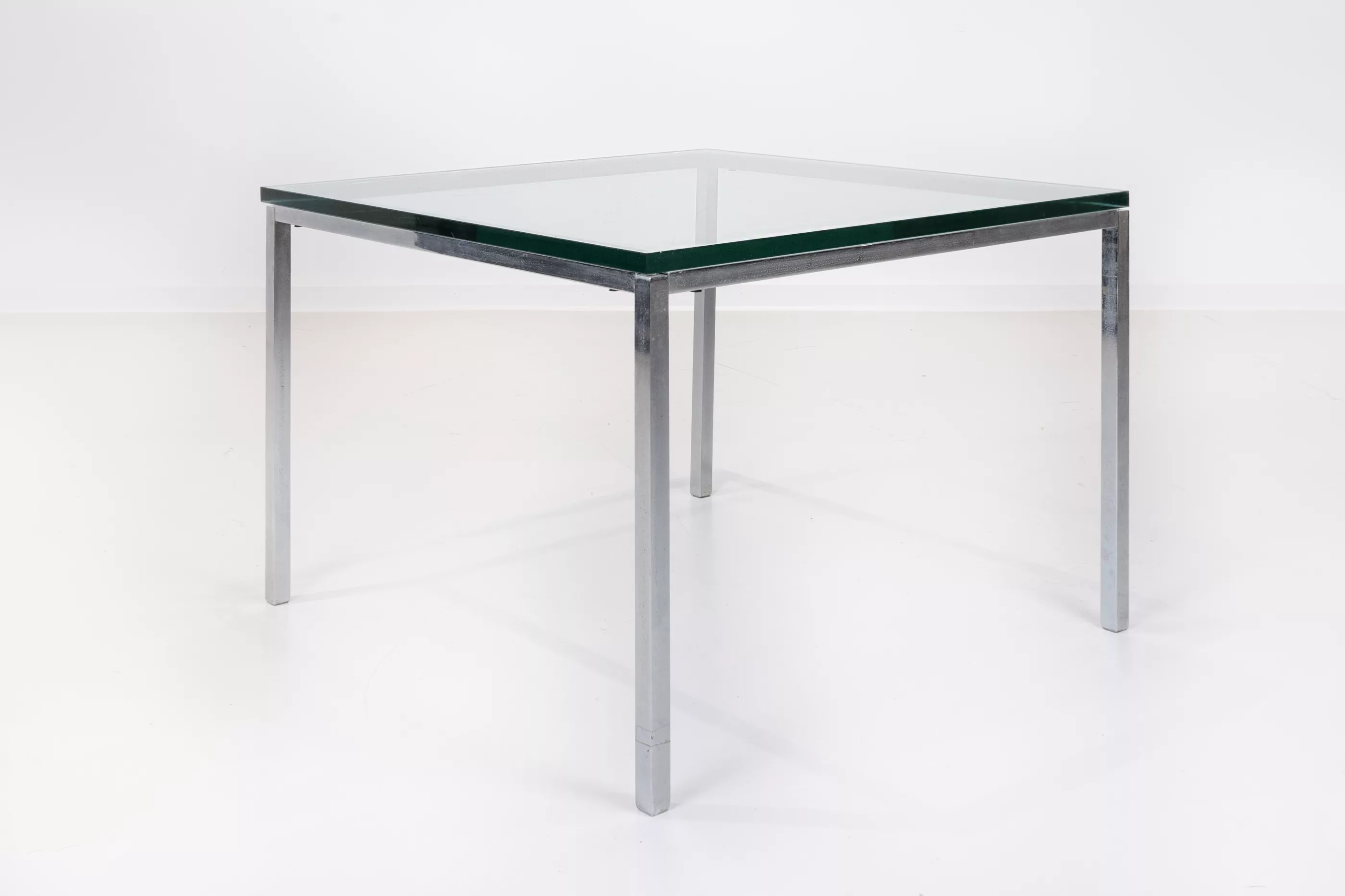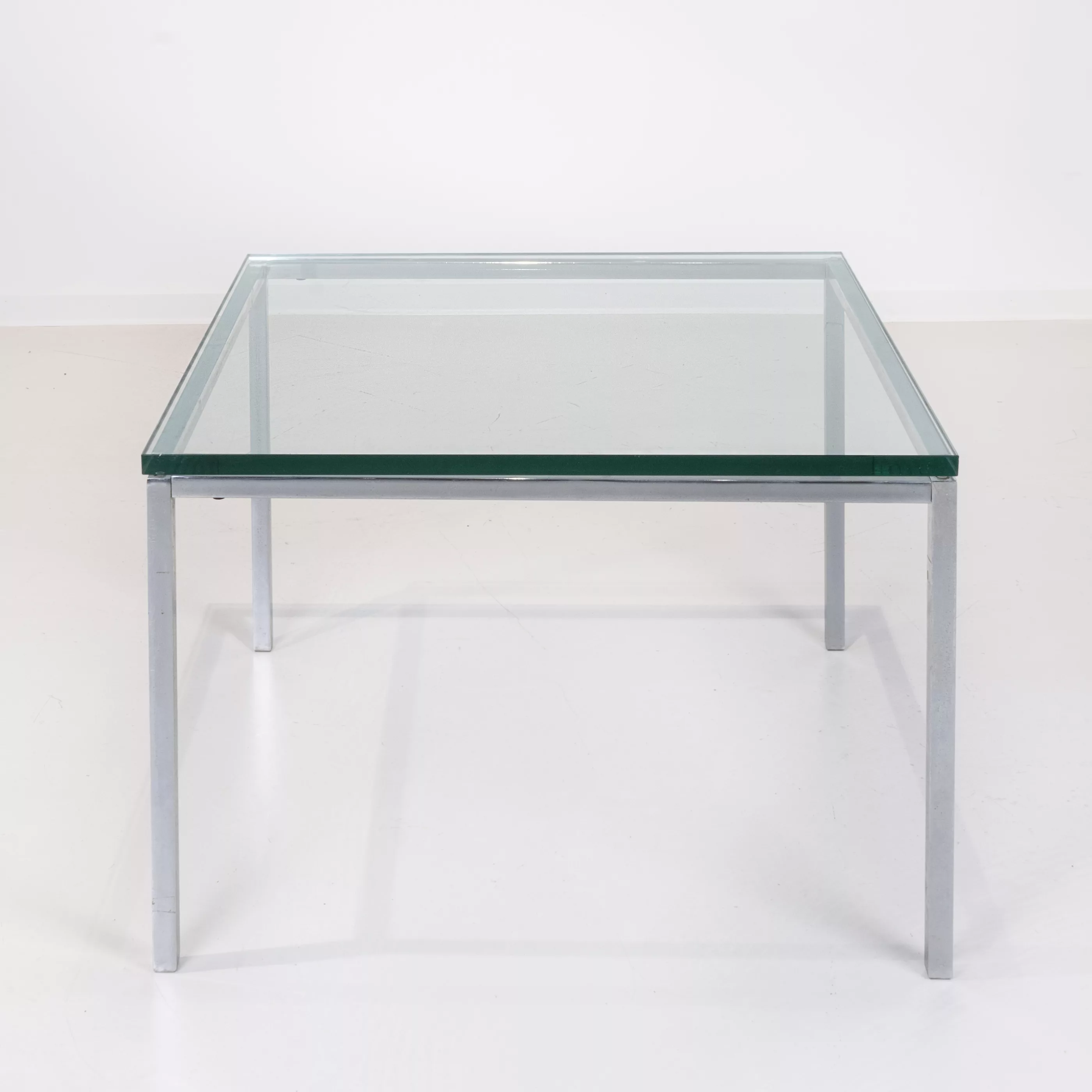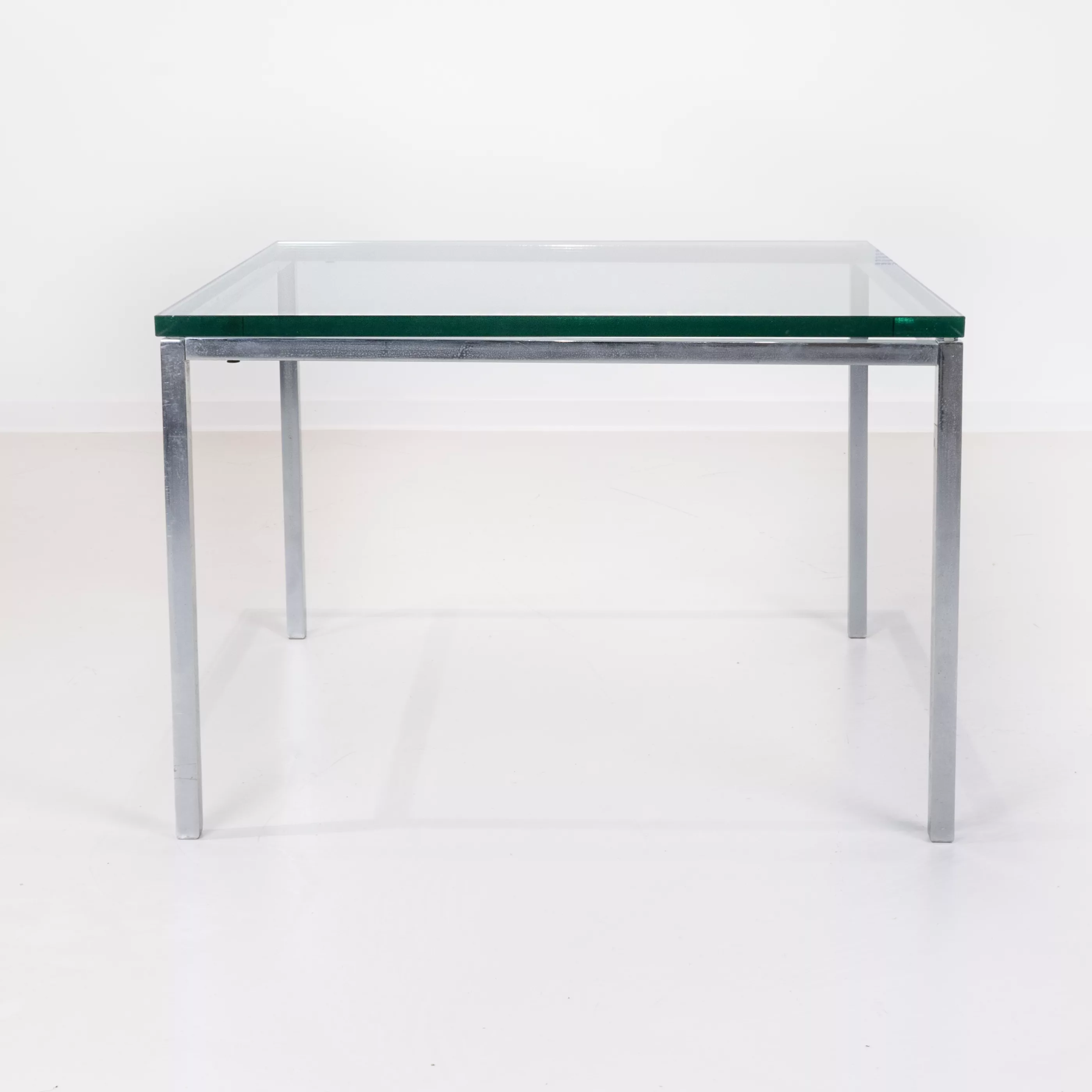 Knoll International, USA, designed by Florence Knoll (1917 - 2019), chromium-plated steel, glass, 48 x 69,5 x 69,5 cm, condition C/D, signs of age and wear, partial scratches in the glass, 2 screws missing