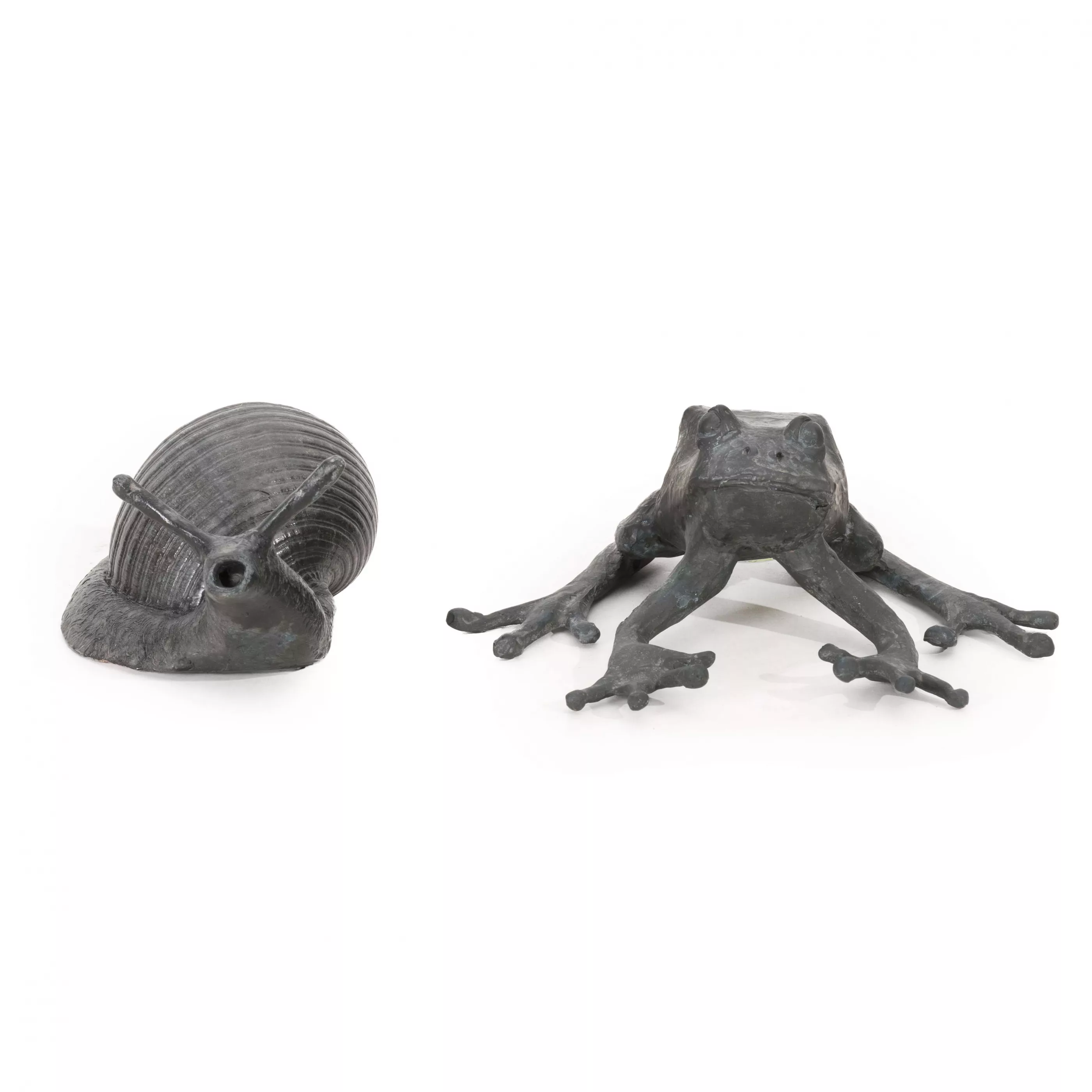 Frosch und Schnecke, 2-tlg., je Bronze, dunkel patiniert, 7,5 cm x 20 cm x 18,5 cm Objektmaß und 8 cm x 19 cm x 10 cm Objektmaß, im Guss...