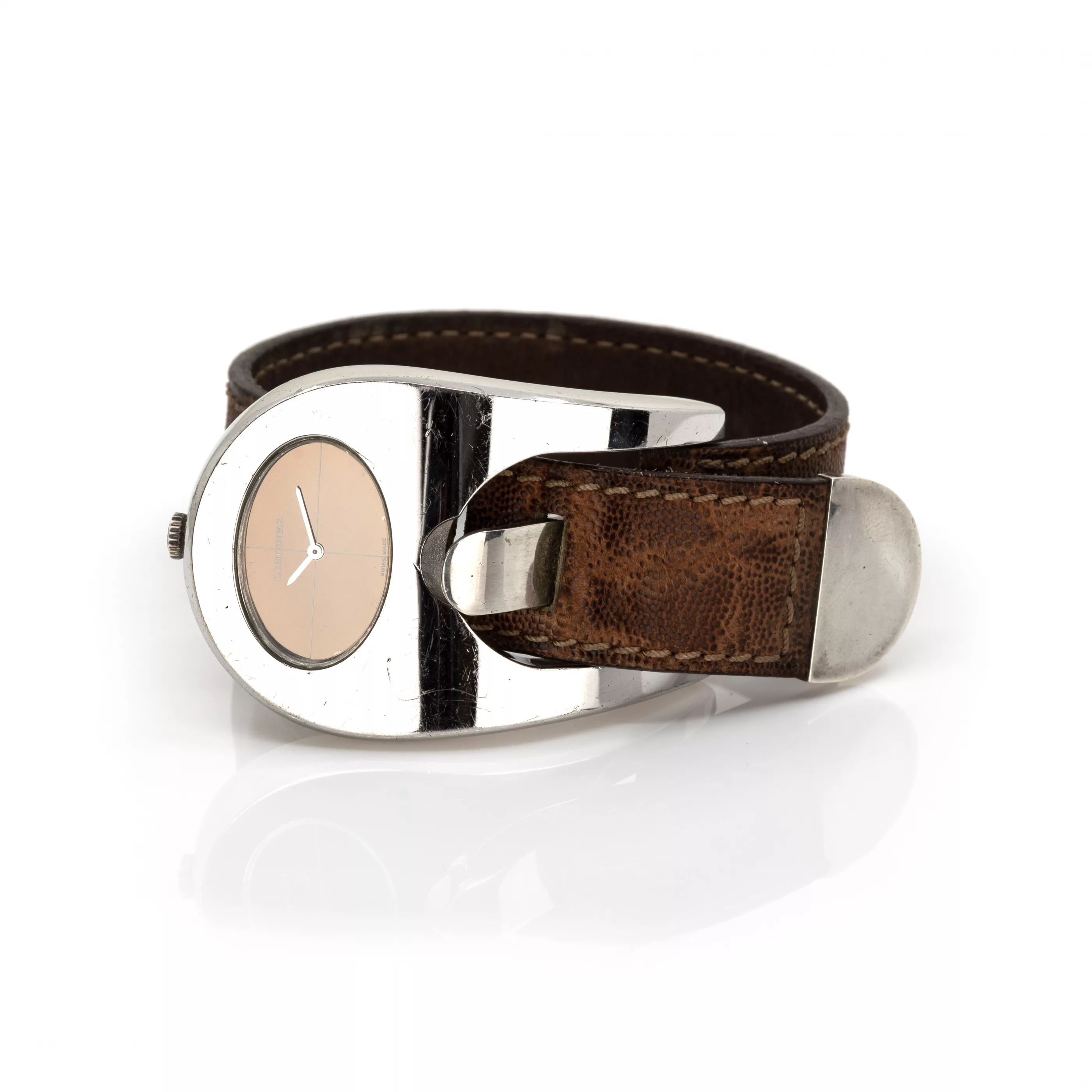 1970s, manual winding, case no. 16.827.452 | Ref. 5019, case 925 silver, hallmarked, diameter case 39 mm, oval mirror dial, divided by four white lines for the quarter hours, original bracelet, leather, original clasp, silver, length 28 cm, total weight approx. 88.3 g, function tested, working, condition good/satisfactory, case with scratch mark, without original box or papers