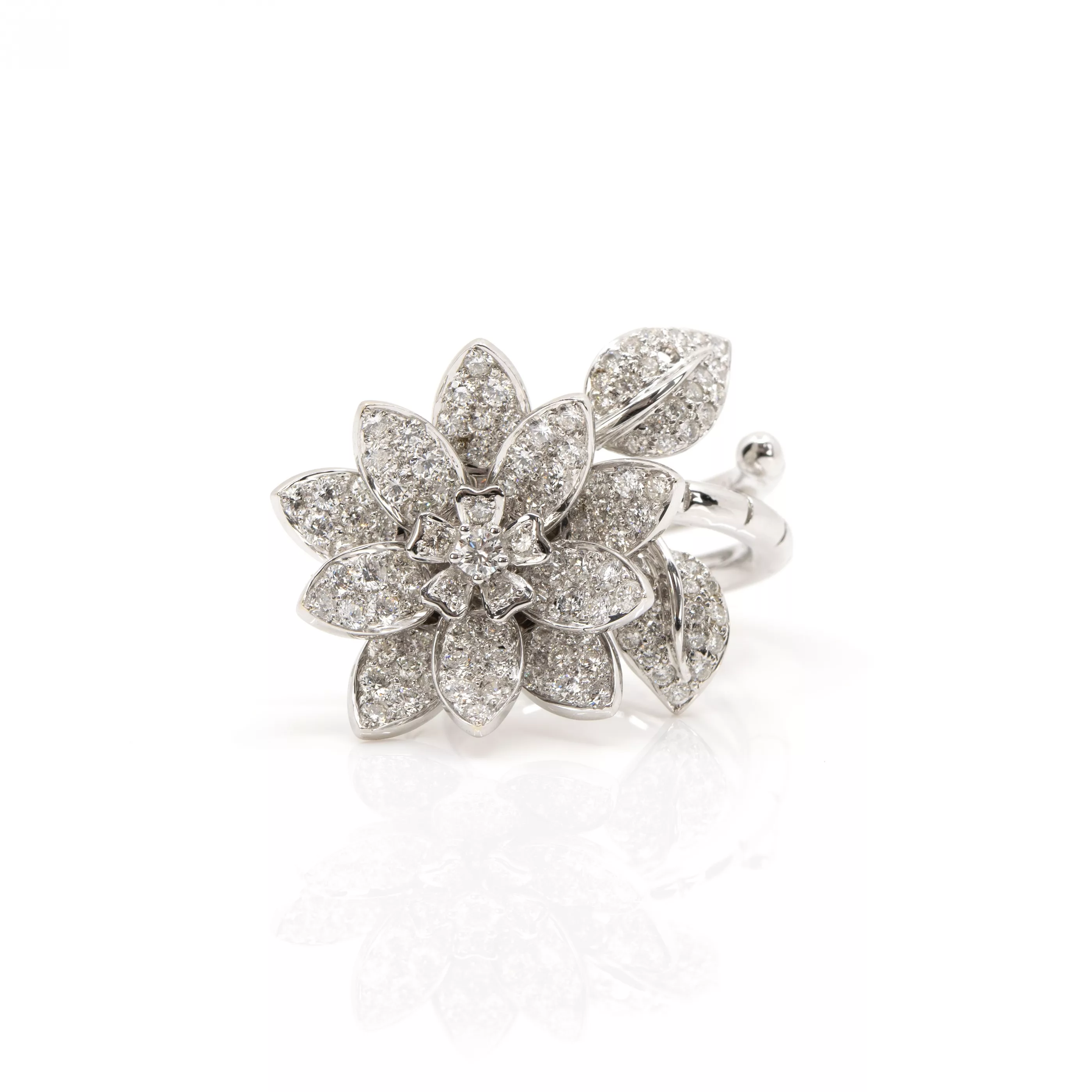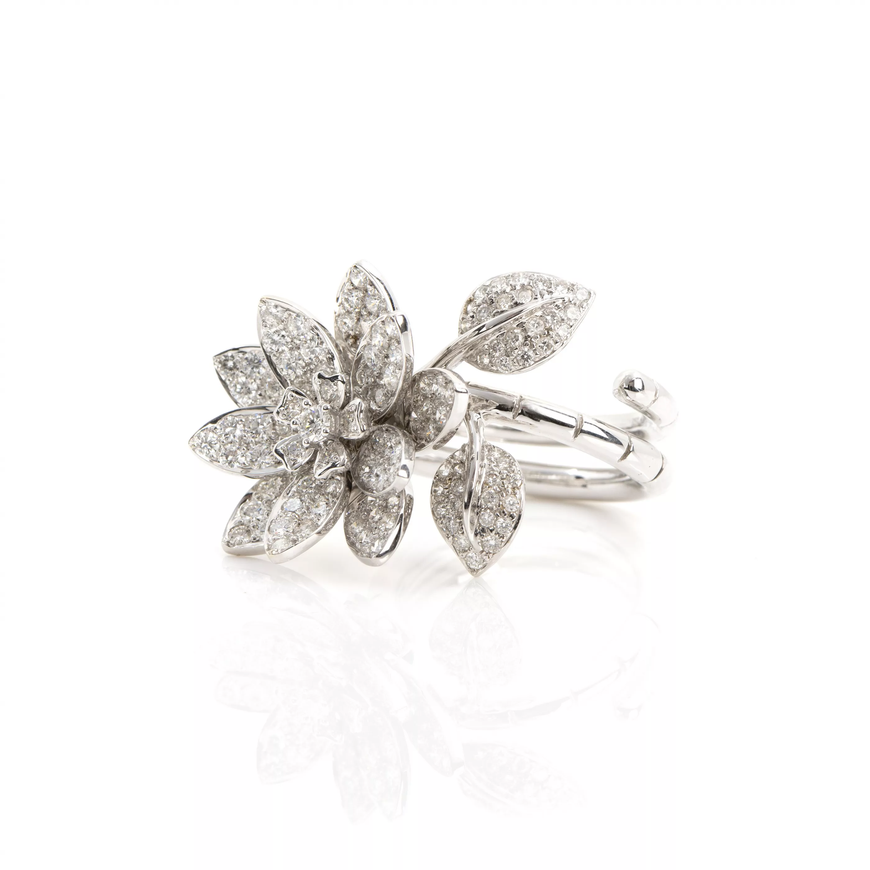 Lotus flower diamond ring in the style of Van Cleef & Arpels