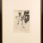 Der Künstler und der Tod, Kaltnadelradierung auf Japanpapier, Plattenmaß 26,5 cm x 19,5 cm, signiert, nachgedunkelt, montiert, leicht knickfaltig und wellig,