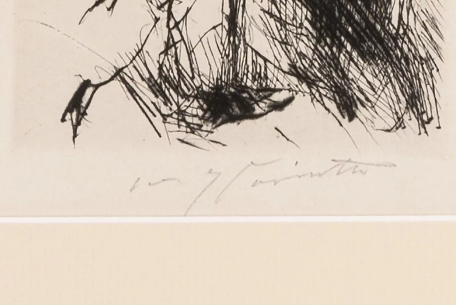 Self-portrait, etching on paper, plate size 16,5 cm x 10,5 cm, inside mount size 19,5 cm x 13,5 cm, signed, mounted