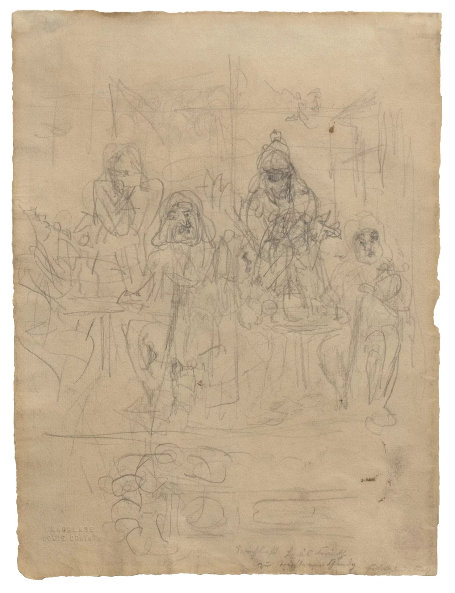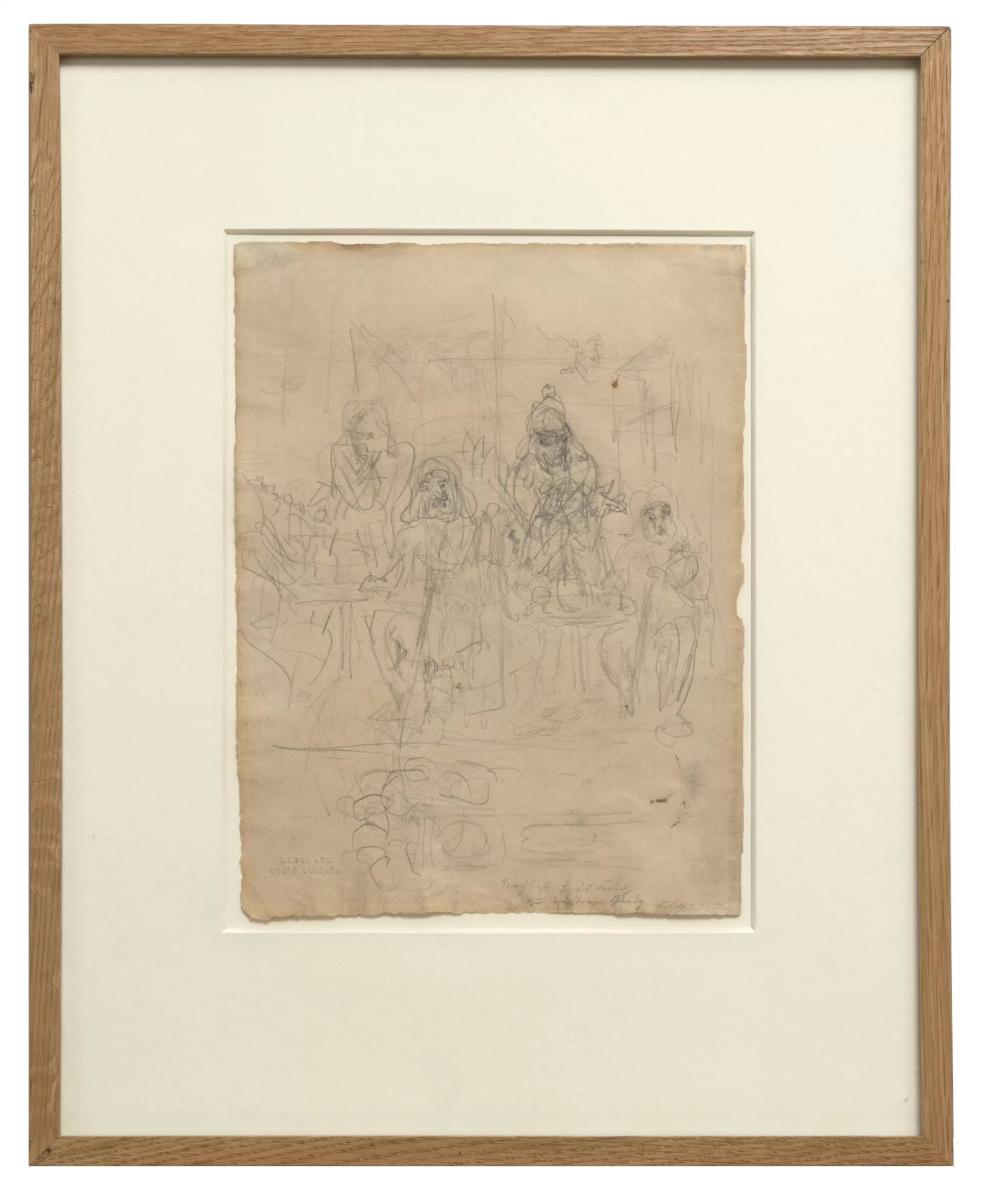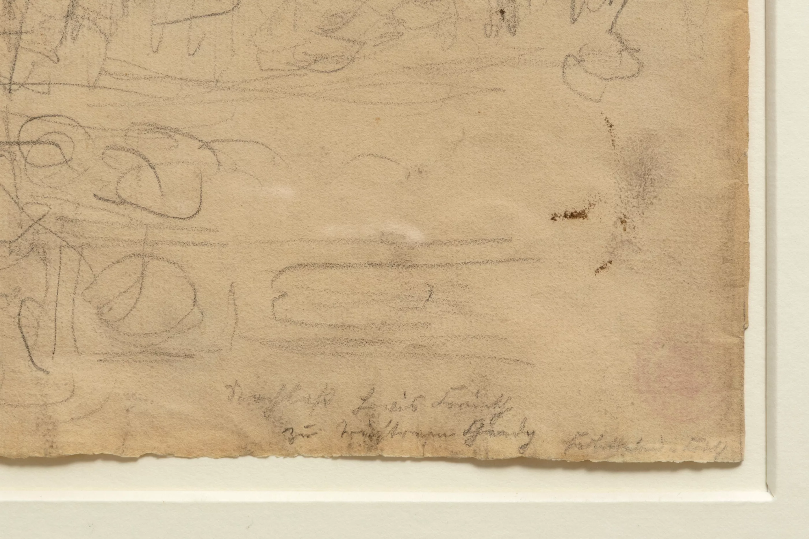 'Disputation', Graphitstift auf Papier, 30,5 cm x 23 cm Blattmaß, Nachlassstempel, gewidmet, um 1908, montiert, partiell leicht fleckig