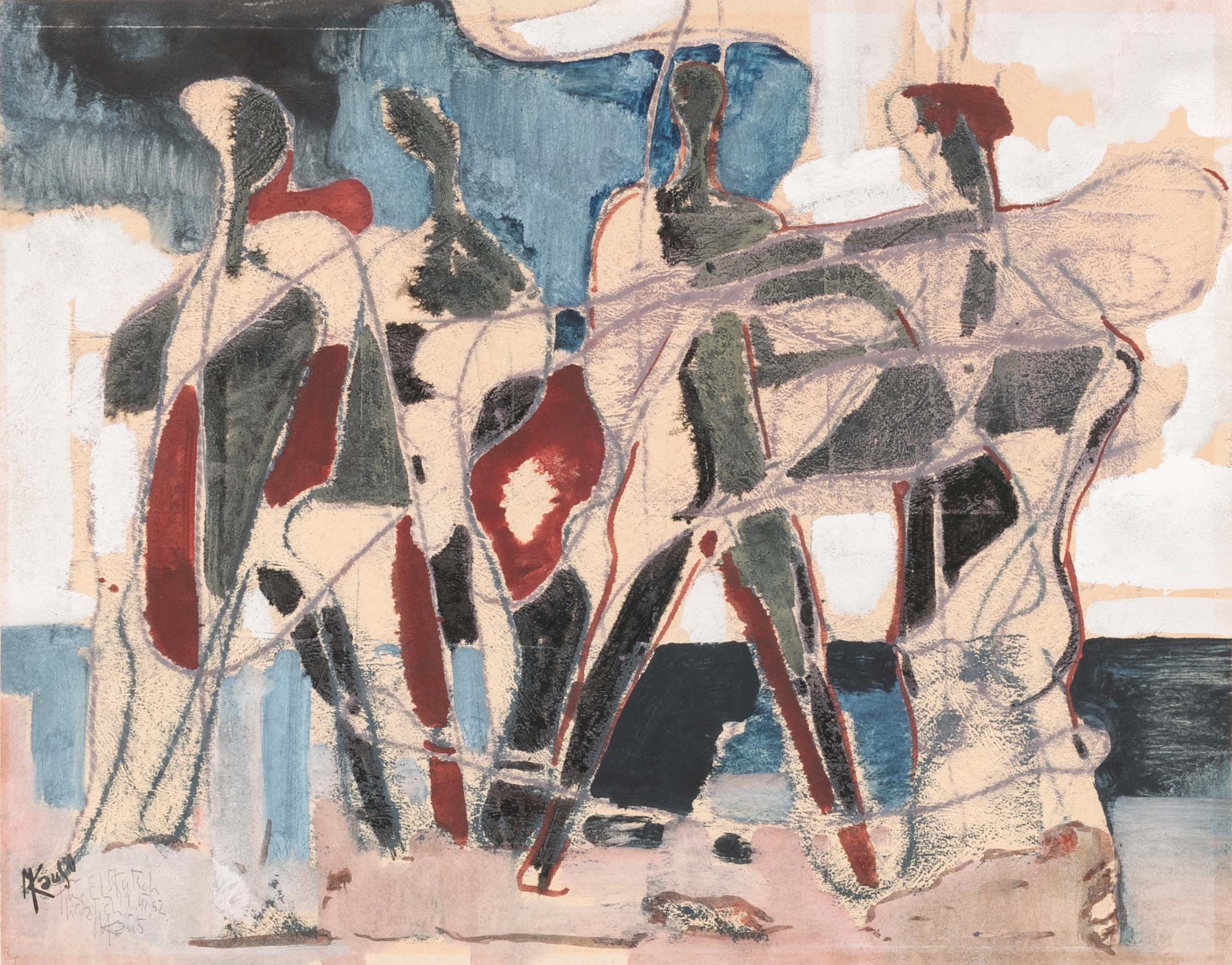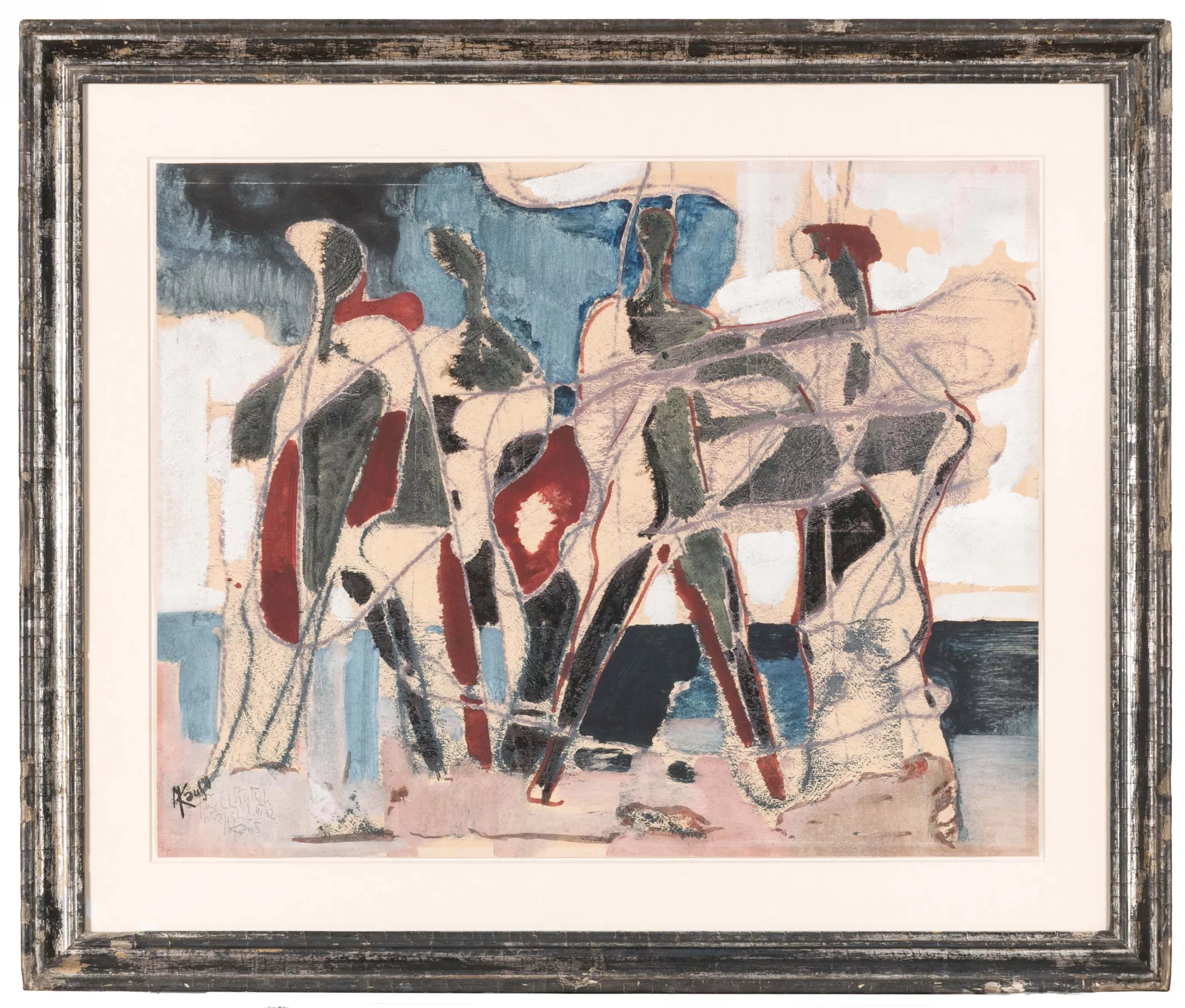 Figurines, mixed media on firm cardboard, 46 cm x 58.5 cm sheet dimensions, signed, dated 50, dedicated, mounted, slightly light-stained, minimally creased