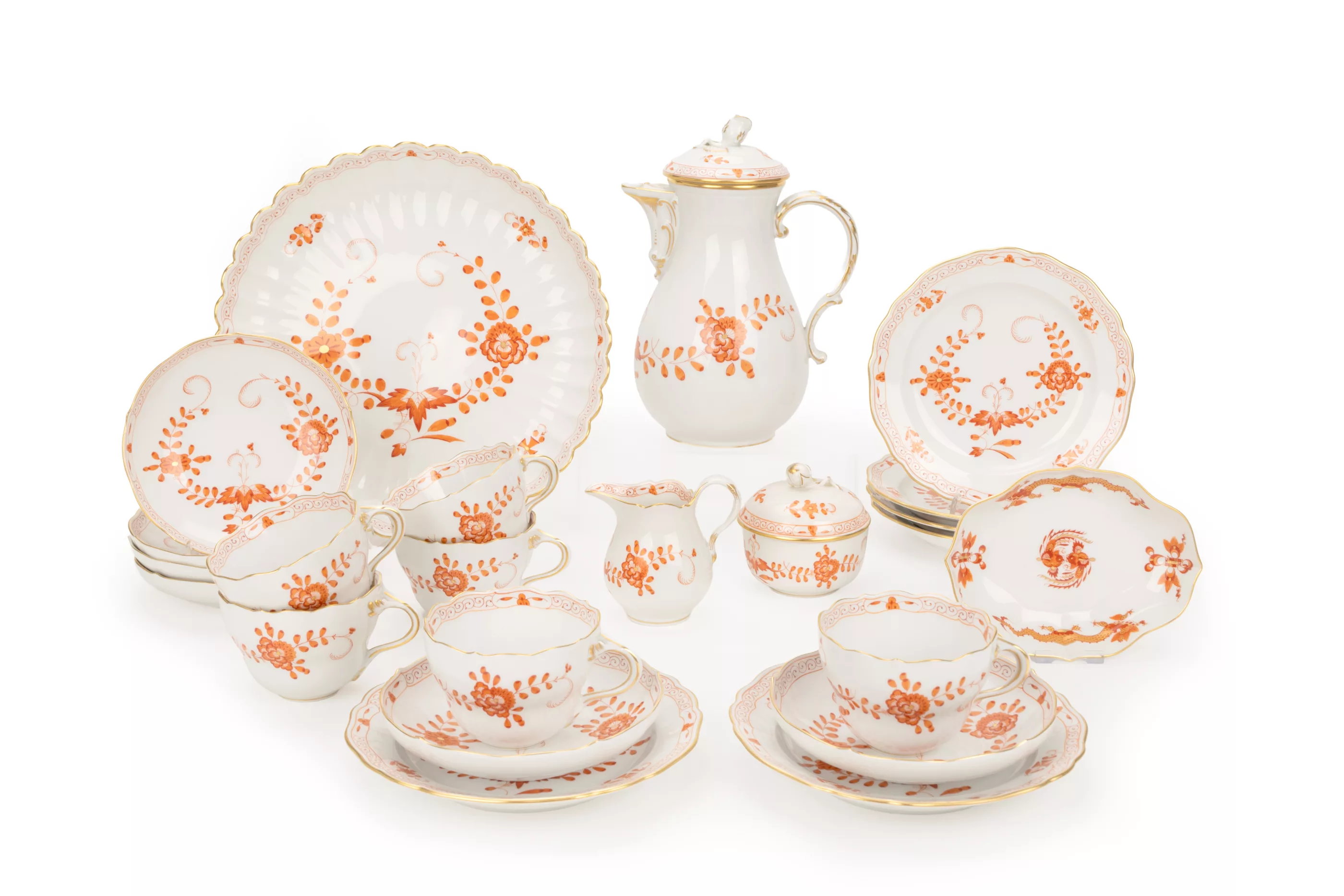 Meissen Kaffeeservice ‘Indische Malerei in Korallenrot’