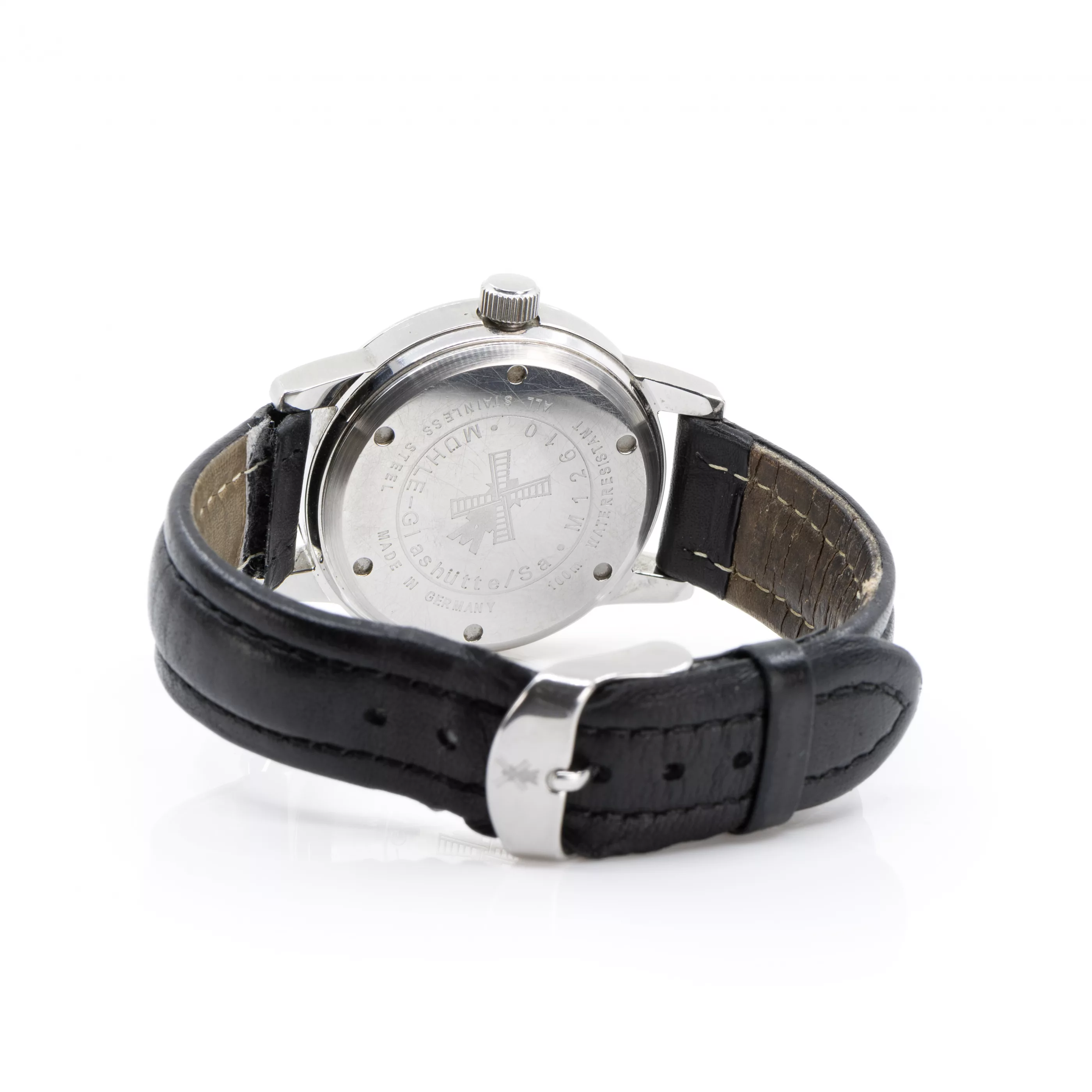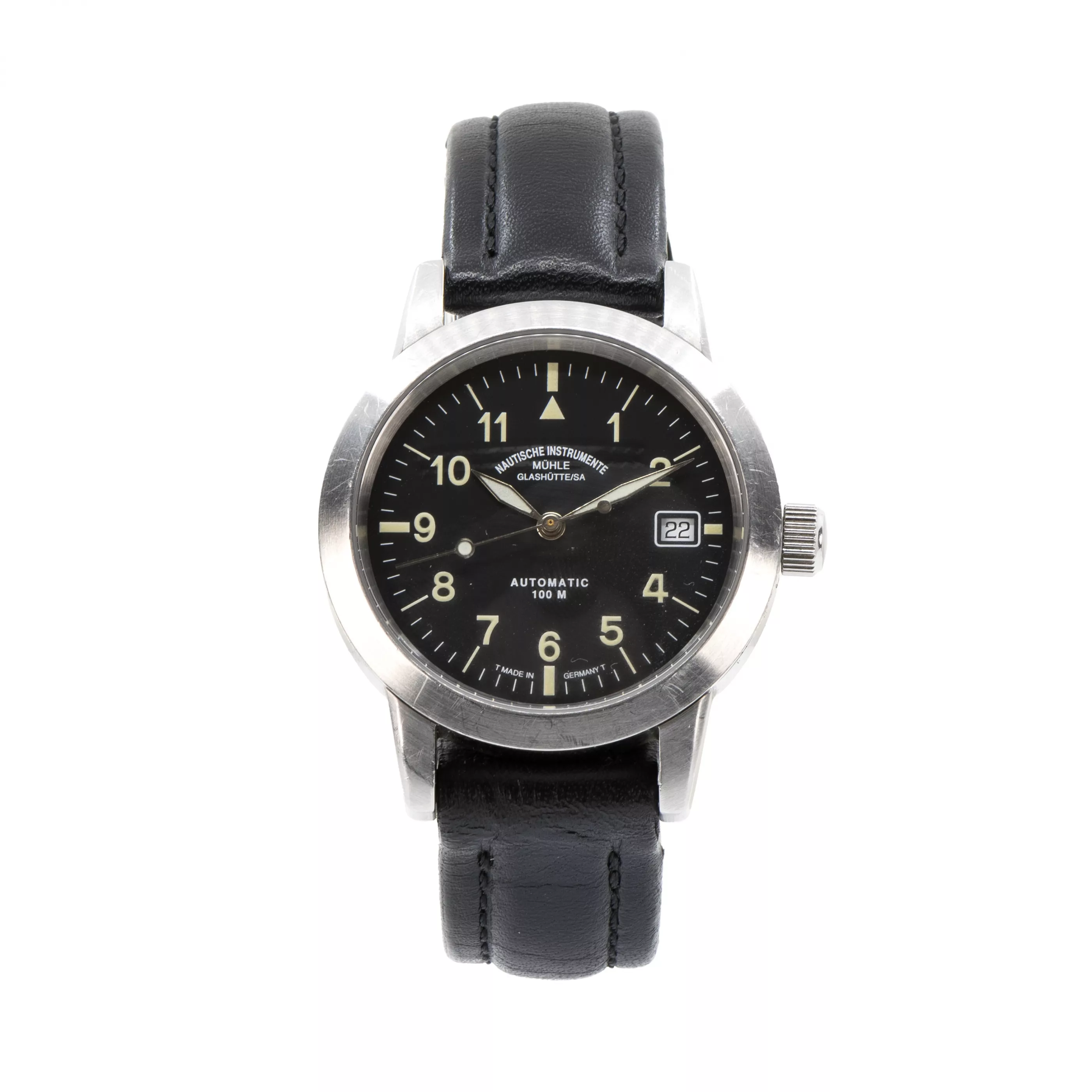 Sports-Automatic- M12, year 2001, automatic, ref. no. M12610, steel case, diameter 38 mm, original bracelet, leather, original clasp, steel, length 21 cm, total weight approx. 71,7 g, function tested, working, condition good, traces of wear, bracelet torn on one side, with original box and papers, certificate, operating instructions with sales certificate