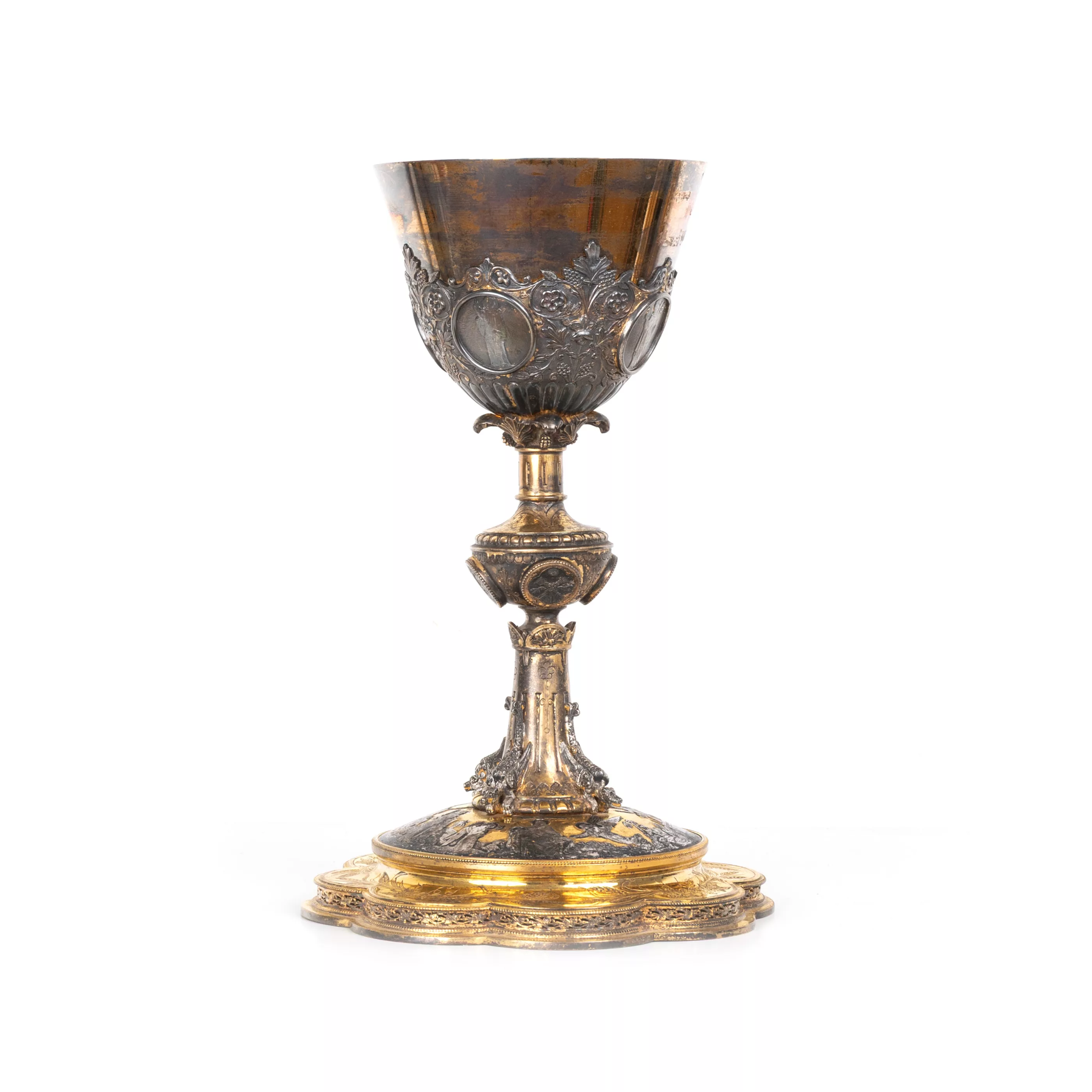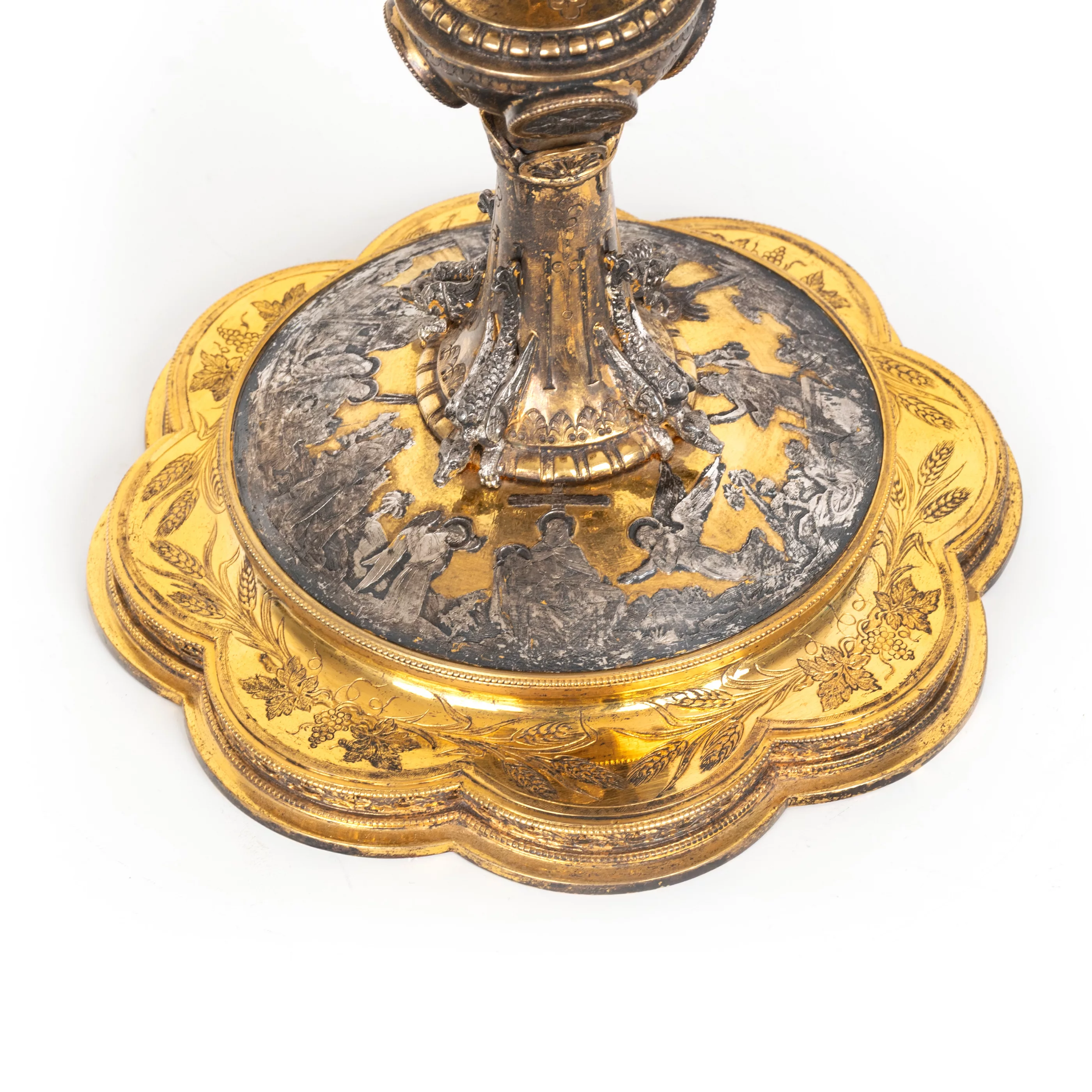 France 2nd half 19th century, vermeil, silver 950/1000 gilt, with Miner's hallmark 1838 - 1979, hallmark with the letters 'R N' and chalice, height 24.5 cm, weight approx. 636 g rubbed with small scratches, partial loss of gilding