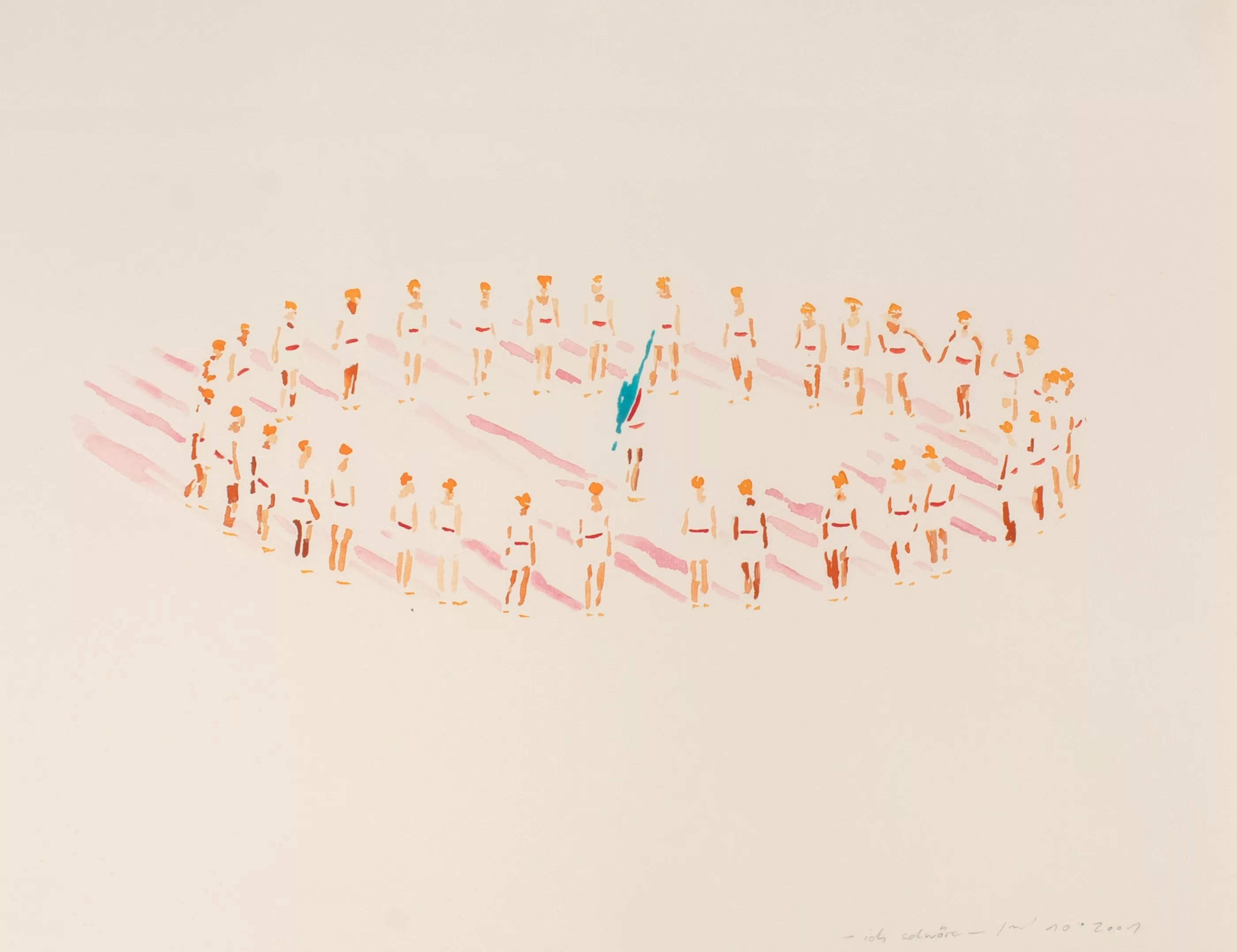 'Ich schwöre', watercolour on paper, 50 cm x 64 cm sheet dimensions, signed, dated 2001, titled, mounted, slightly slipped in the frame