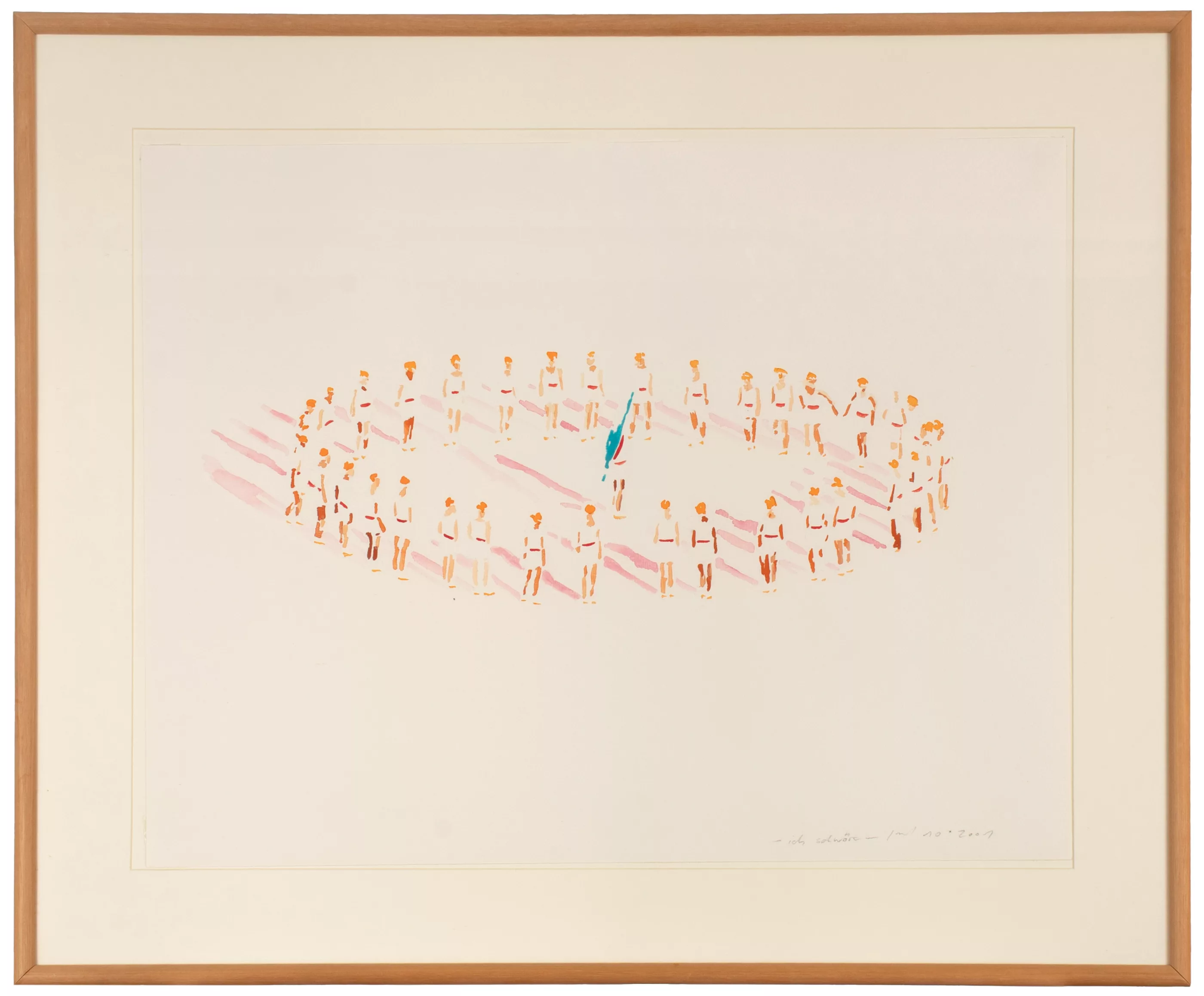 'Ich schwöre', Aquarell auf Papier, 50 cm x 64 cm Blattmaß, signiert, 2001 datiert, betitelt, montiert, im Rahmen leicht verrutscht