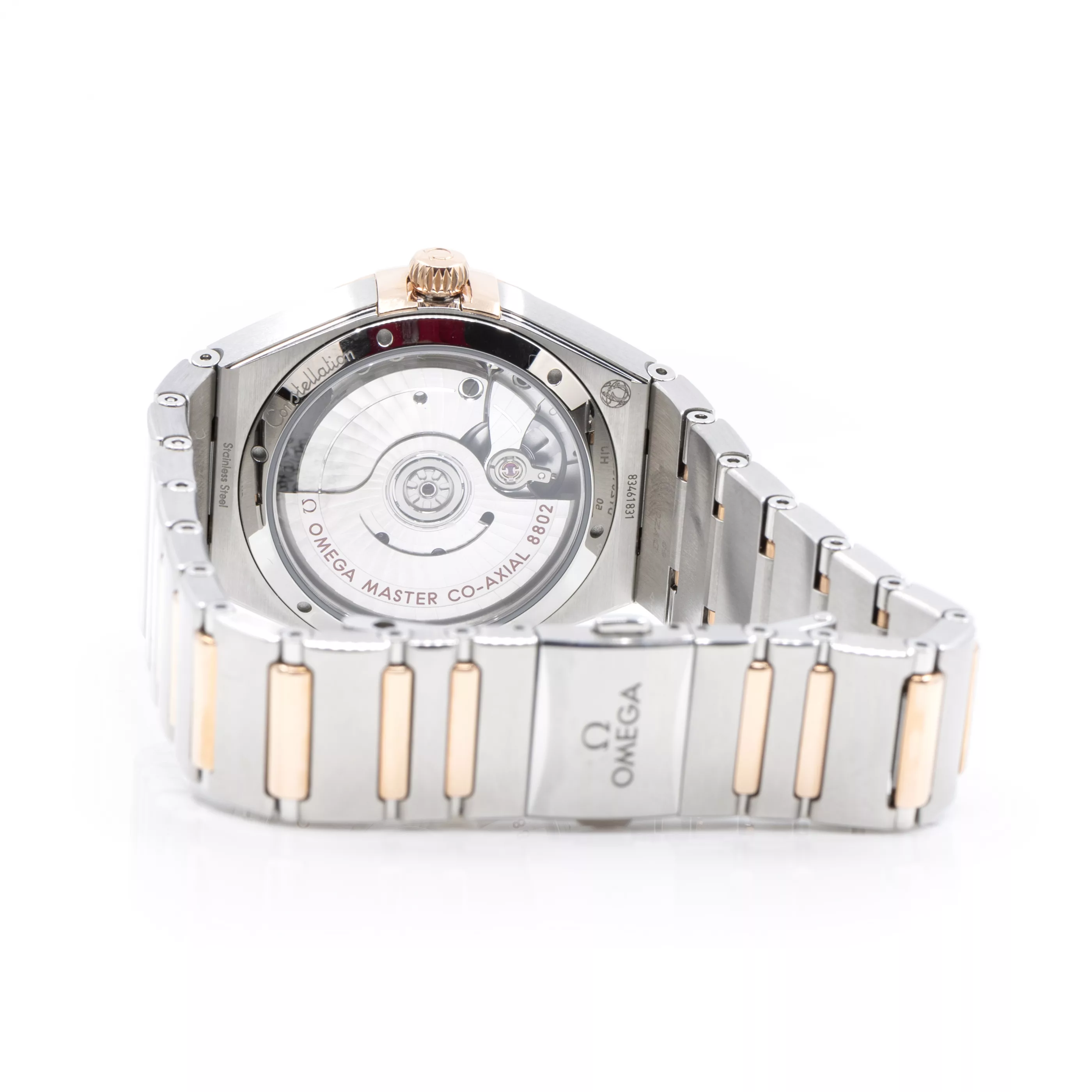 Full set, year 2019, automatic, Ref. No. 13120342063001 | Serial No. 83461831, Co-Axial Master Chronometer with skelletised case back, date and small seconds at 6 o'clock, steel and 750 rose gold case, dial with 11 diamond indices, total 0.10 ct, G, if-vvs, diameter 34 mm, original bracelet, steel/rose gold, original folding clasp, steel, length 16 cm, total weight approx. 120.4 g, functional, tested, condition new, with guarantee from date of purchase, with original box, outer packaging and papers, note: The buyer's premium is 20% incl. VAT. For the use of the online bidding consoles there is an additional fee of 3% plus VAT (3.57%).