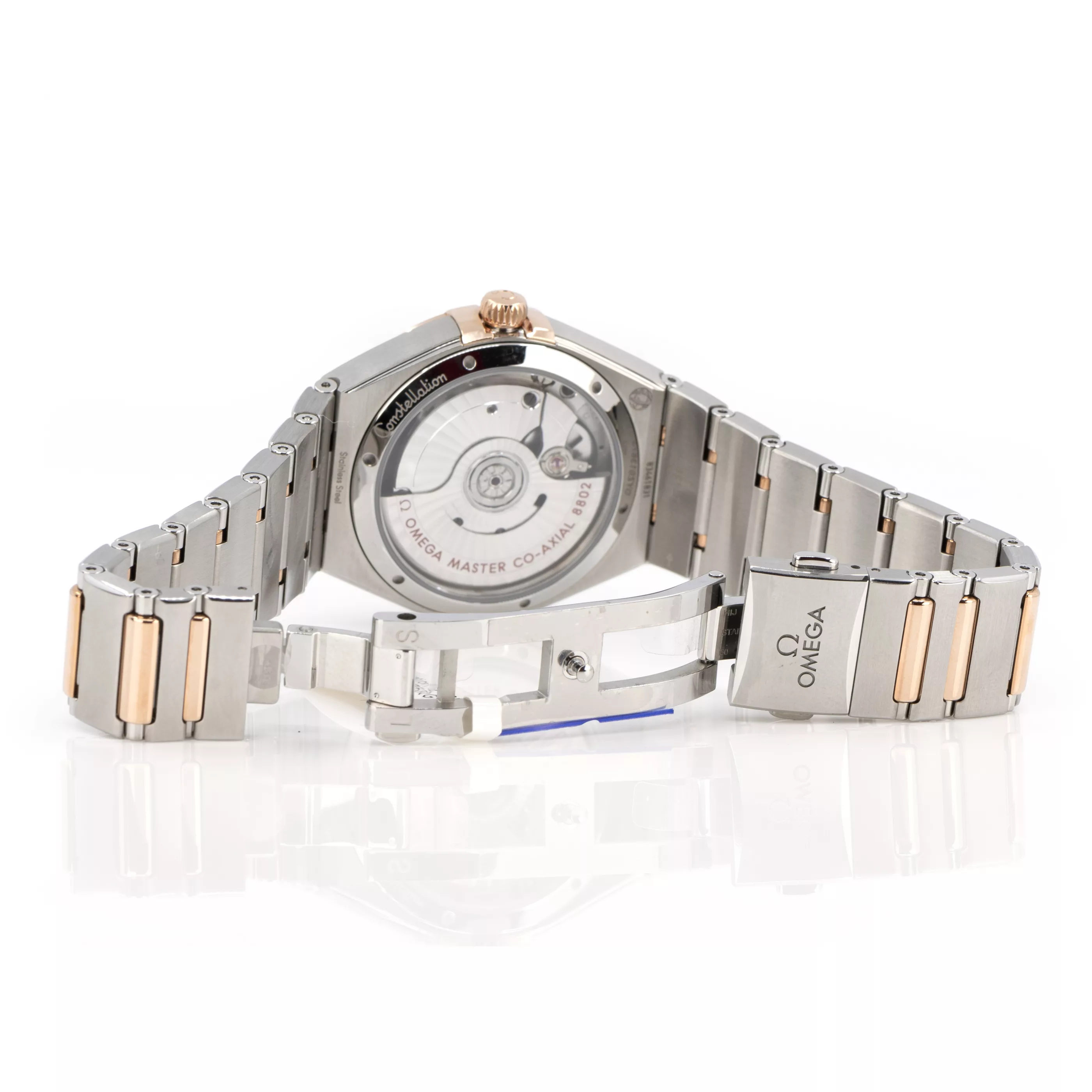 Full-Set, Jahr 2019, Automatik, Ref.-Nr. 13120342063001 | Serien-Nr. 83461831, Co-Axial Master Chronometer mit skelletiertem Gehäuseboden, Datum und kleine Sekunde bei 6 Uhr, Gehäuse Stahl/750 Roségold, Zifferblatt mit 11 Diamant-Indizes, gesamt ca. 0,10 ct, G, if-vvs, Durchmesser 34 mm, Original-Armband, Stahl/Roségold, Original-Faltschließe, Stahl, Länge 16 cm, Gesamtgewicht ca. 120,4 g, Funktion gangbar, geprüft, Zustand neu, mit Garantie ab Kaufdatum, mit Original-Box, Umverpackung und Papieren,